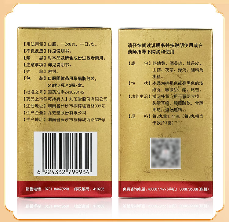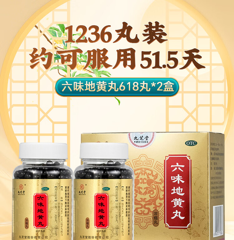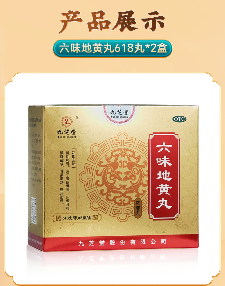 九芝堂六味地黄丸(浓缩丸) 618丸*2瓶/盒*2盒补肾京东自营六味地黄丸OTC补肾阳痿早泄壮阳药头晕耳鸣潮热盗汗