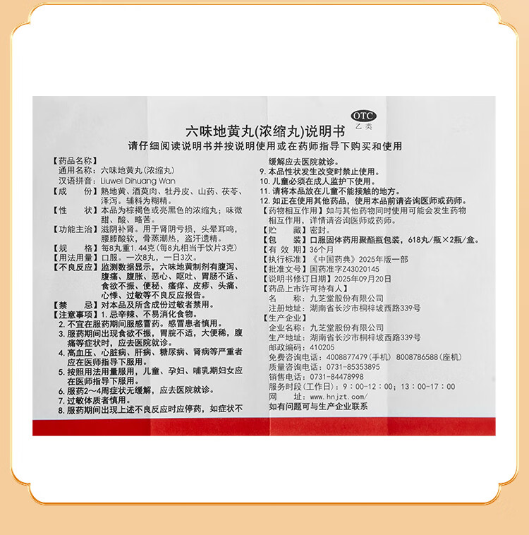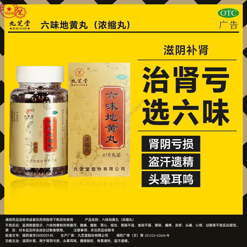 九芝堂六味地黄丸(浓缩丸) 618丸*2瓶/盒 补肾京东自营六味地黄丸OTC补肾阳痿早泄壮阳药 头晕耳鸣潮热盗汗