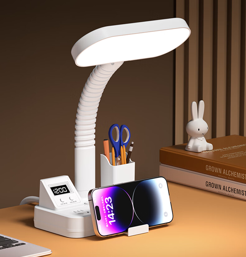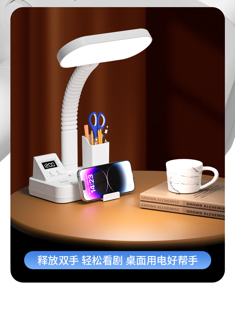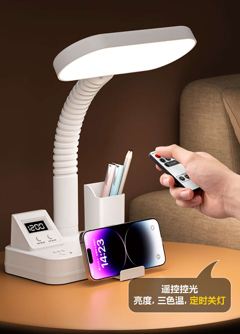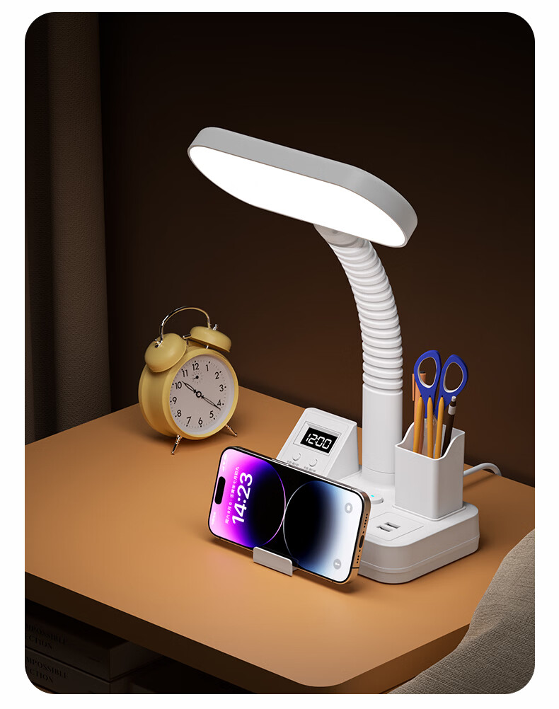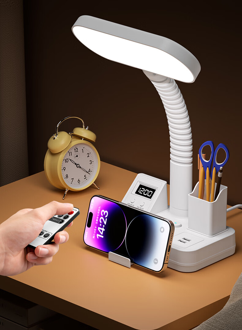 苏士赫尔摩一件包邮【笔筒式三合一】LED台灯+插座+数显时钟学生台灯 USB+TYPE-C+多插位 宿舍书房卧室适用 5W时显笔筒2位1U1C,1.8米 遥控款