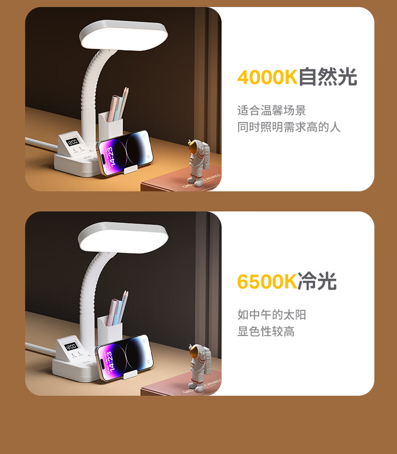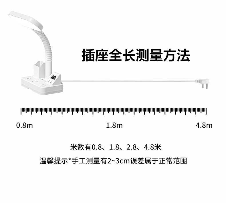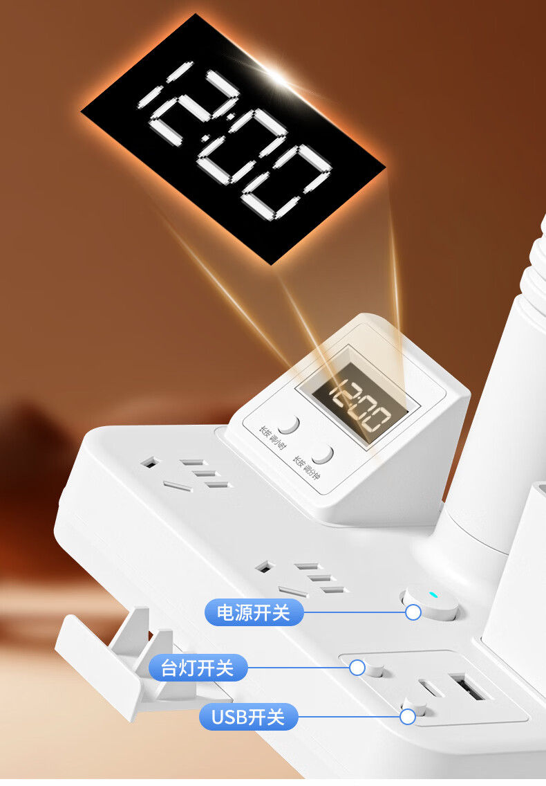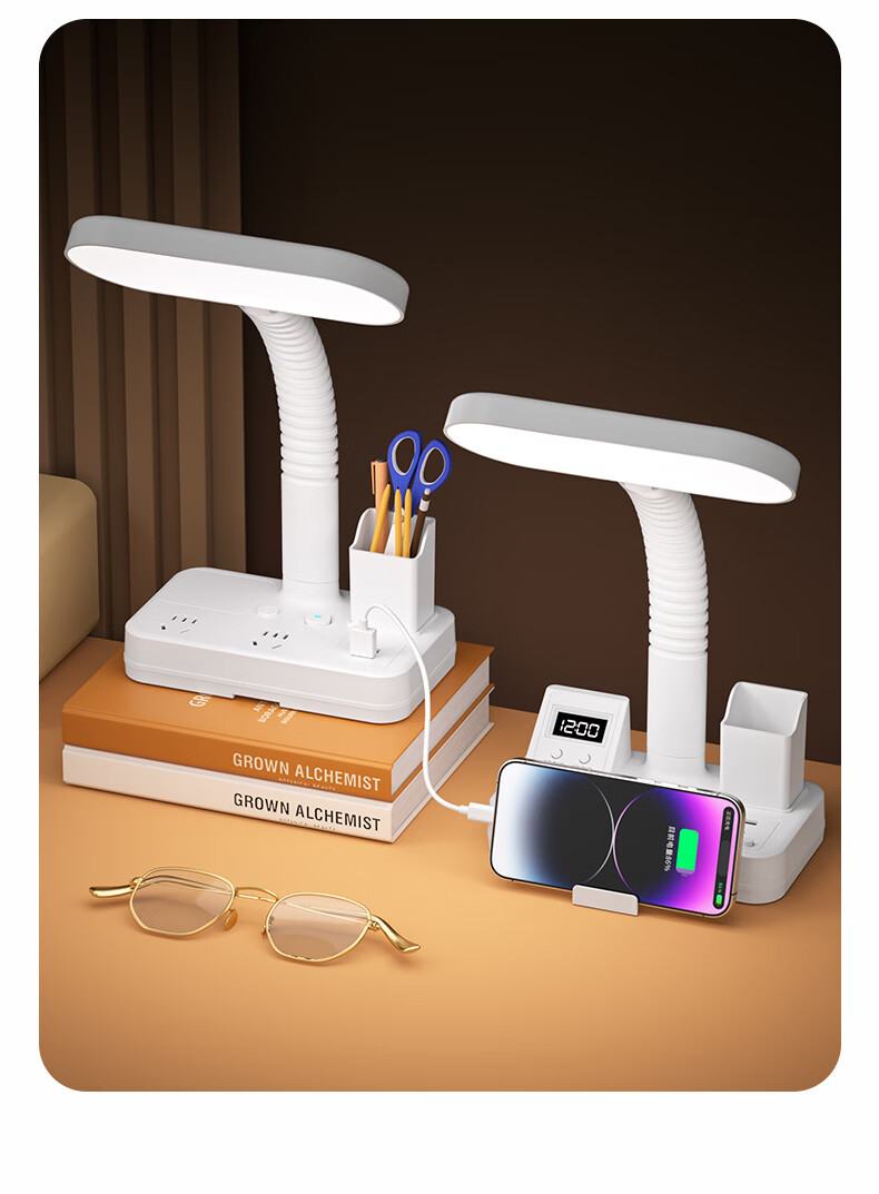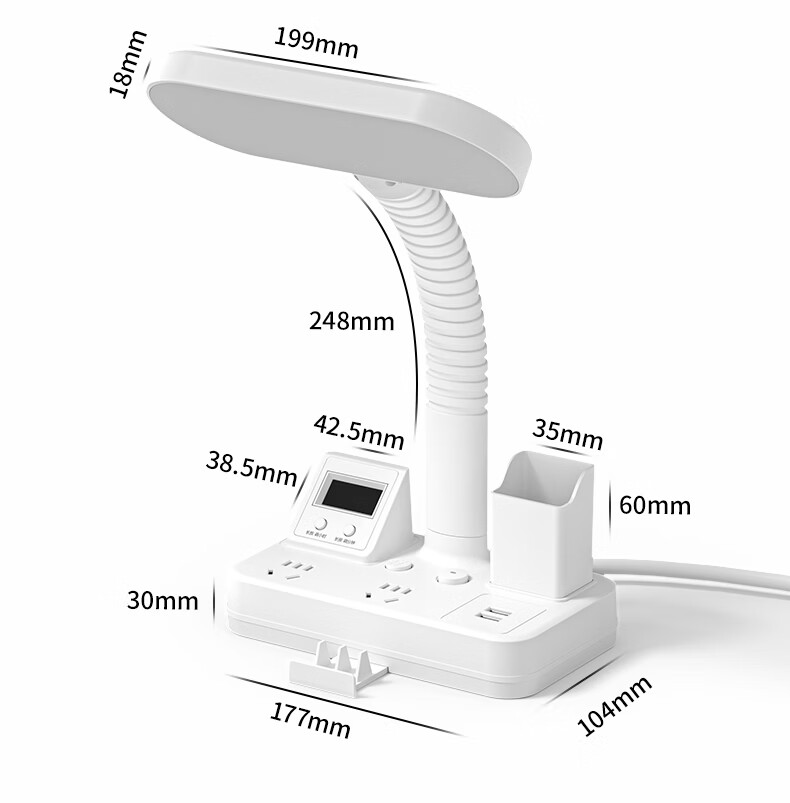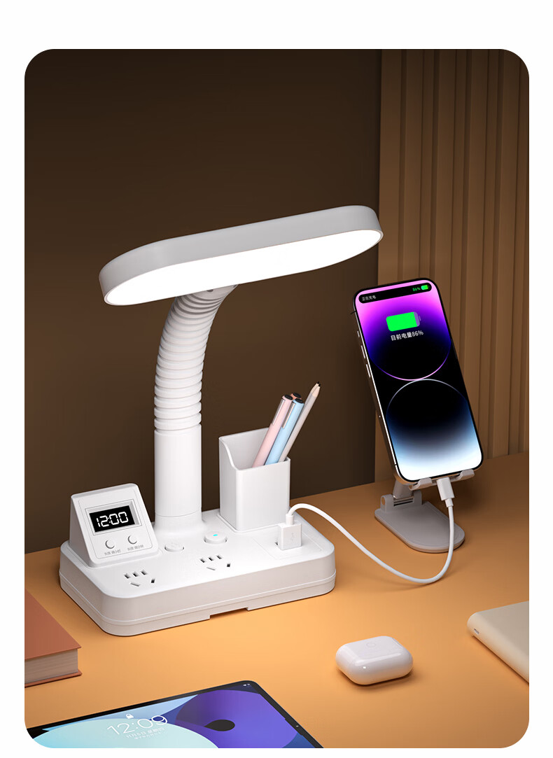 苏士赫尔摩一件包邮【笔筒式三合一】LED台灯+插座+数显时钟学生台灯 USB+TYPE-C+多插位 宿舍书房卧室适用 5W时显笔筒2位1U1C,1.8米 遥控款