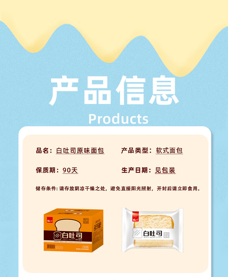 泓一白吐司面包2斤 营养早餐面包学生饱腹代餐手撕糕点休闲零食1000g