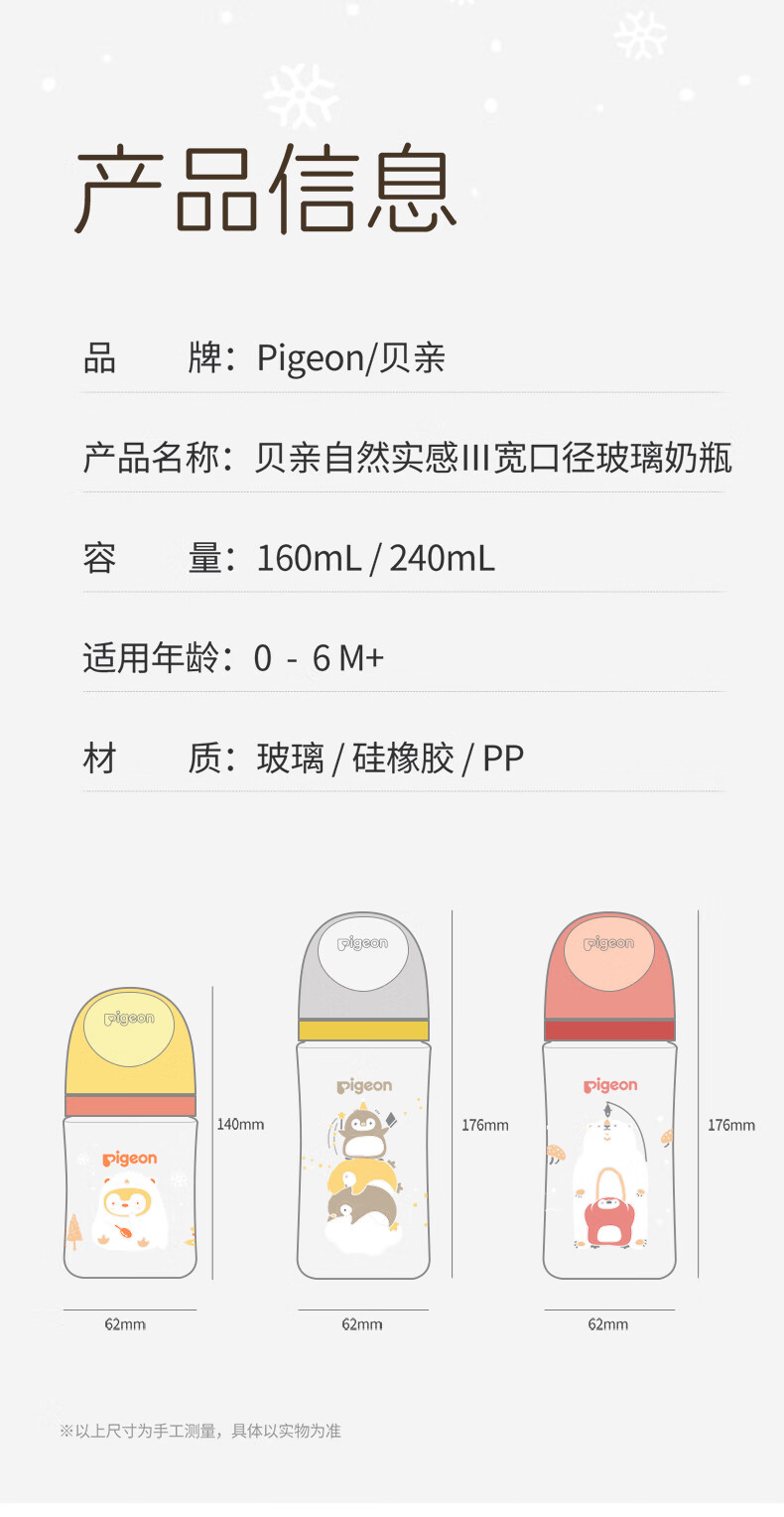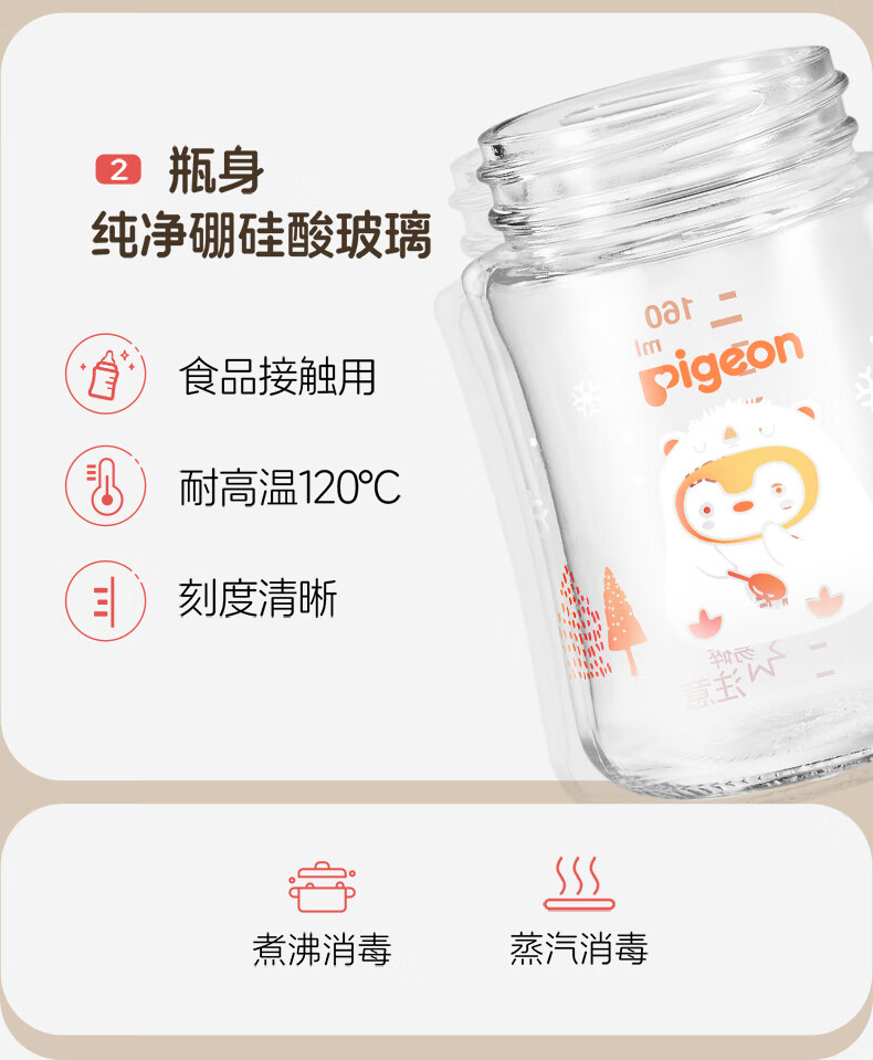 贝亲奶瓶婴儿新生儿玻璃材质自然实感宽口径奶瓶 160ml 0-1月 SS奶嘴