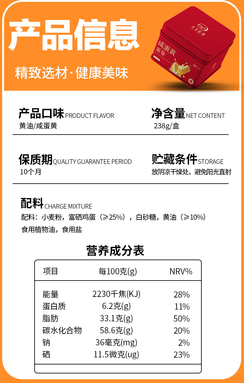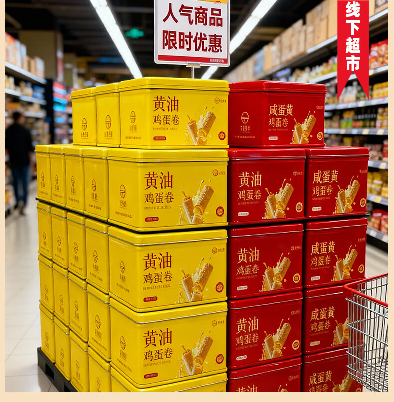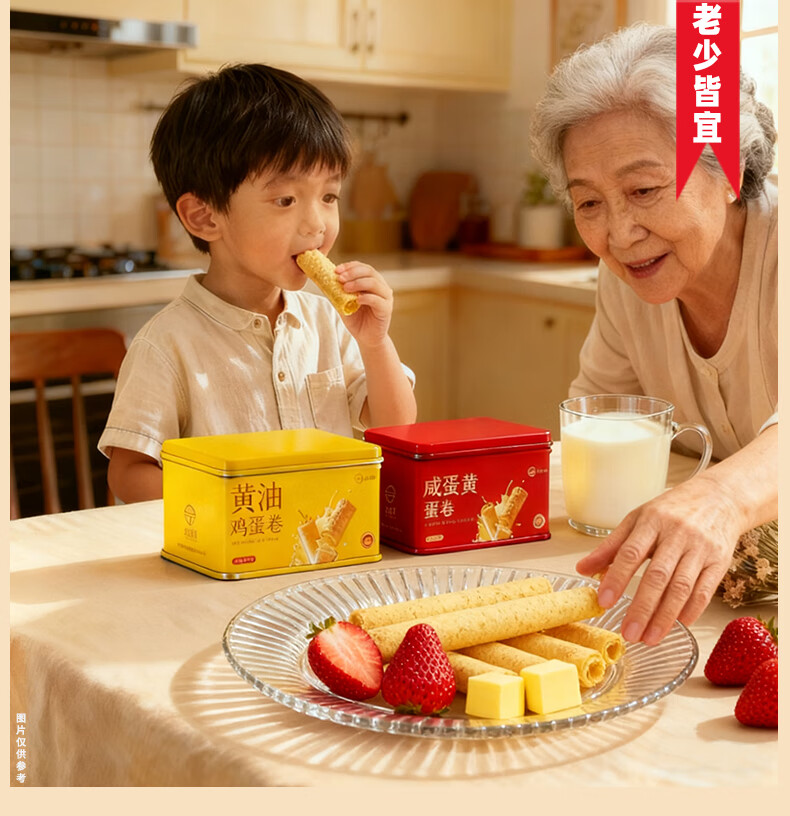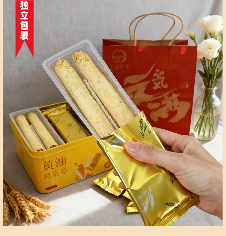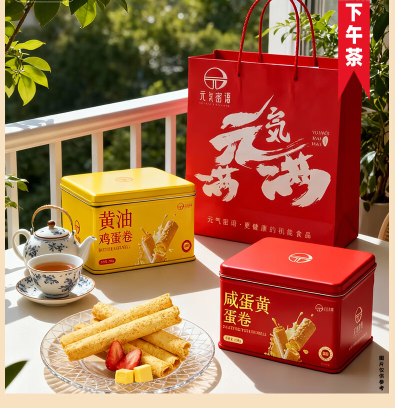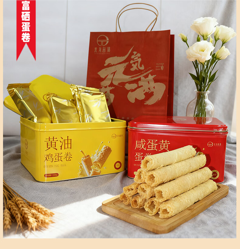 VITALITY&MIIYUU黄油鸡蛋卷咸蛋黄蛋卷酥脆蛋卷传统手工港式蛋卷休闲零食送礼佳品 黄油味238g+咸蛋黄味238g 2罐(送礼袋)