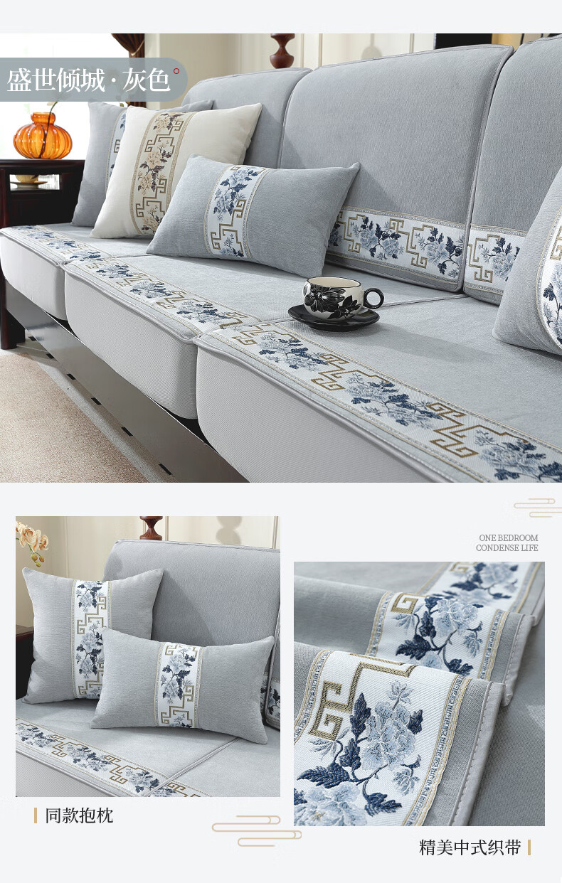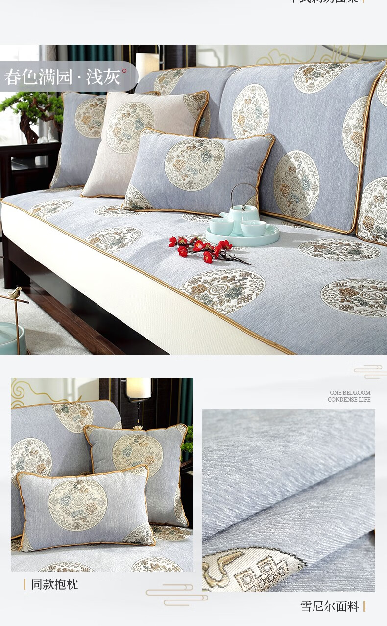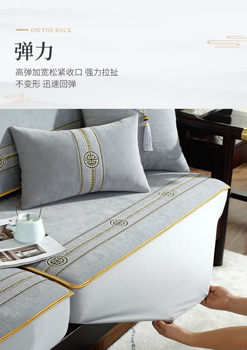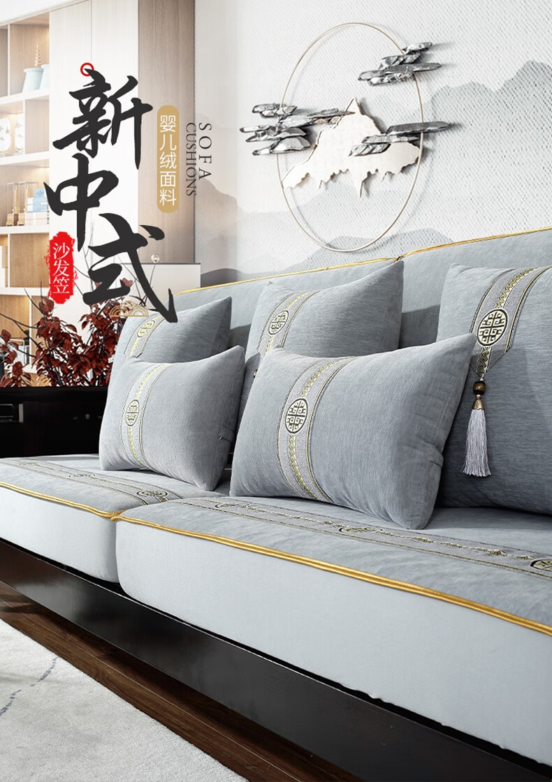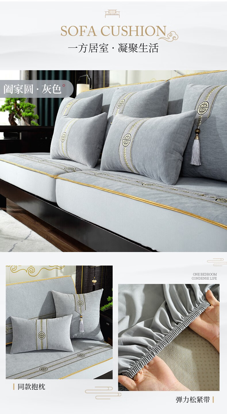 索菲娜 新中式沙发套全包罩四季通用2025沙发垫套罩定制沙发罩笠 yz阖家圆沙发笠-灰色(婴儿绒) 沙发笠宽60*长60cm一个