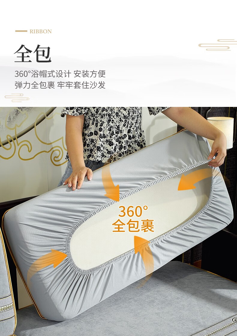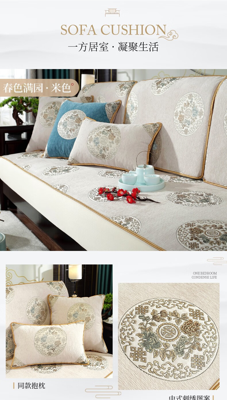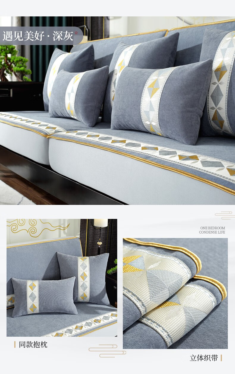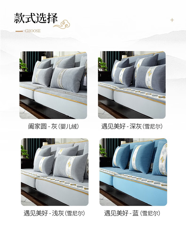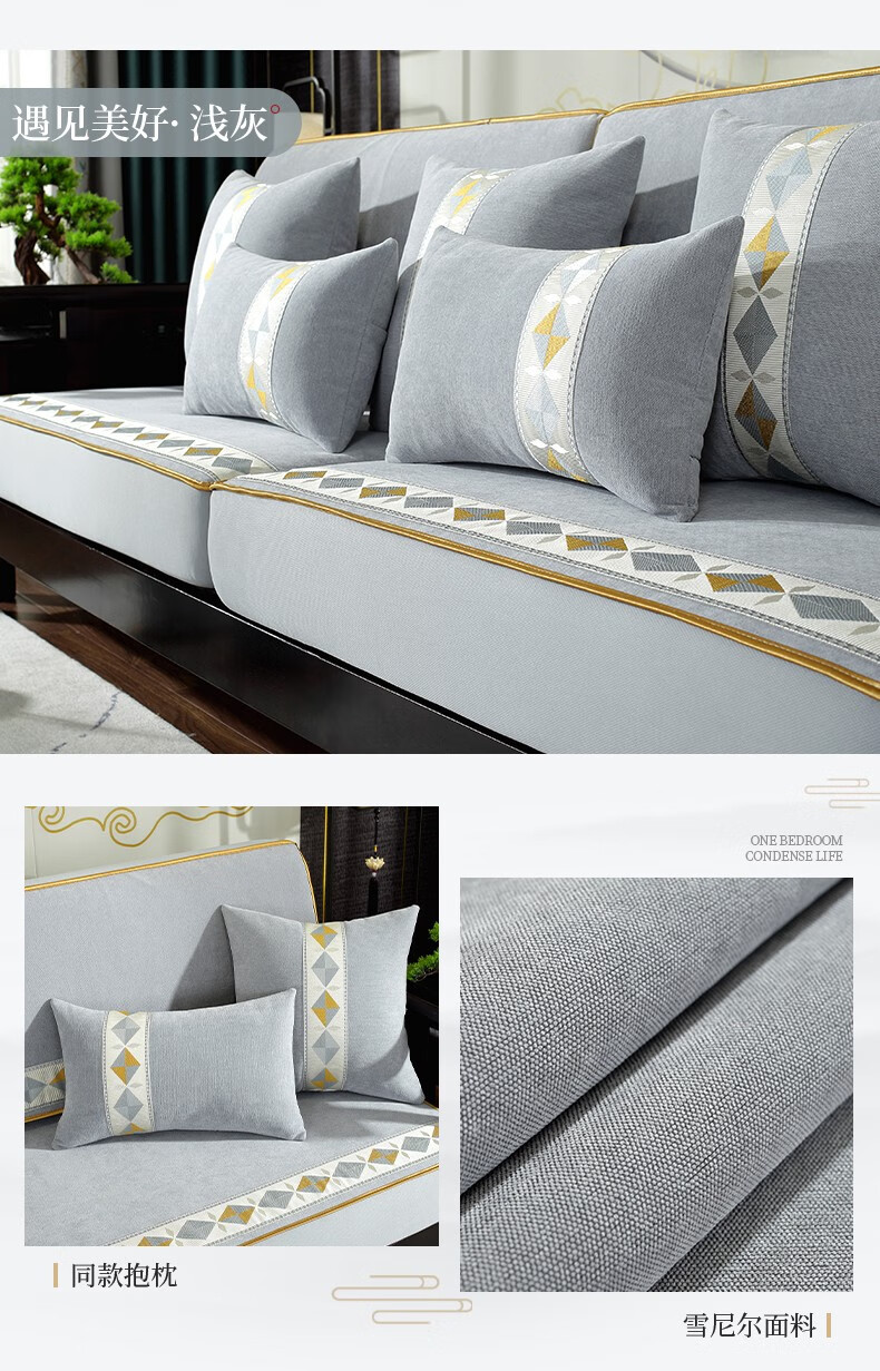 索菲娜 新中式沙发套全包罩四季通用2025沙发垫套罩定制沙发罩笠 yz阖家圆沙发笠-灰色(婴儿绒) 沙发笠宽60*长60cm一个