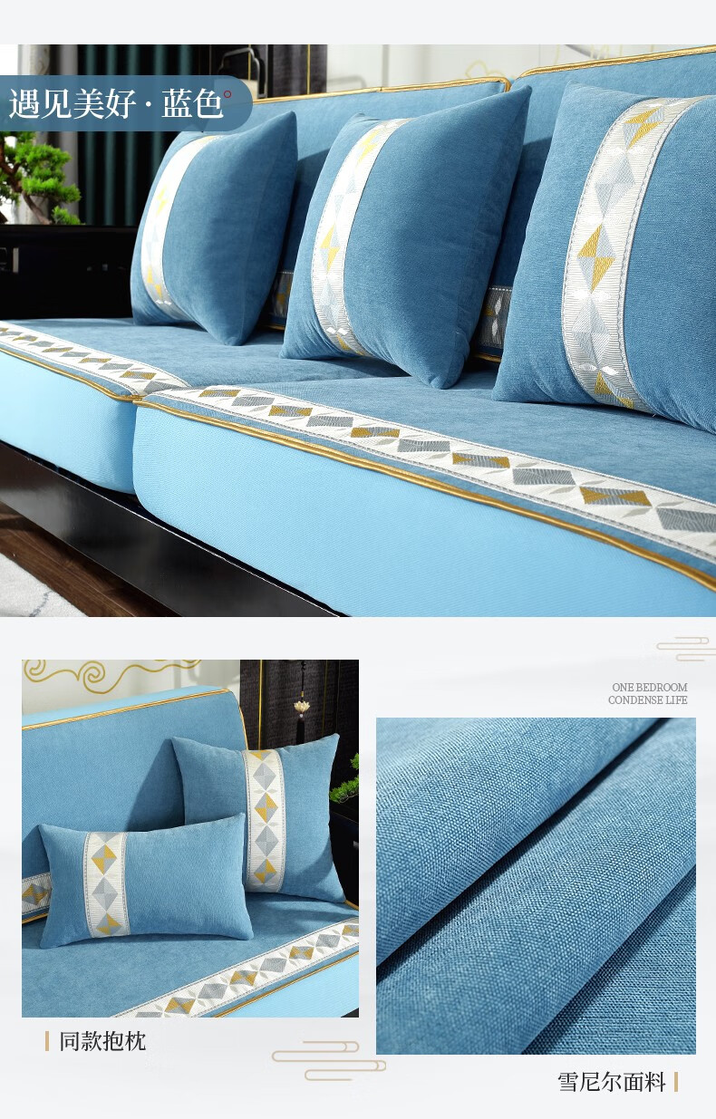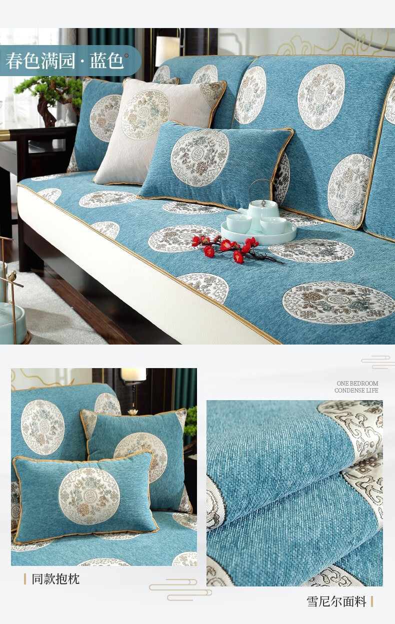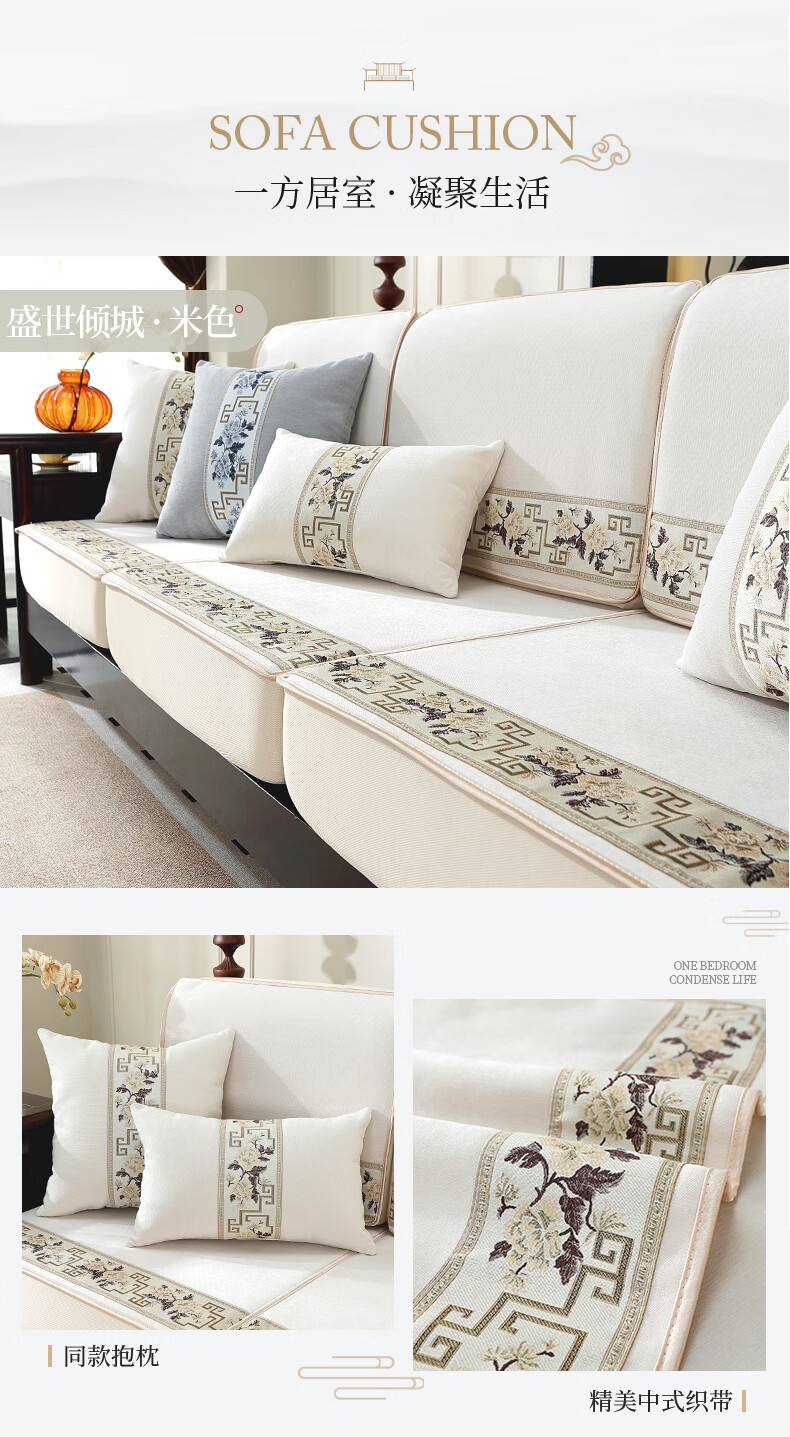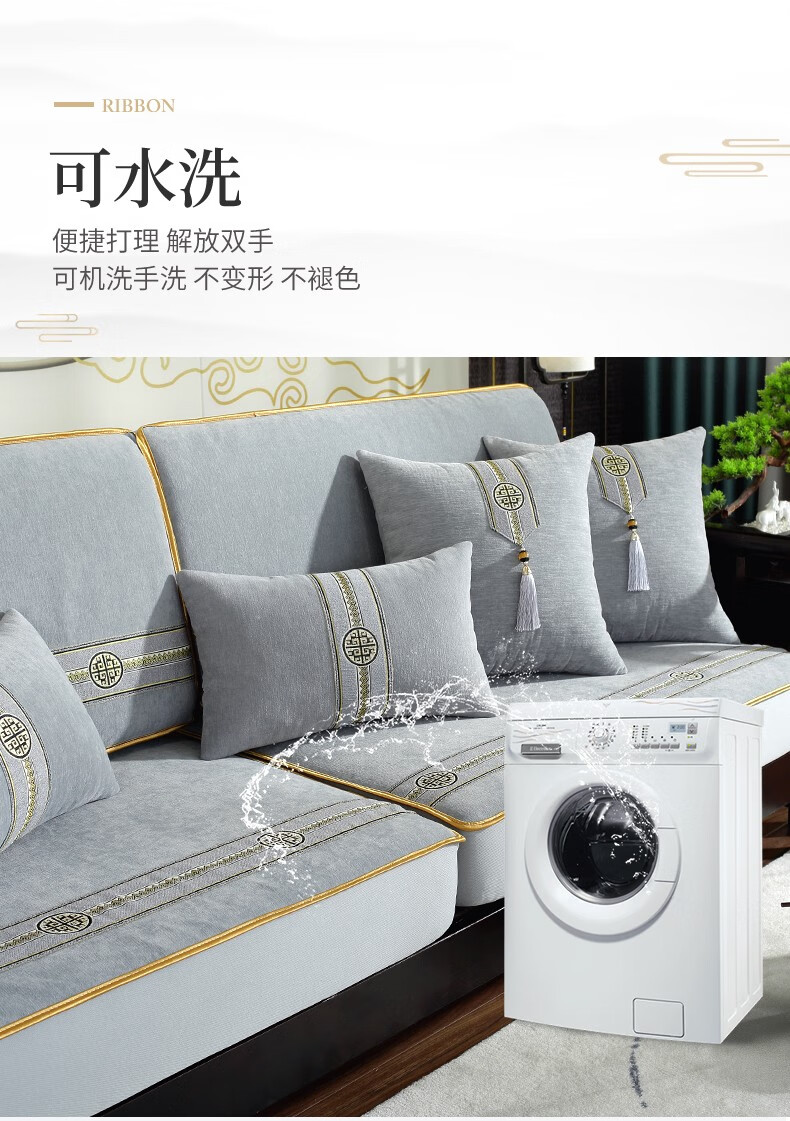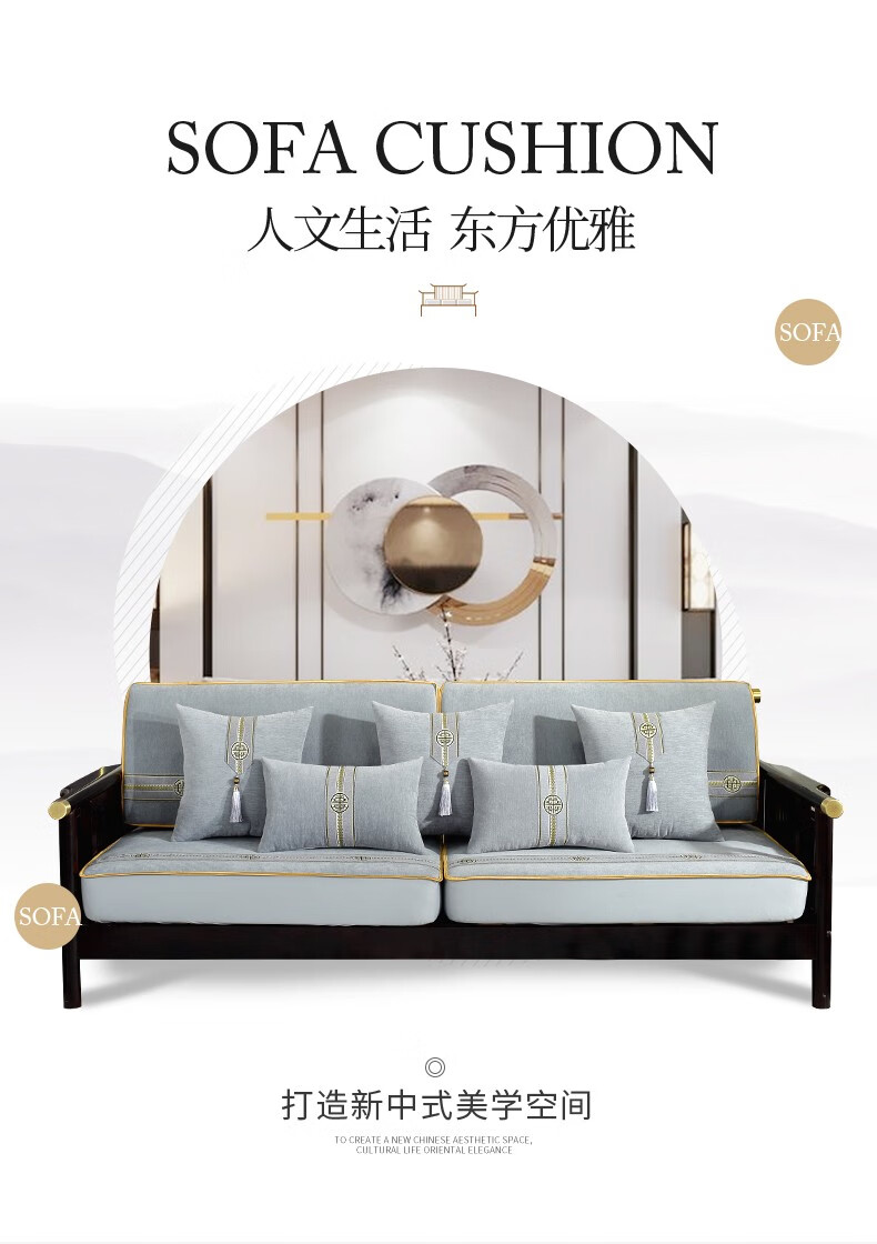 索菲娜 新中式沙发套全包罩四季通用2025沙发垫套罩定制沙发罩笠 yz阖家圆沙发笠-灰色(婴儿绒) 沙发笠宽60*长60cm一个