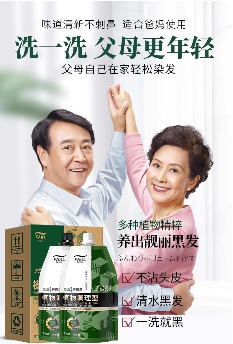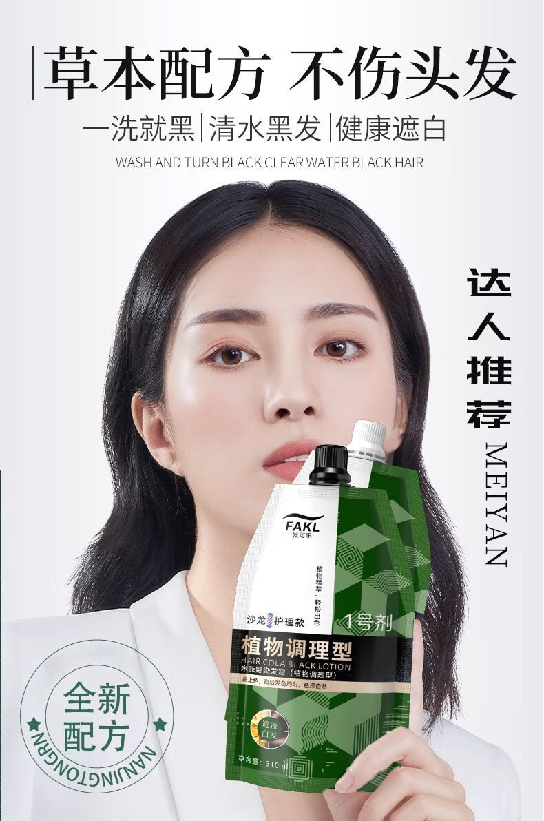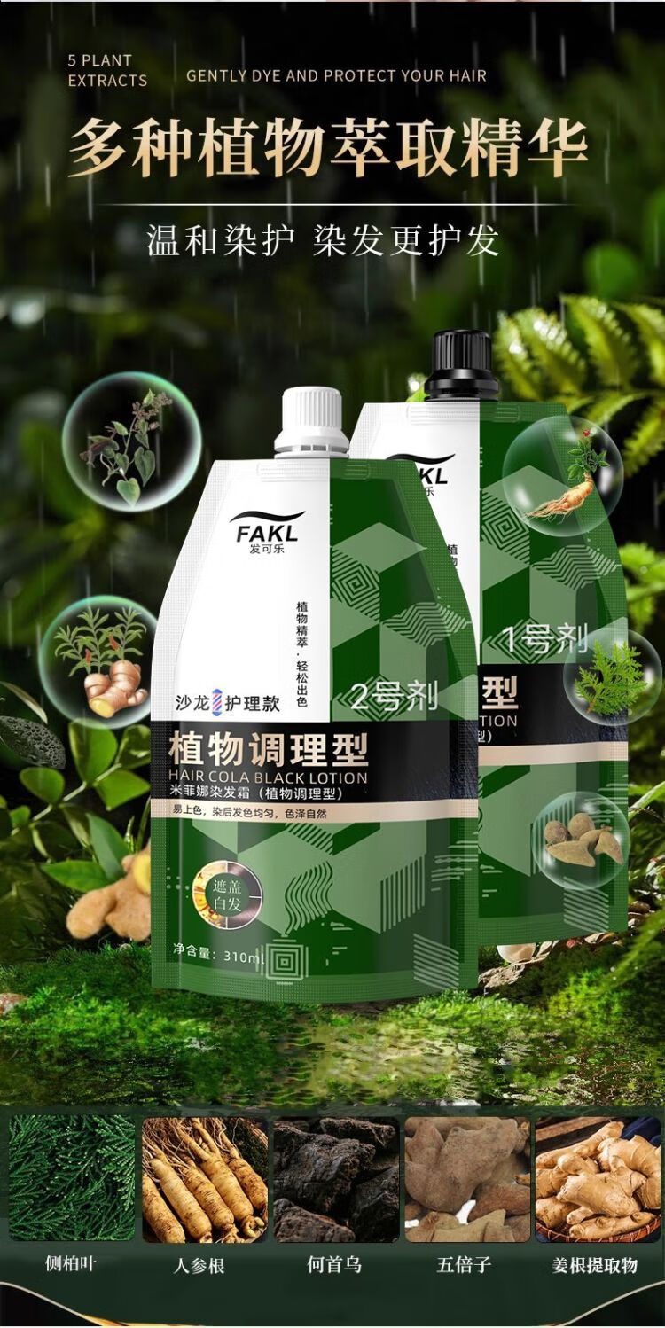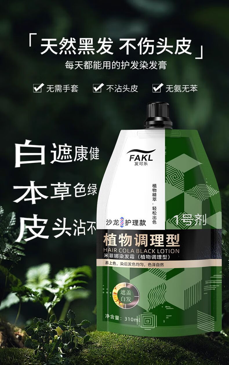 自然村染发液 发明专利打造 黑色染发剂植物 遮白发 染发剂膏 齐耳发用 一盒装
