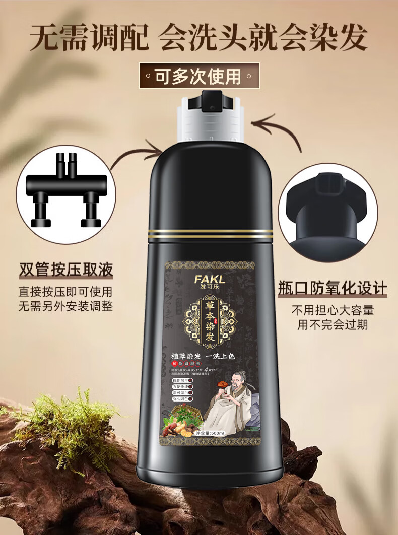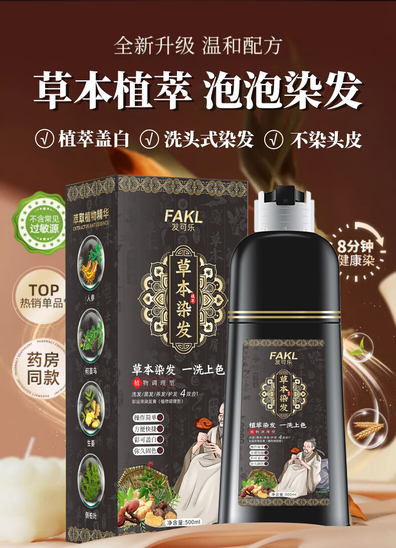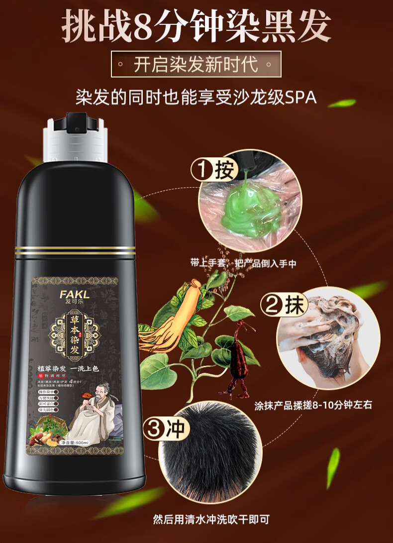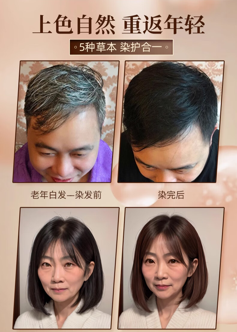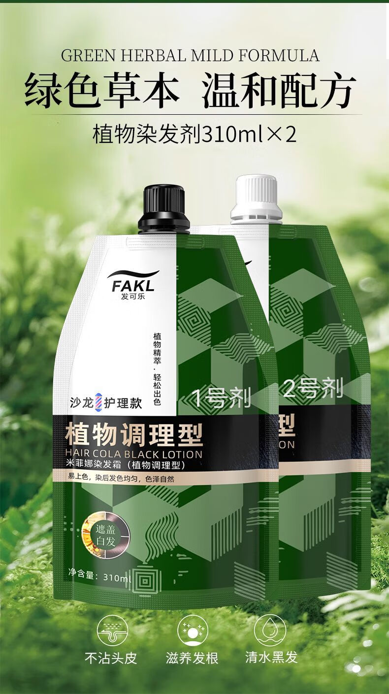 自然村染发液 发明专利打造 黑色染发剂植物 遮白发 染发剂膏 齐耳发用 一盒装