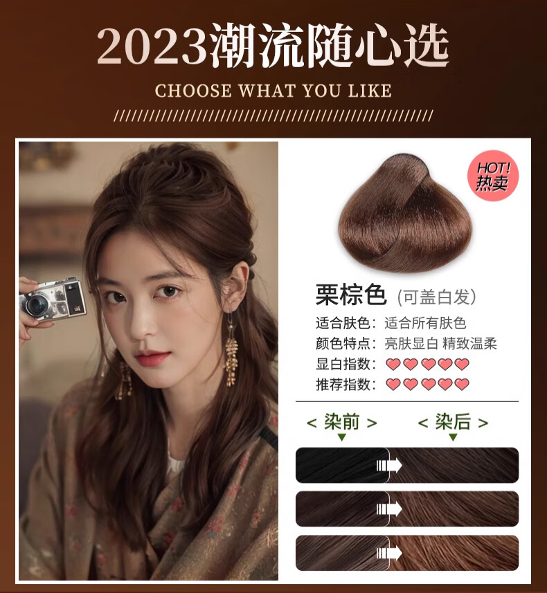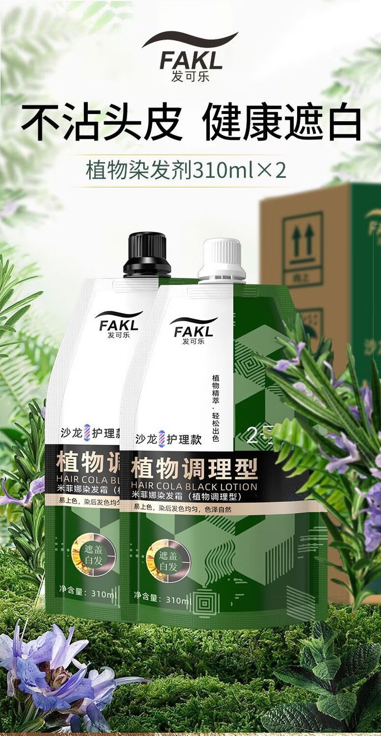 发可乐染发剂-天然果油植物萃取本草植物染发膏在家轻松盖白发不沾头皮 【大双支】年轻潮流系一点击选择系列 榛果灰棕【染护合一】健康上色*720ML