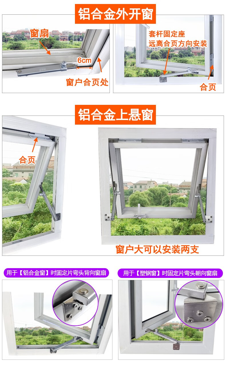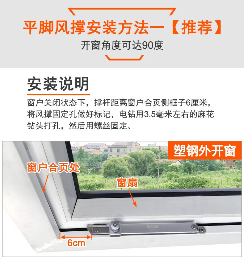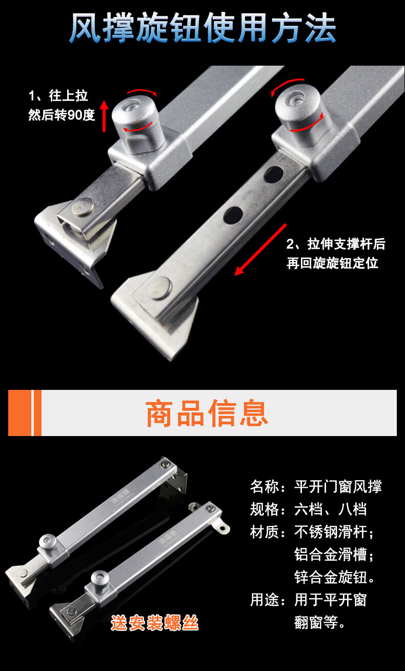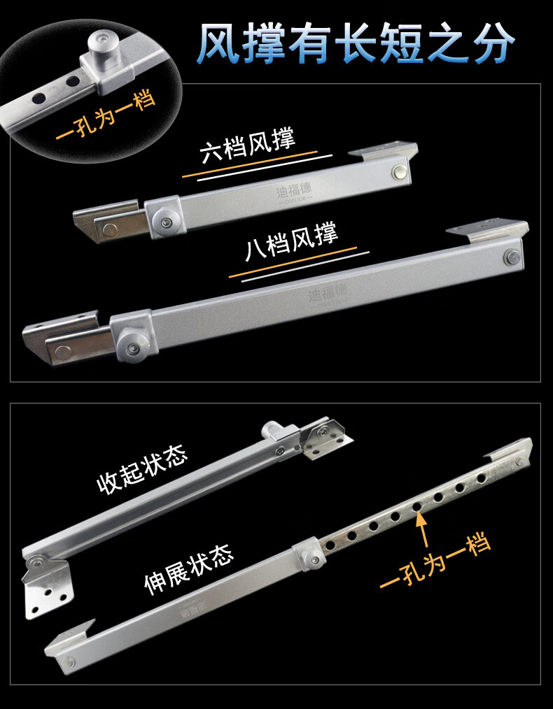 迪福德 塑钢窗风撑挡风杆铝合金防风撑杆平开防火门窗限位器铰链撑杆 【六档 平脚款】风撑 1支的价格