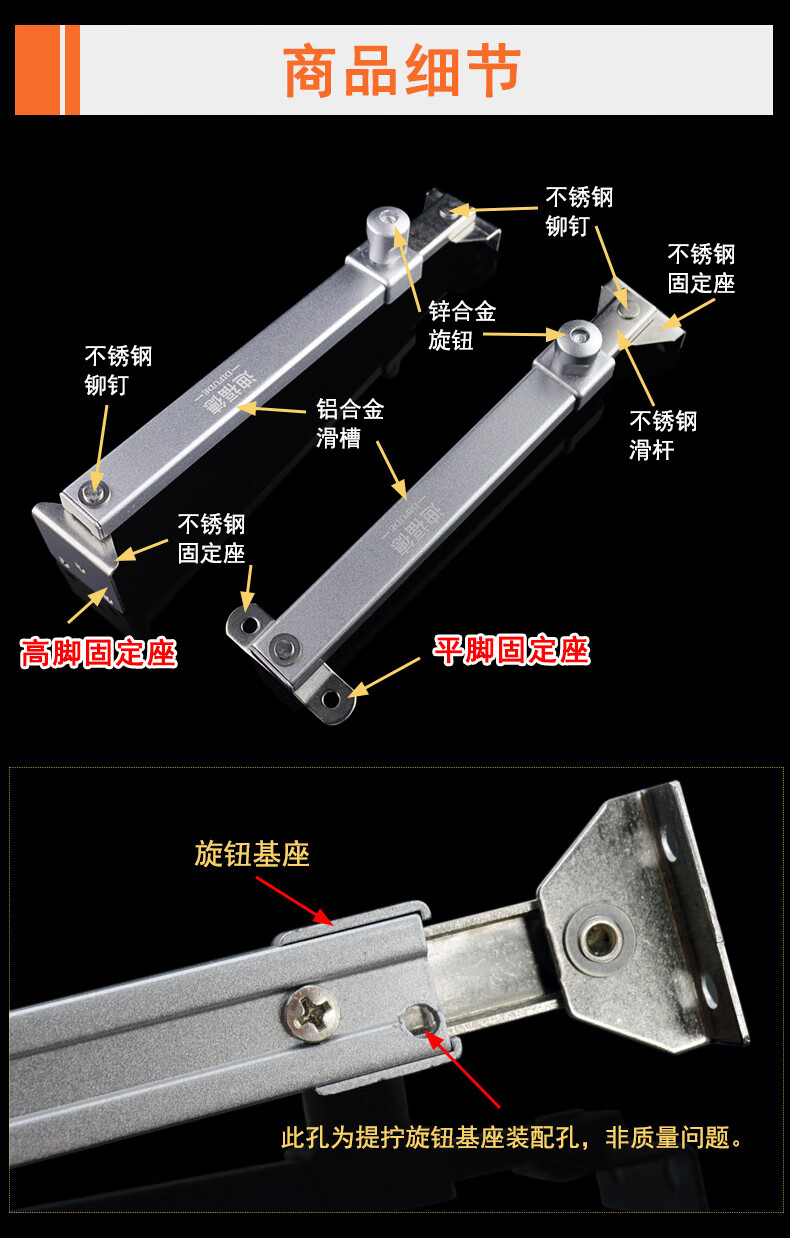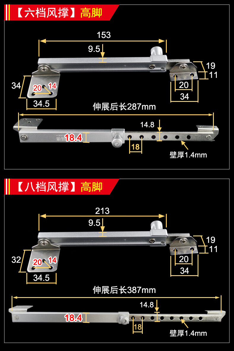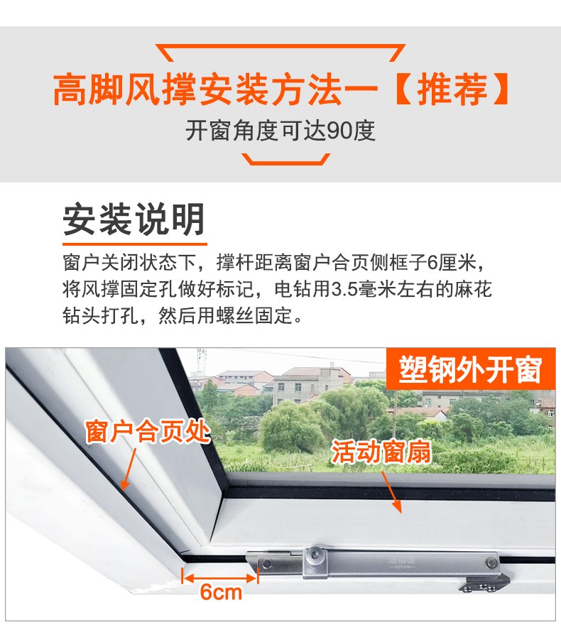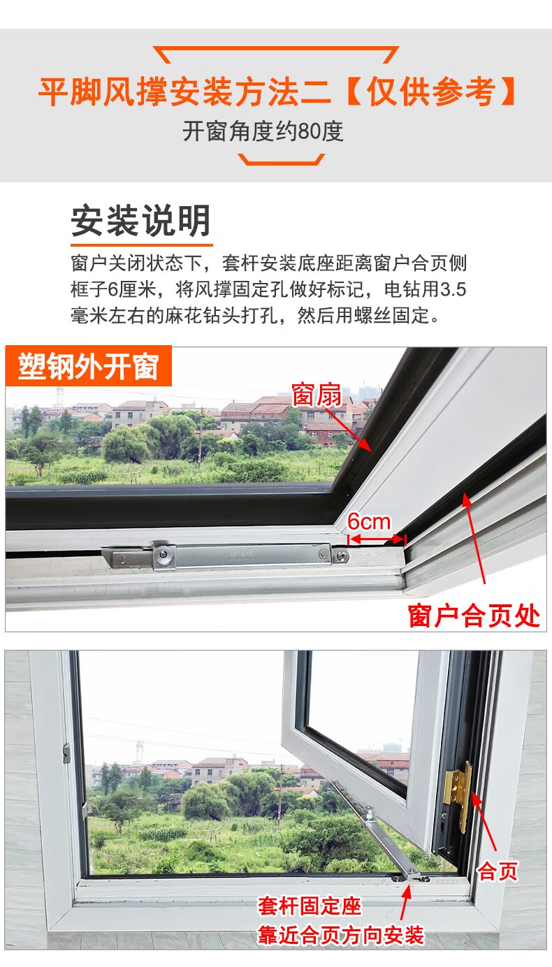 迪福德 塑钢窗风撑挡风杆铝合金防风撑杆平开防火门窗限位器铰链撑杆 【六档 平脚款】风撑 1支的价格