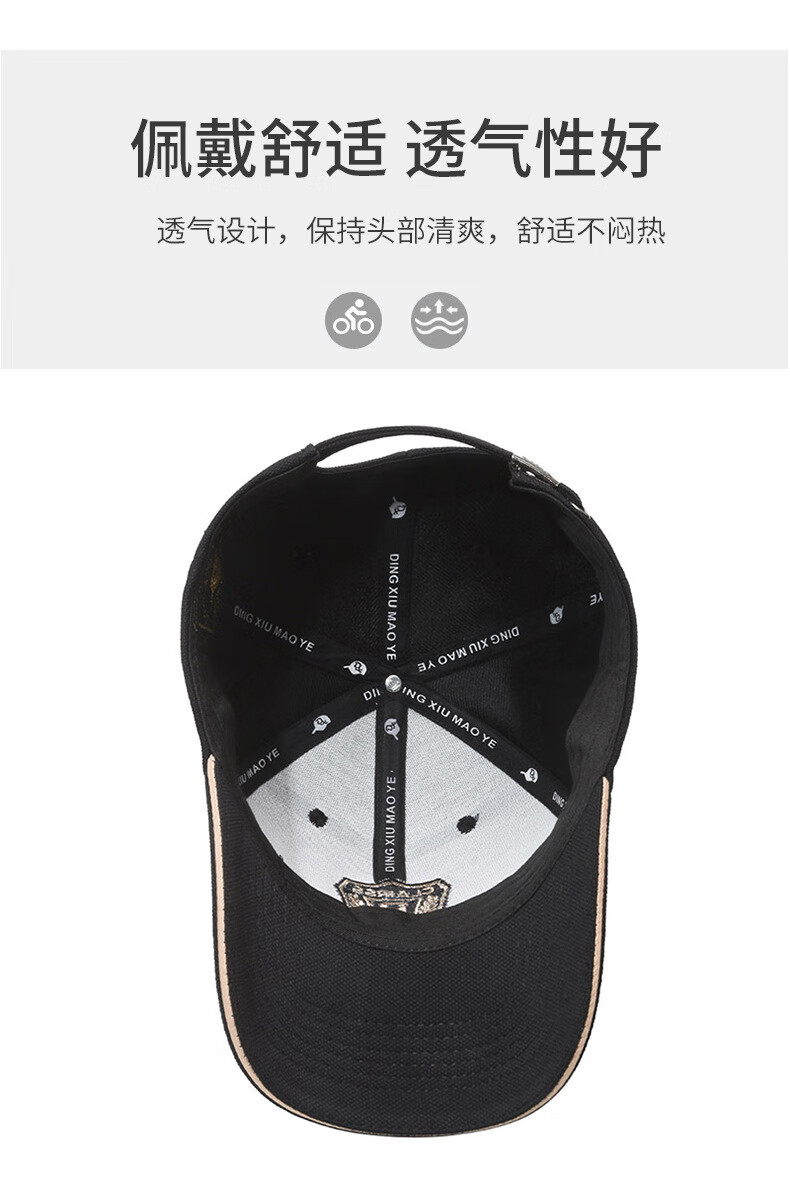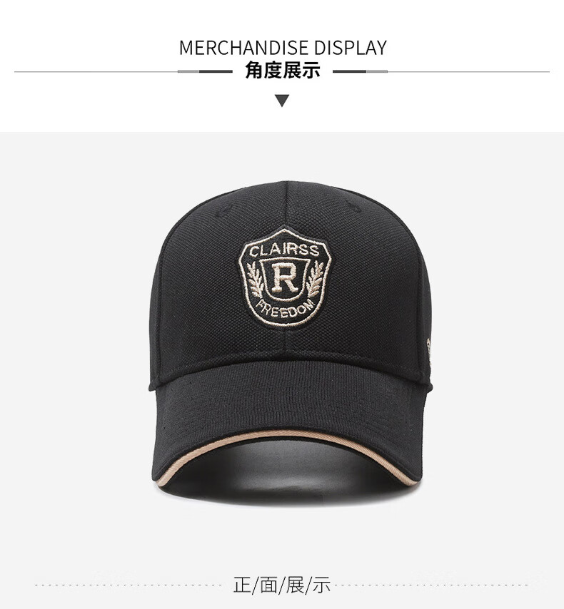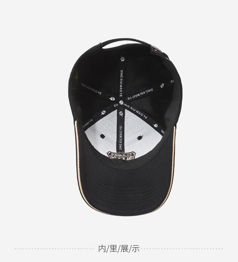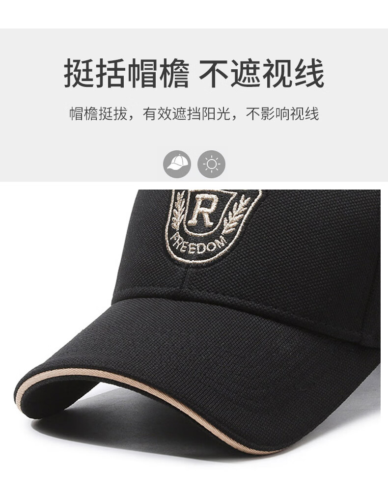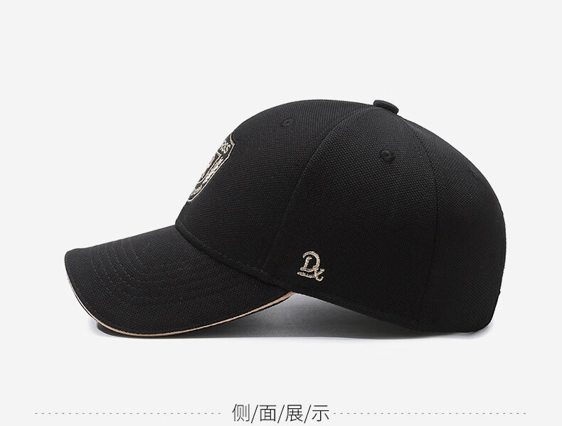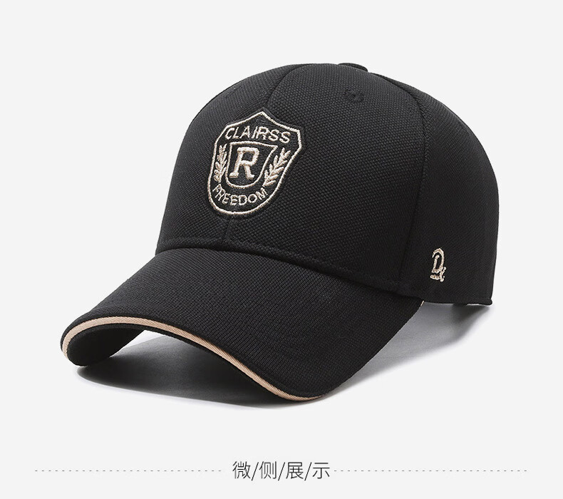 自相遇硬顶帽子男女同款菠萝布金线刺绣R字母遮阳棒球帽时尚百搭鸭舌帽 黑色金秀+礼盒 均码