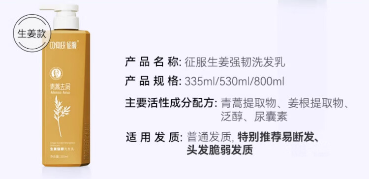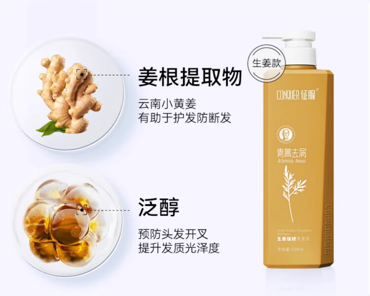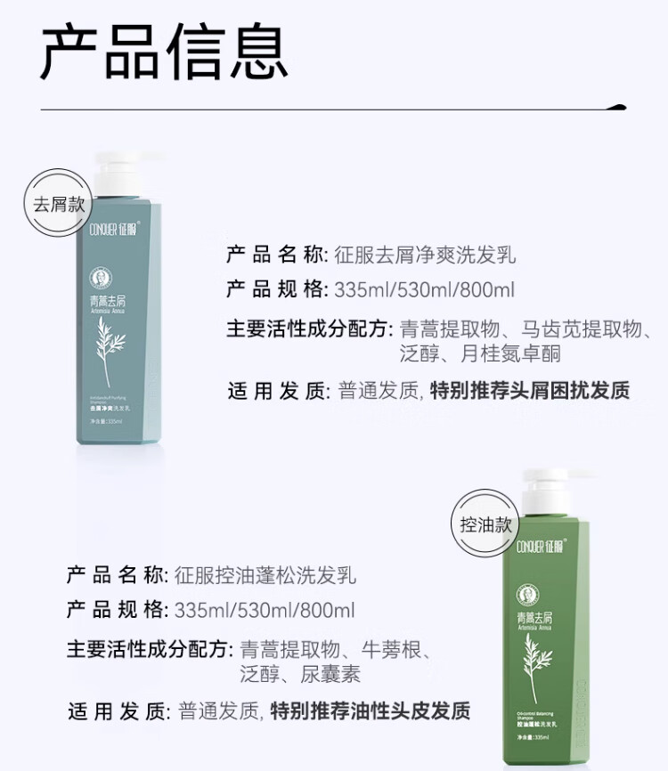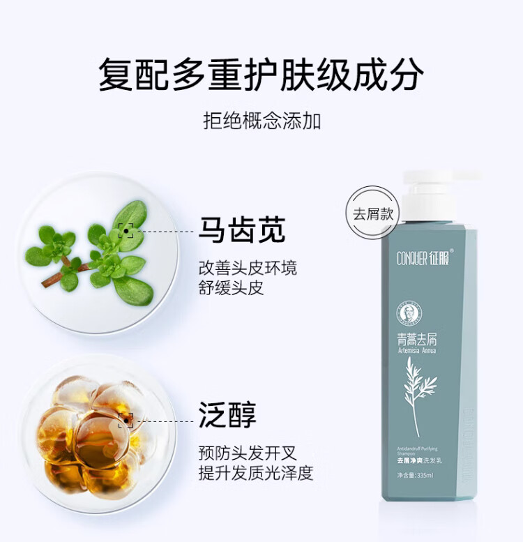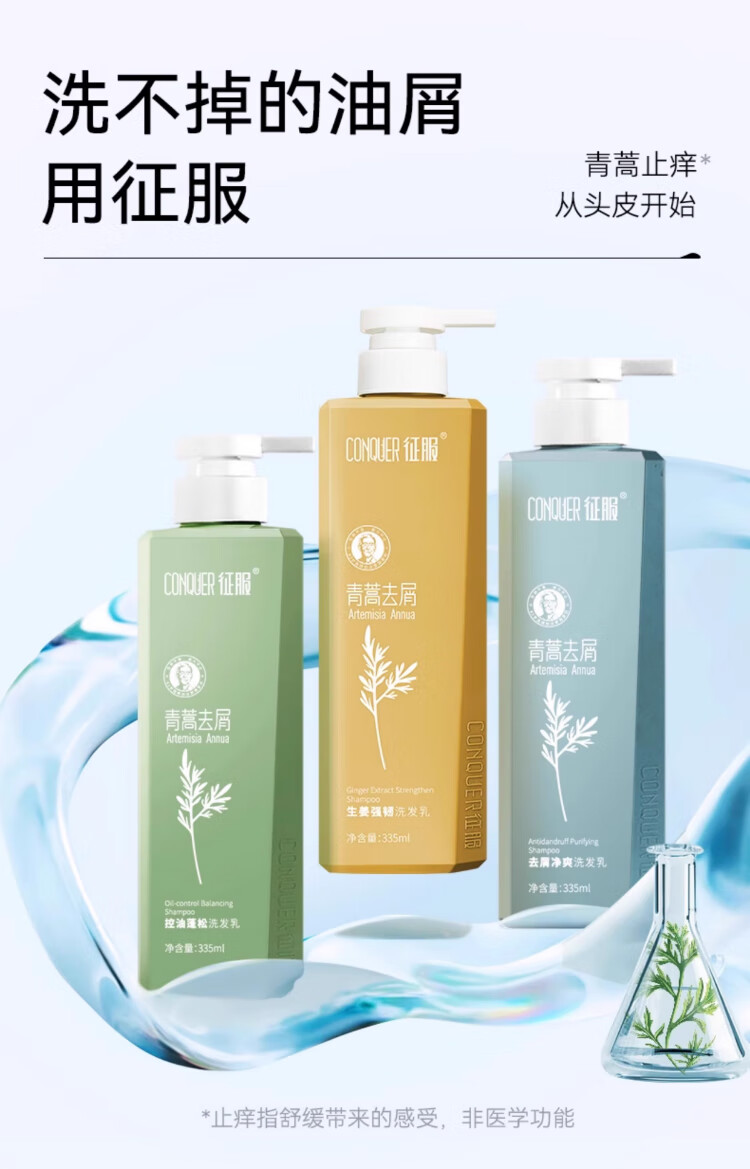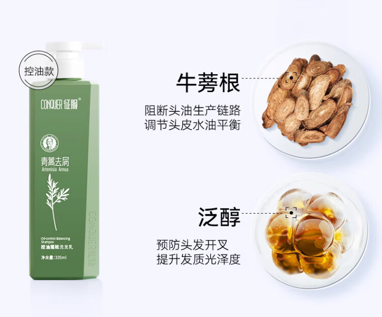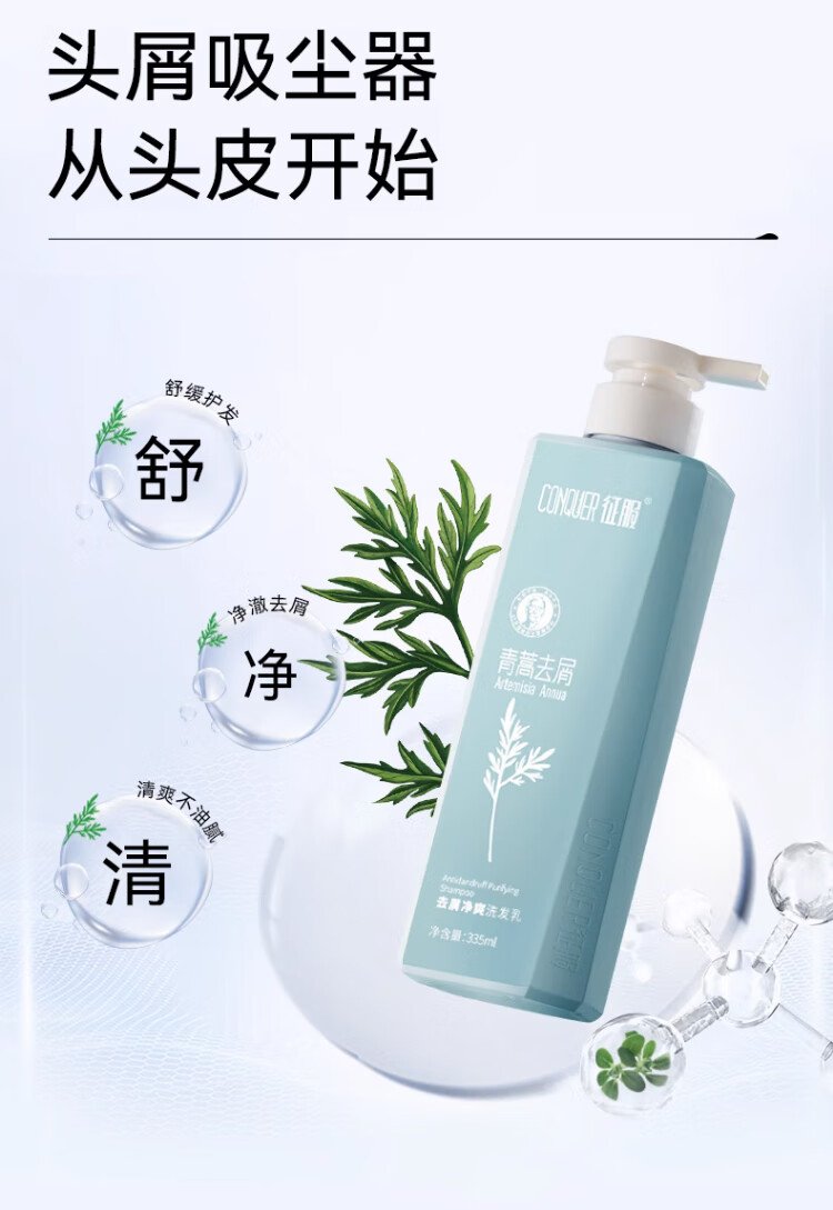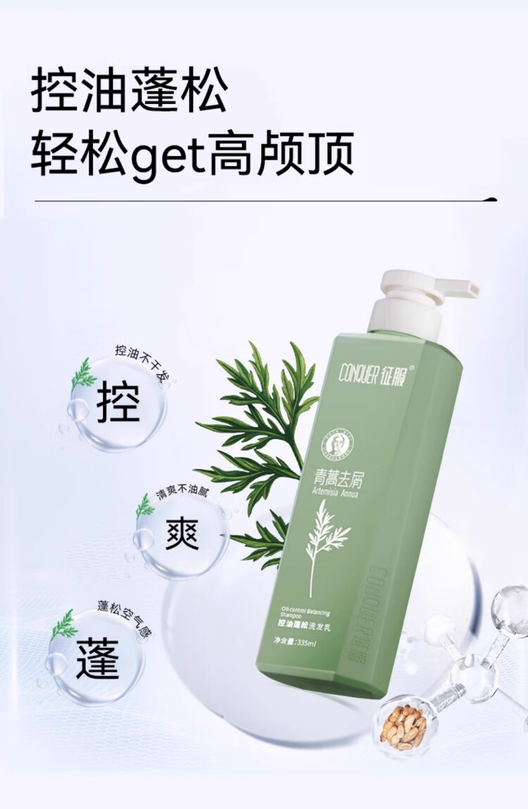 征服(ConQUER)青蒿洗发水去屑控油洗发露蓬松洗发膏男女士通用 800ml去屑洗发水