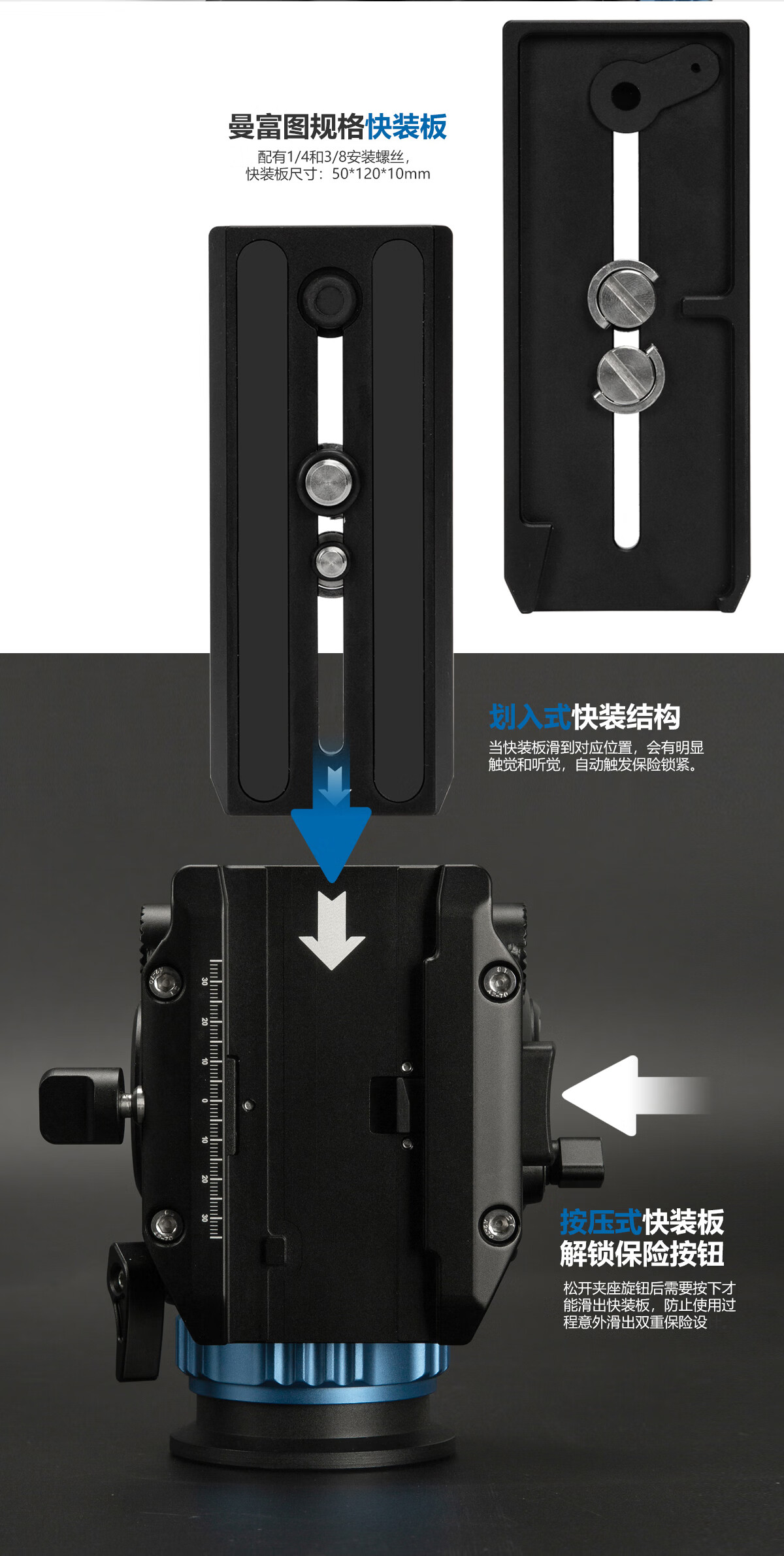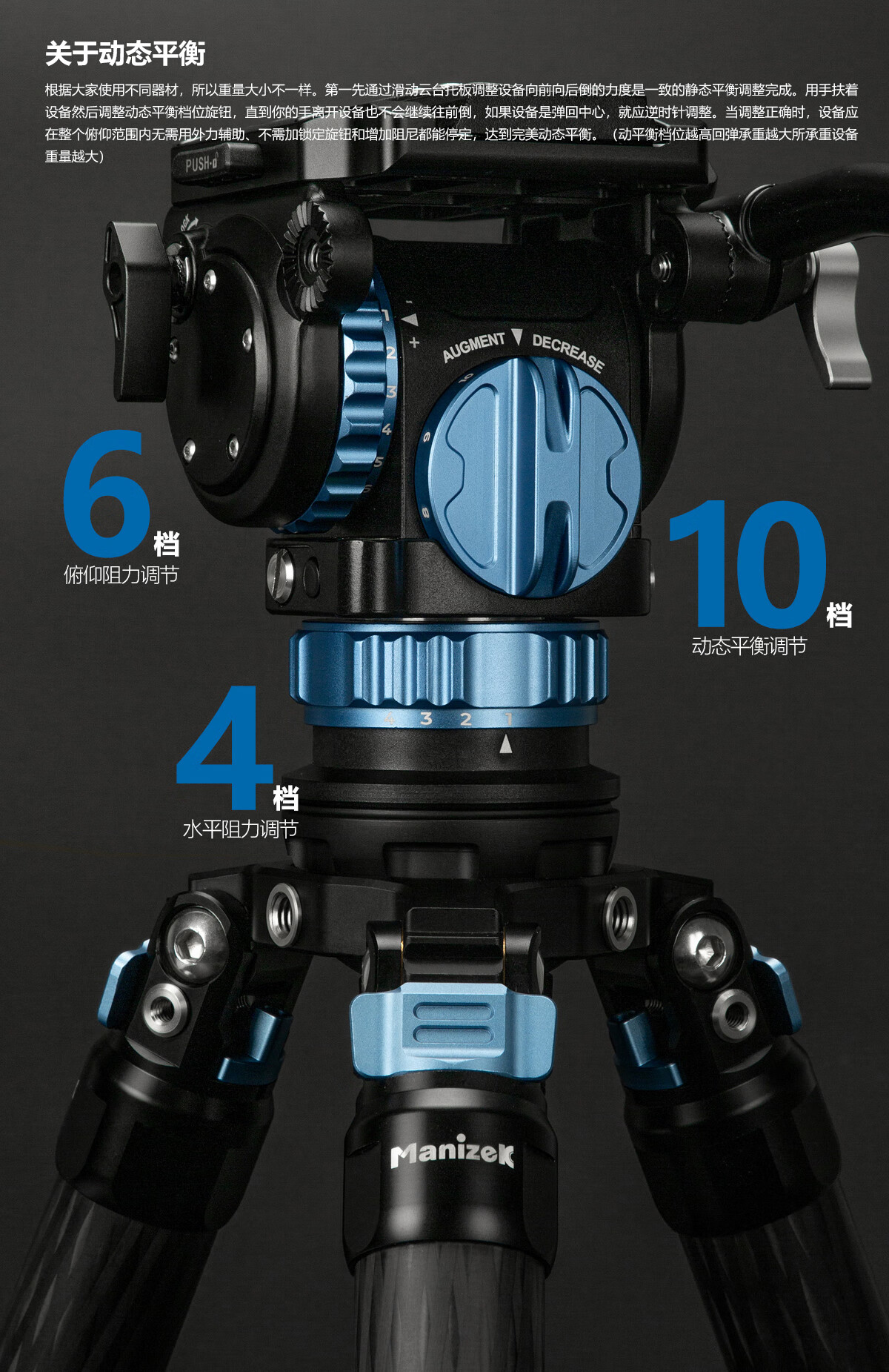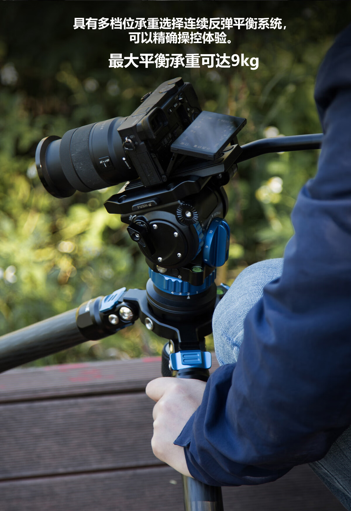 仕宏动平衡液压云台6档8kg摄像机稳定器专业单反相机摄影三脚架云台 蓝色色液压云台+三脚架