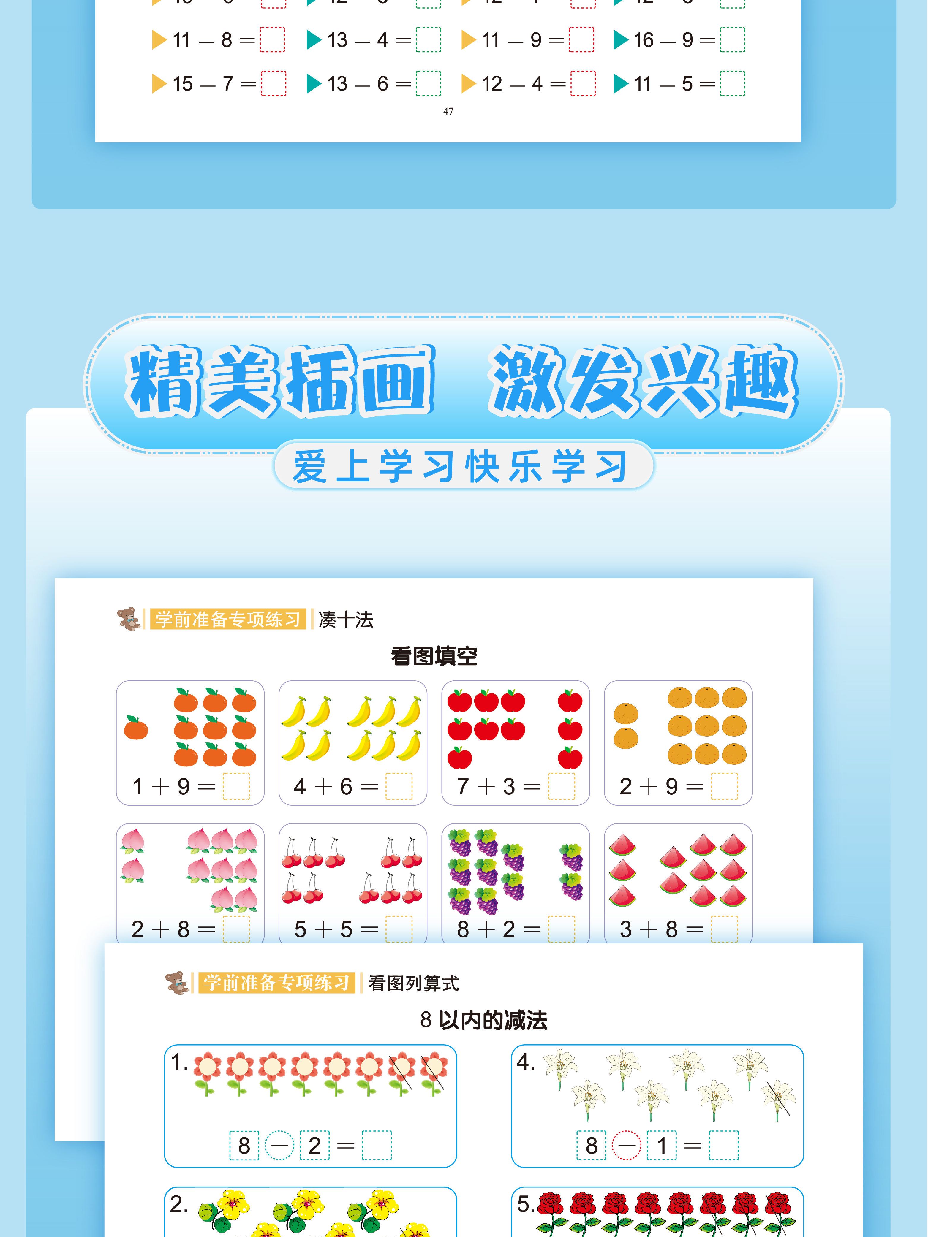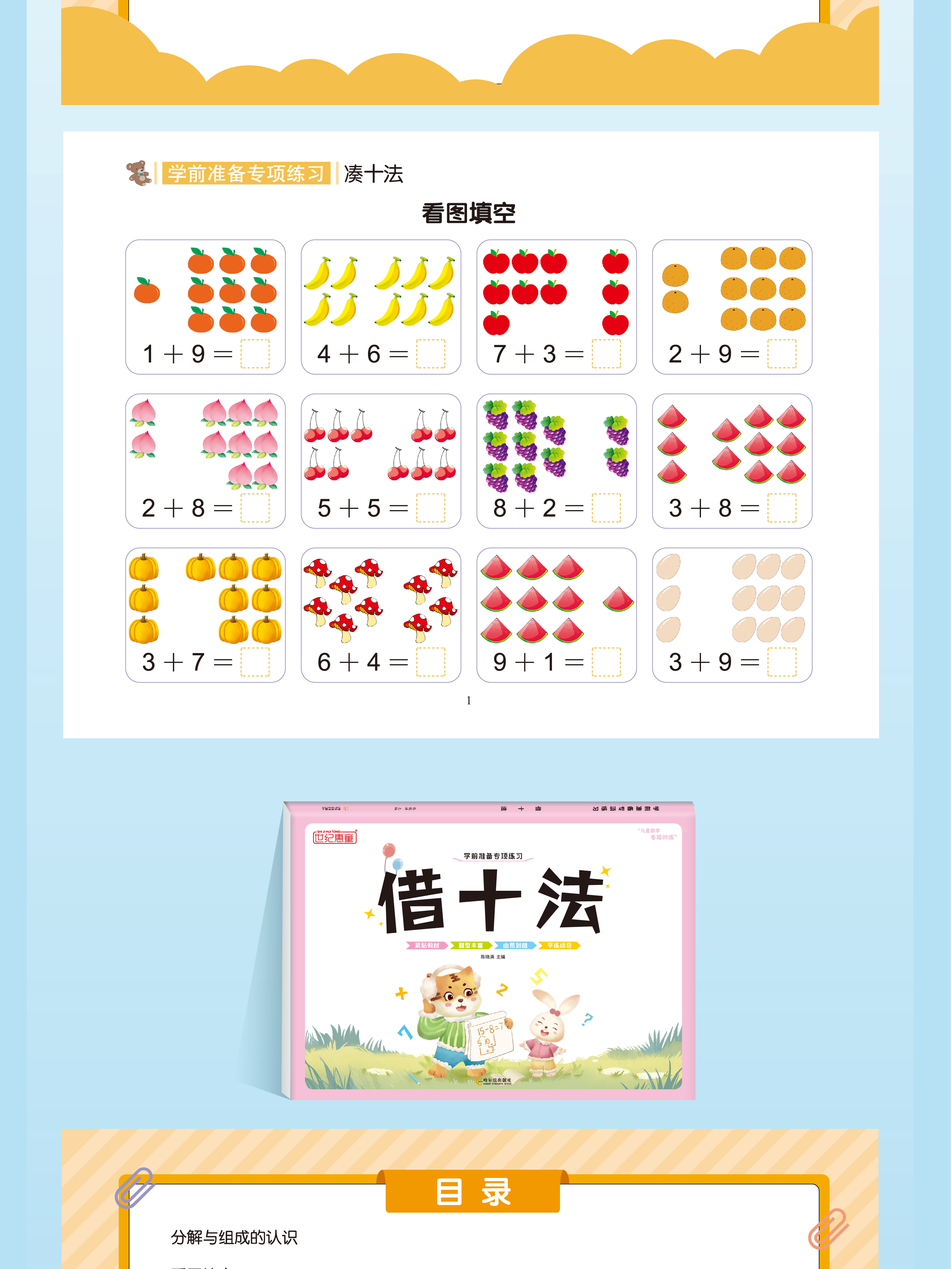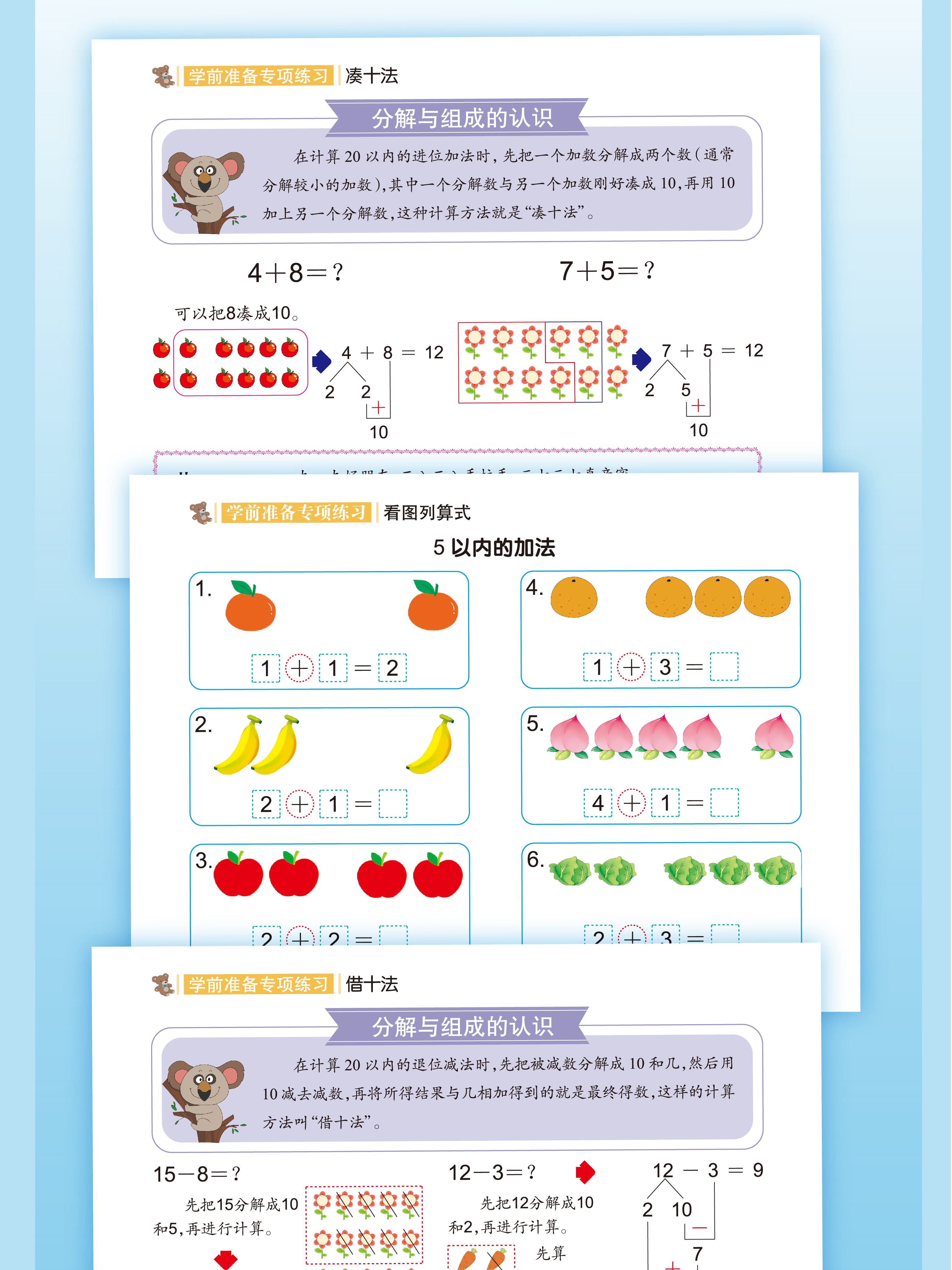 升级版幼小衔接借十法凑十法数学专项启蒙加减法练习册一年级看图列算式 【升级版彩图大开本】借+凑+分解+看图列算 共4本