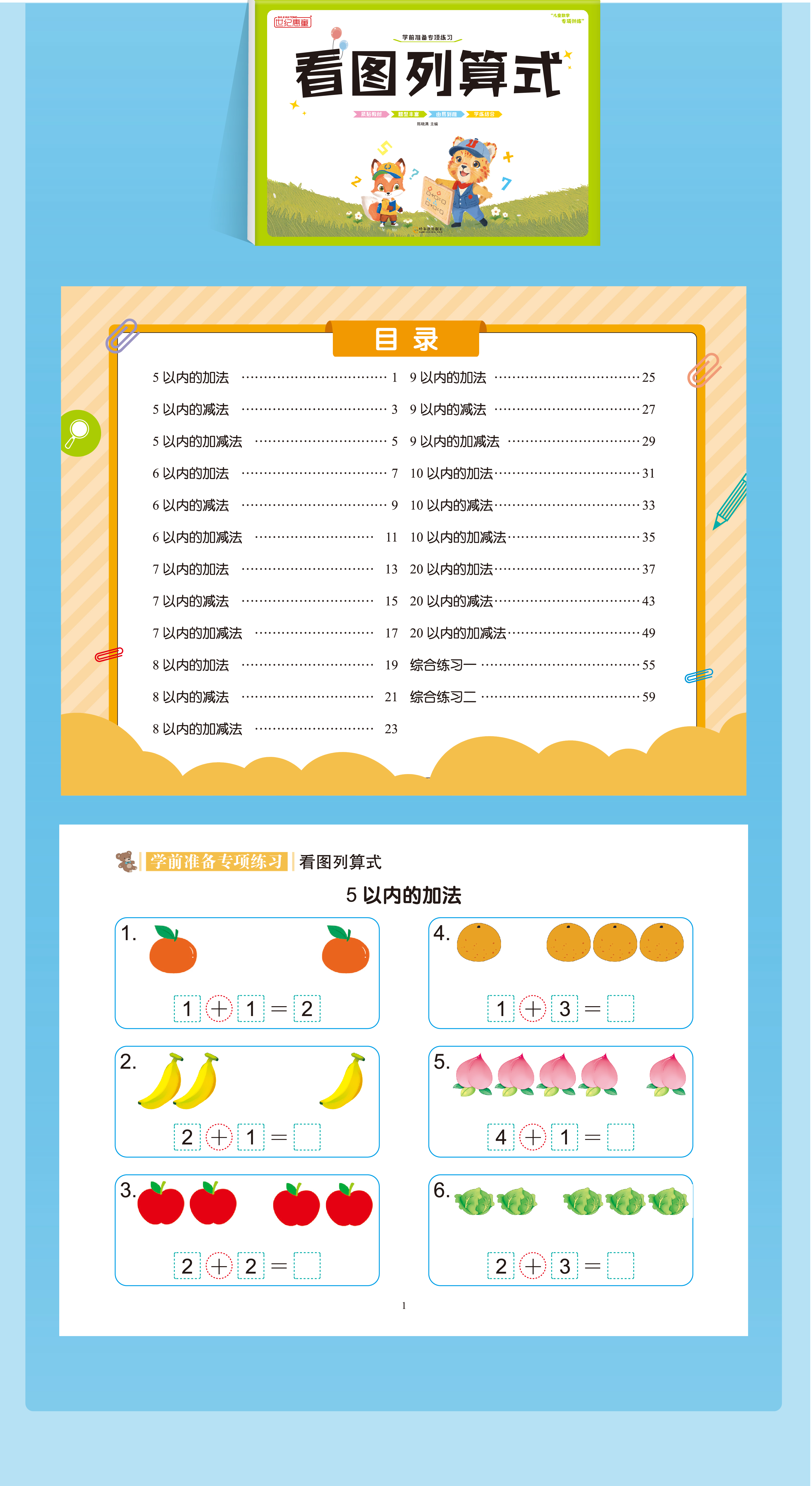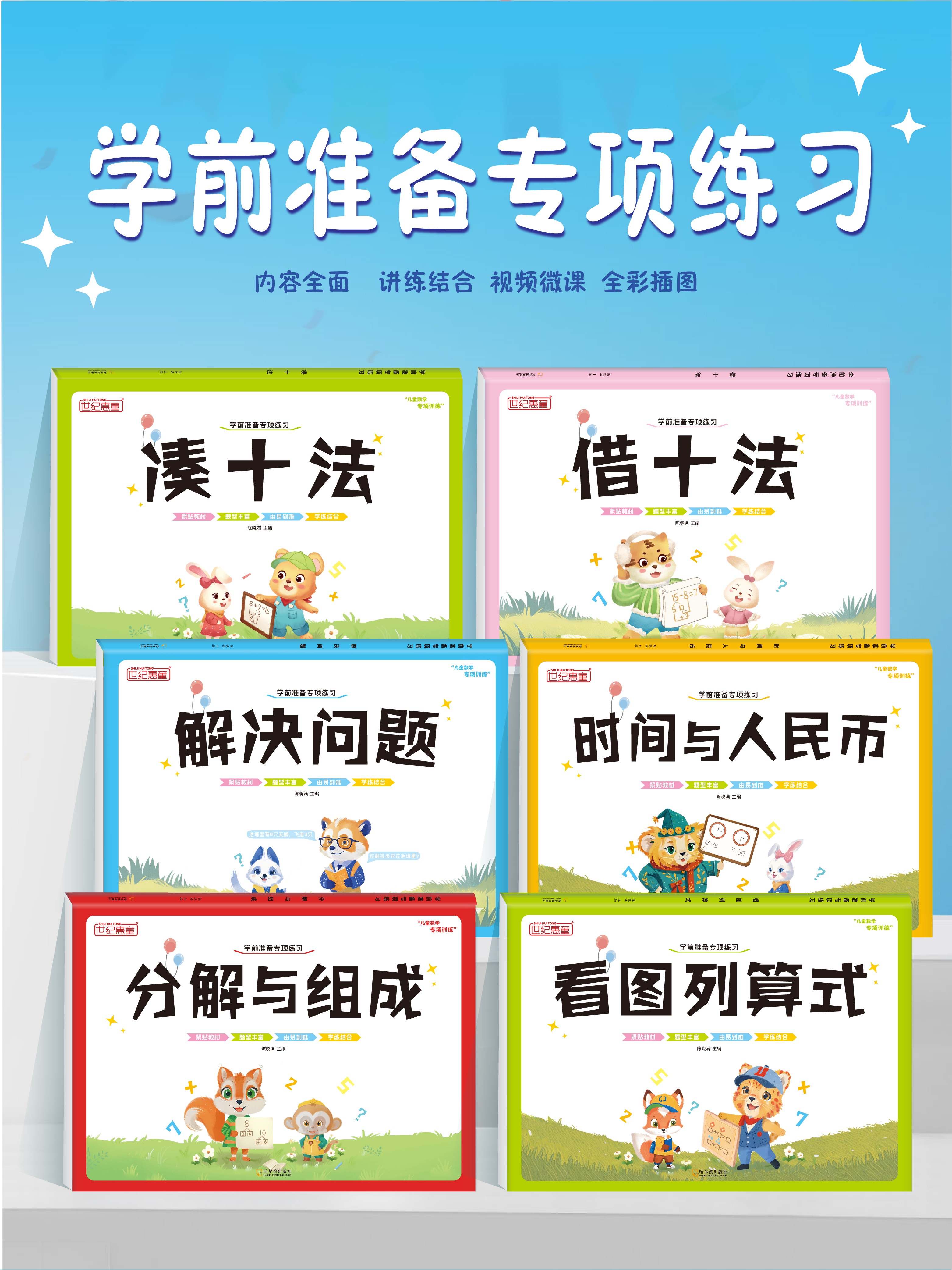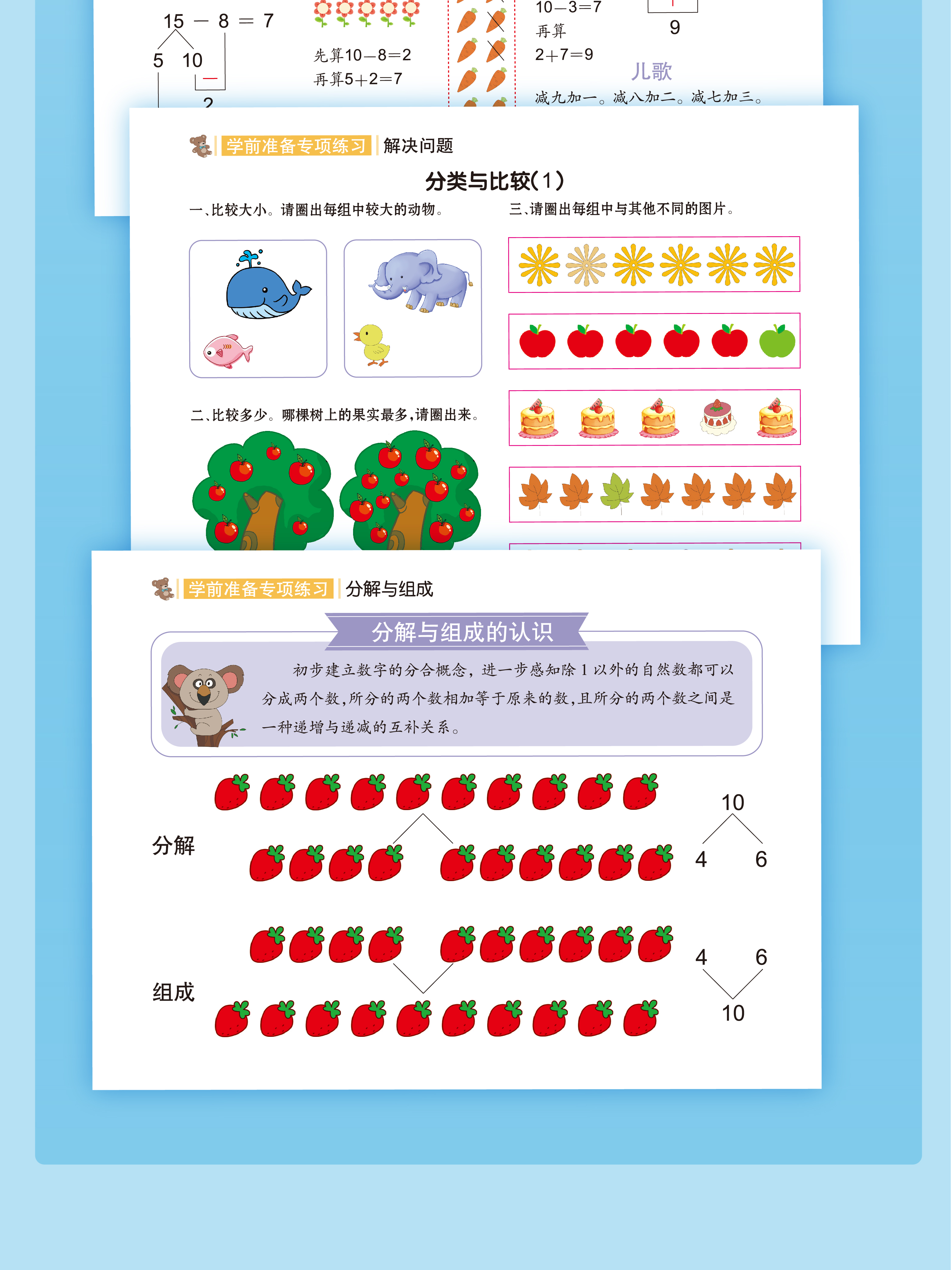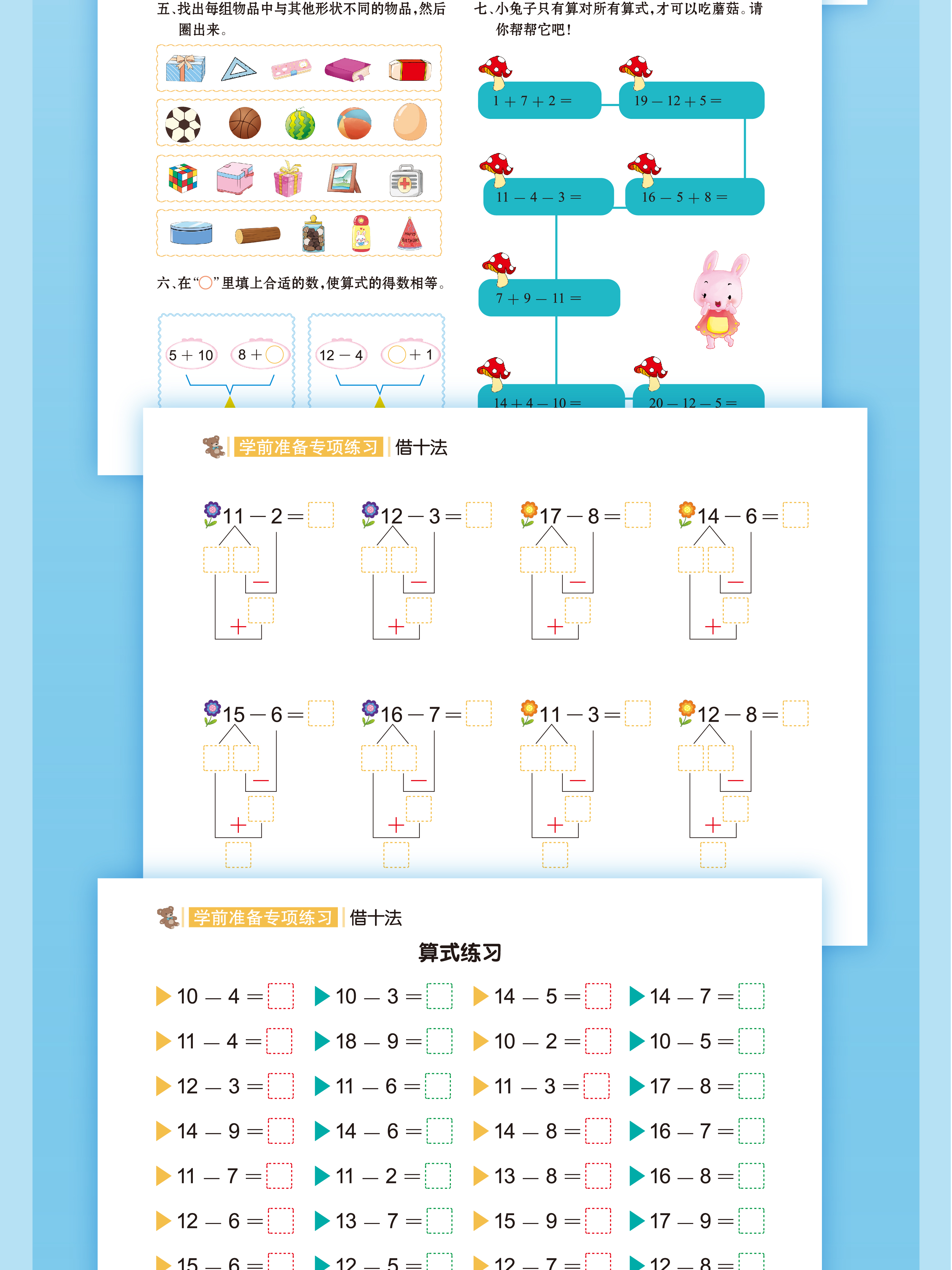 升级版幼小衔接借十法凑十法数学专项启蒙加减法练习册一年级看图列算式 【升级版彩图大开本】借+凑+分解+看图列算 共4本