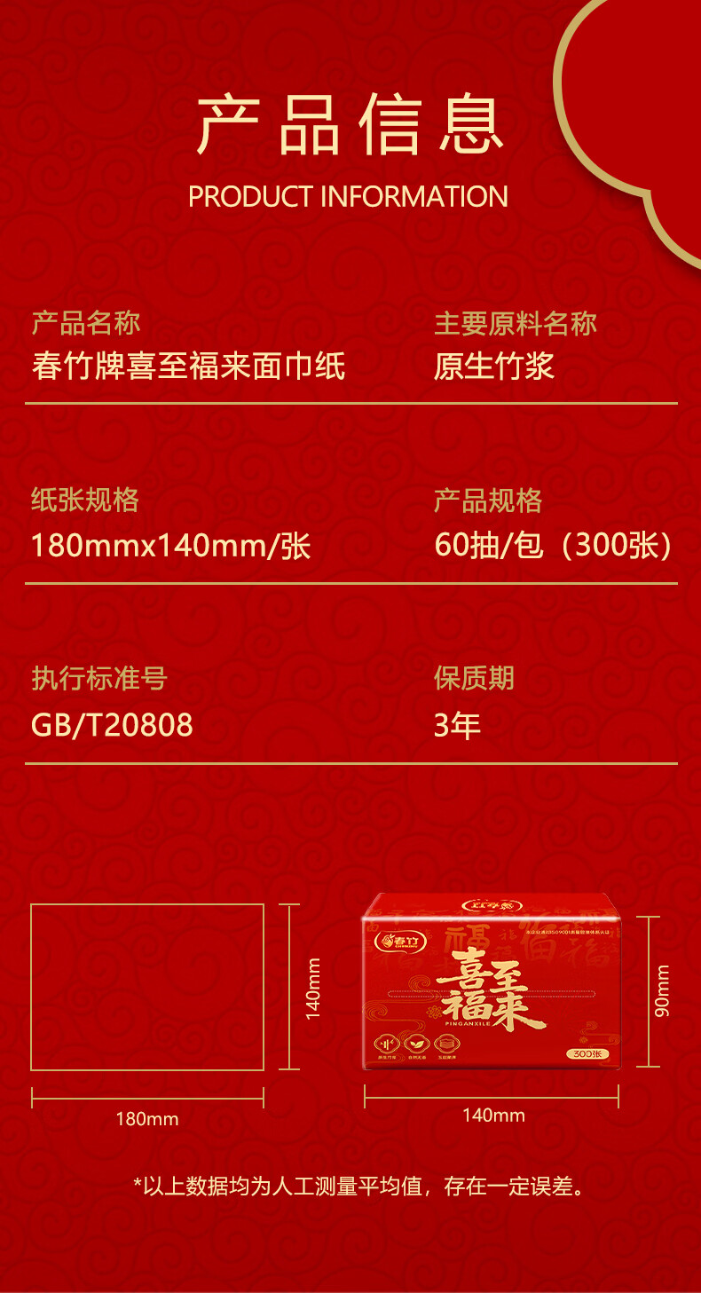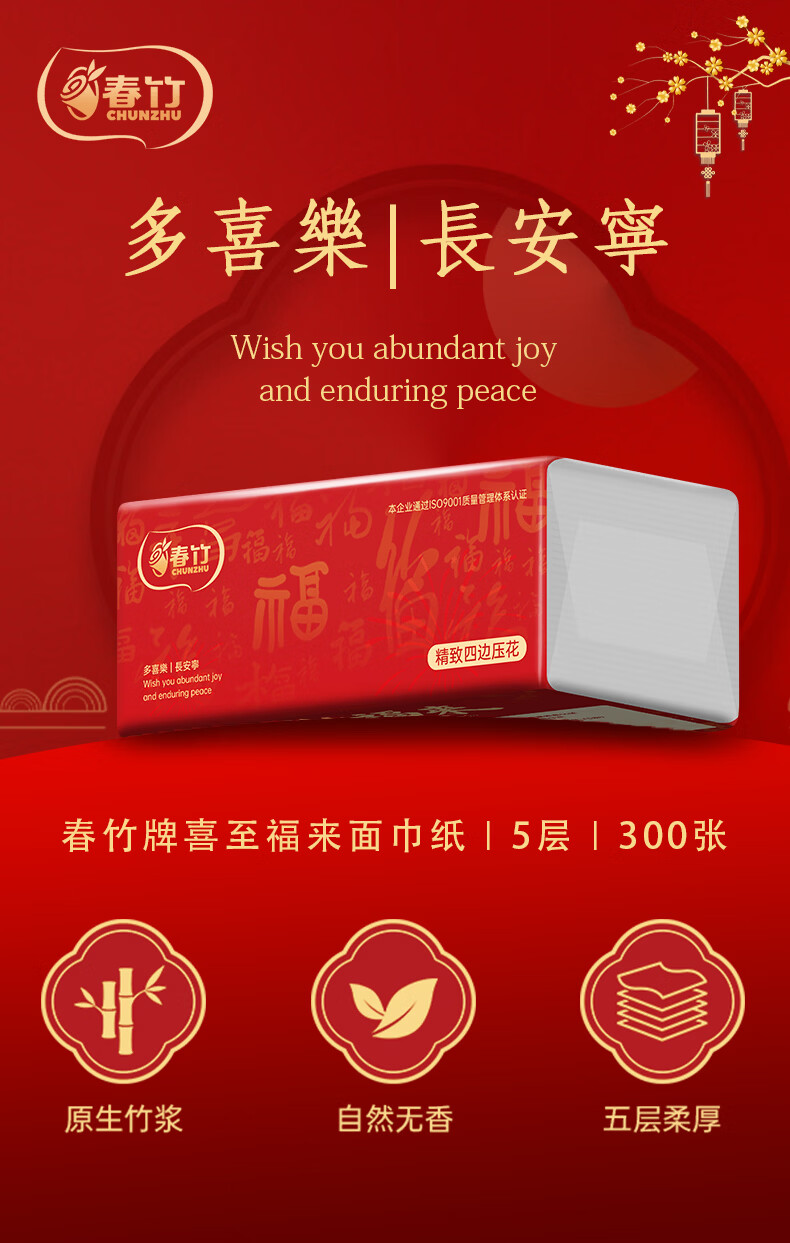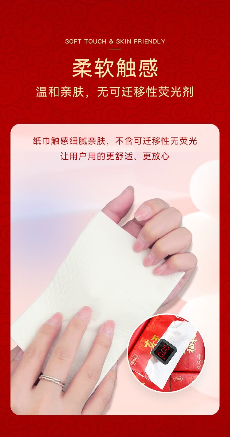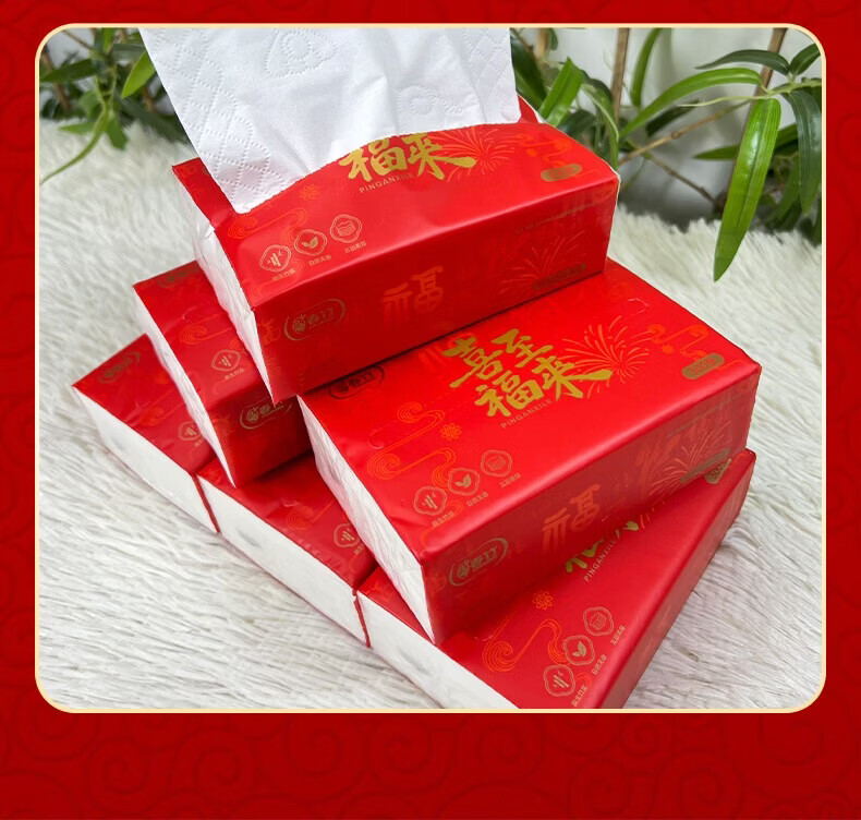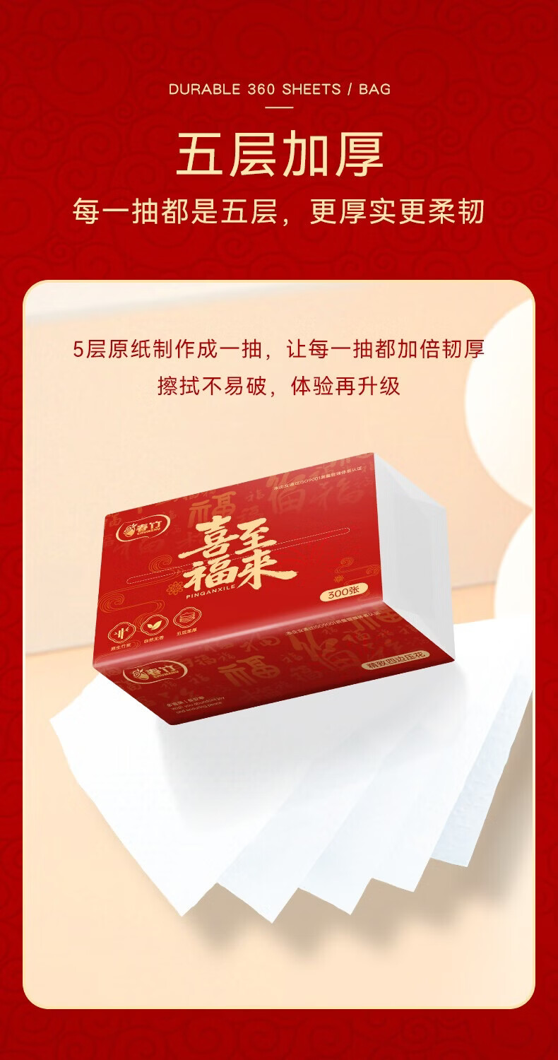 春竹抽纸24大包新年喜庆装纸巾5层加厚四边压花卫生纸节日家用餐巾纸 新年氛围抽纸 5层 60抽*24包