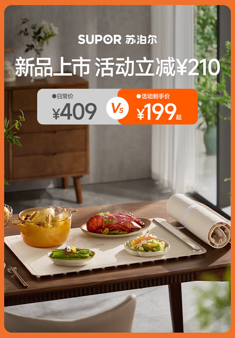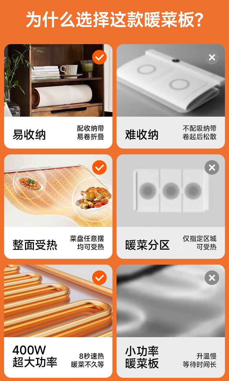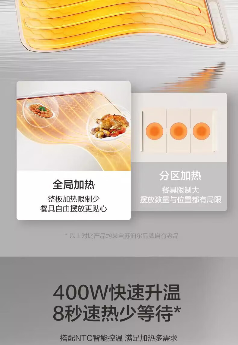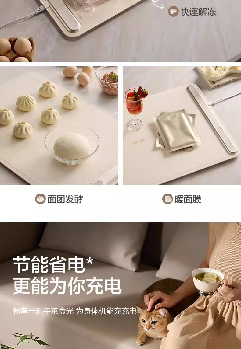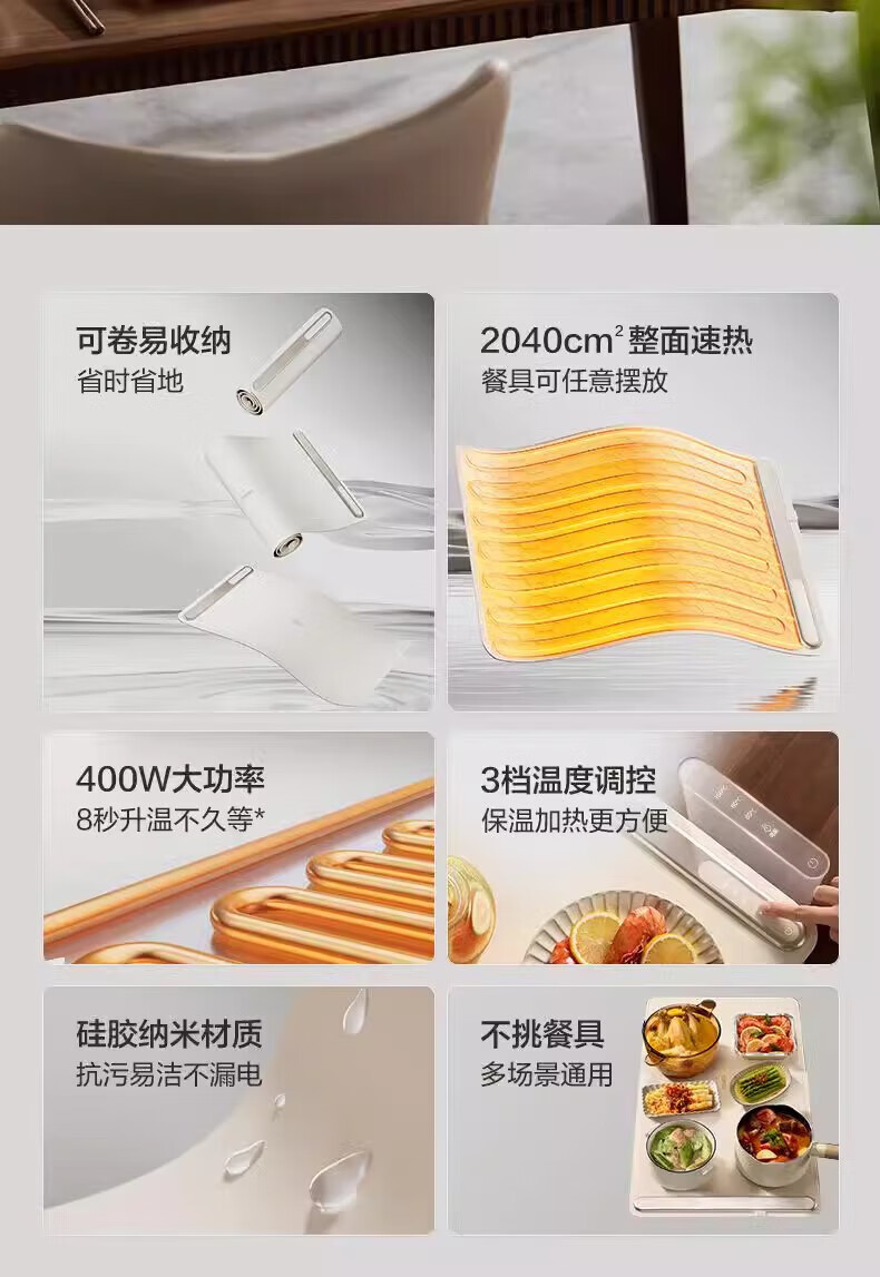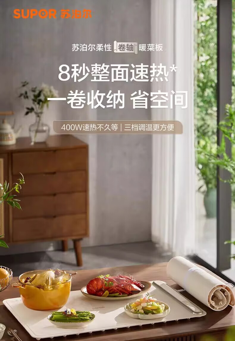 苏泊尔加热暖菜板 餐桌保温板加热饭菜板 多功能恒温餐桌垫2025年新款家用方形柔性折叠饭菜保温神器B 【8秒速热】折叠暖菜神器 -一次可热6道菜
