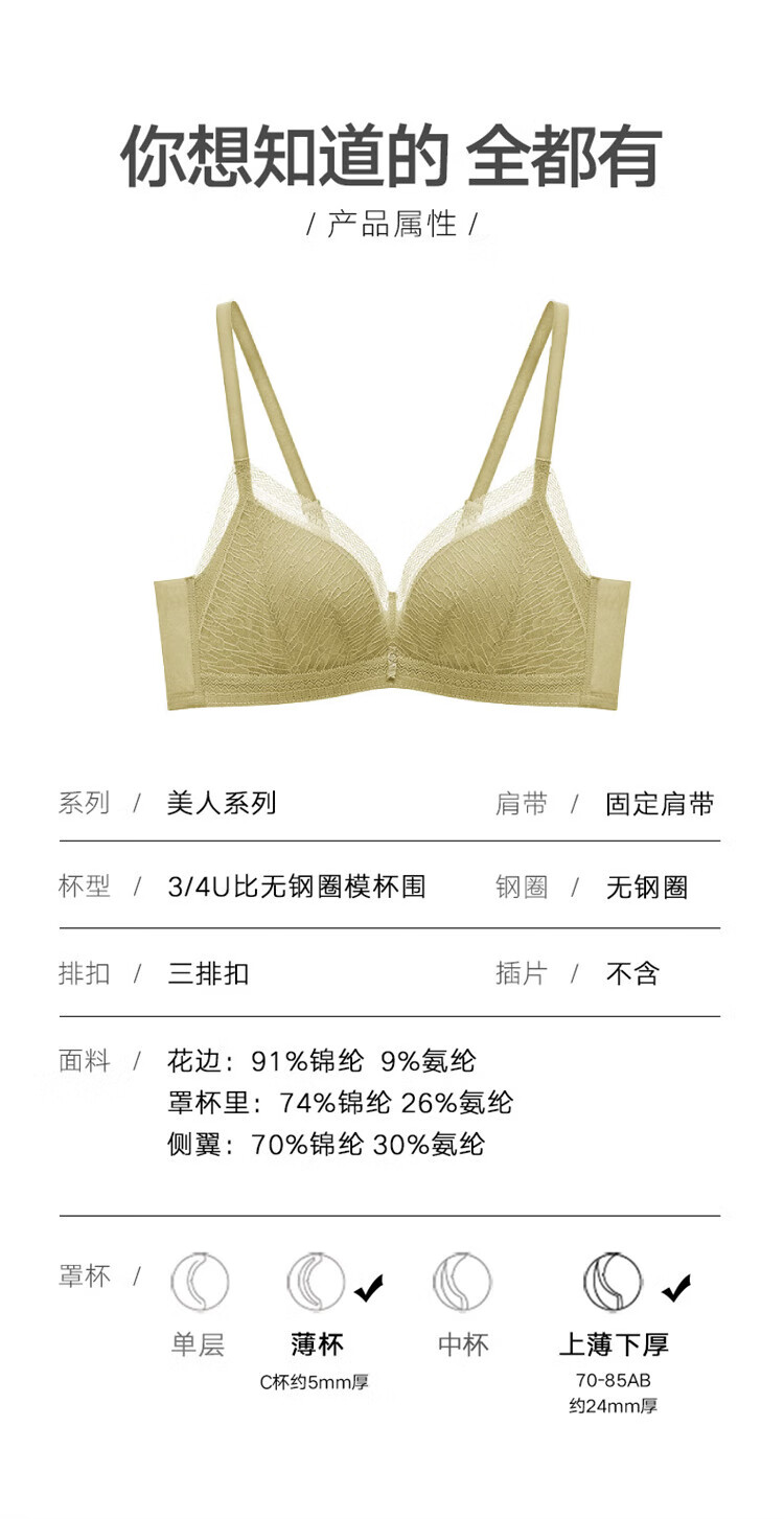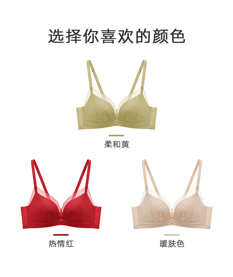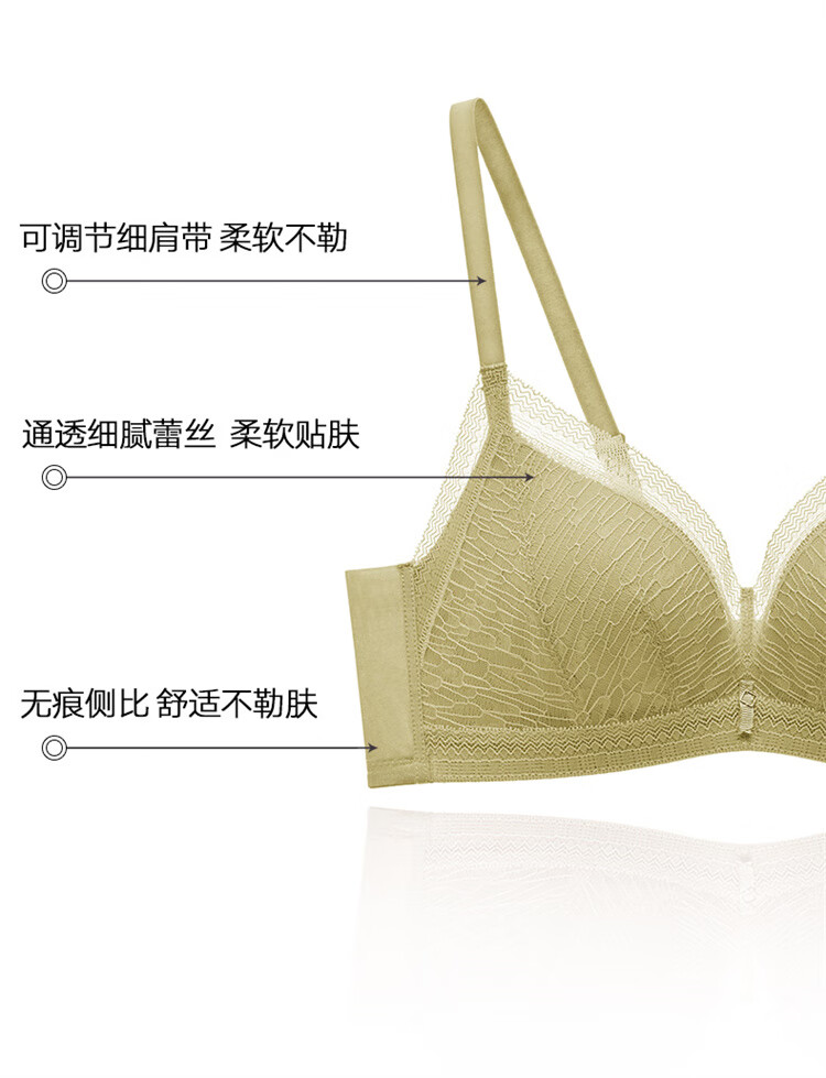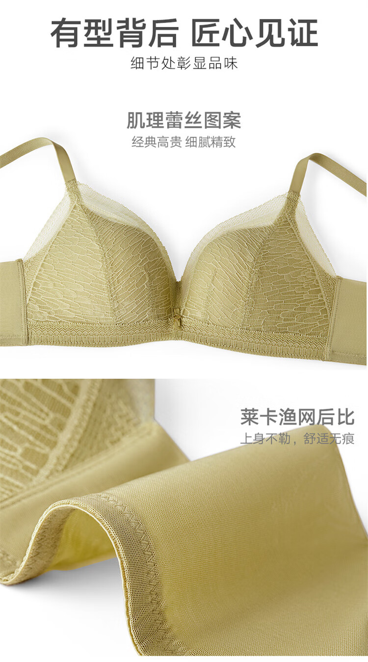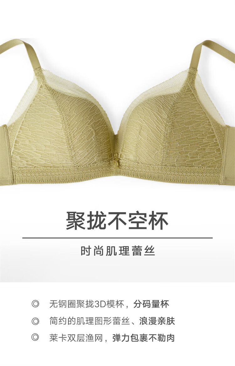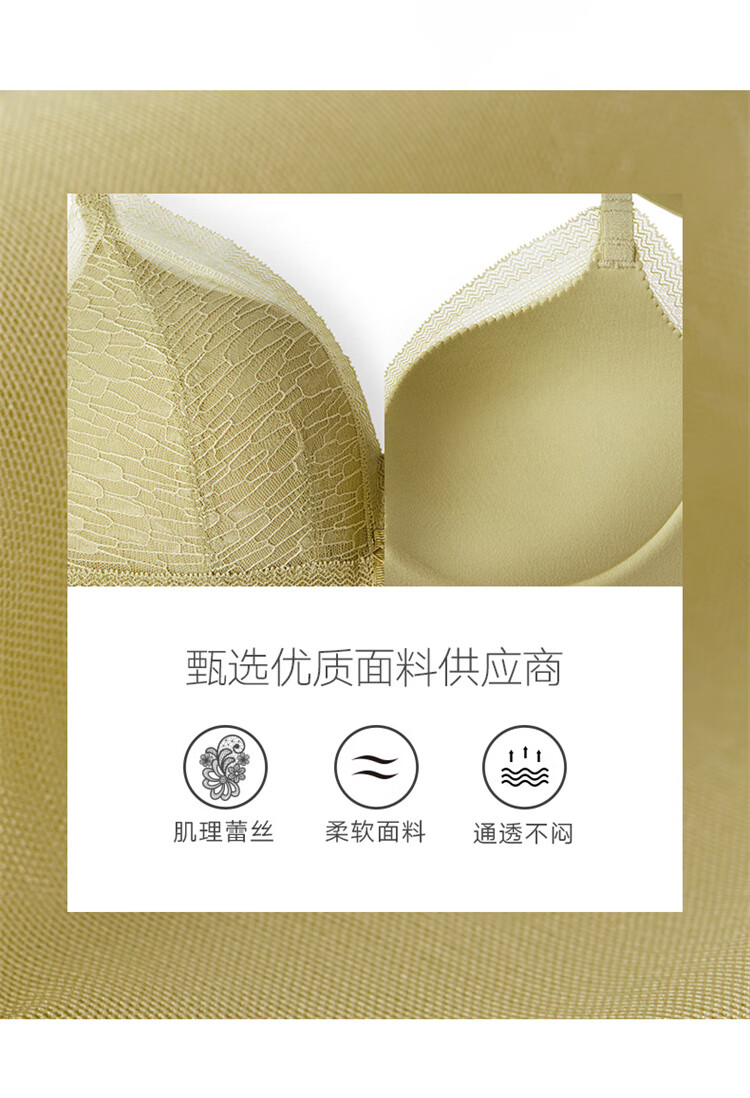 曼妮芬无钢圈文胸性感蕾丝聚拢内衣女士舒适胸罩聚拢提胸上托本命年内衣 060 柔和黄 75B (上薄下厚聚拢杯)