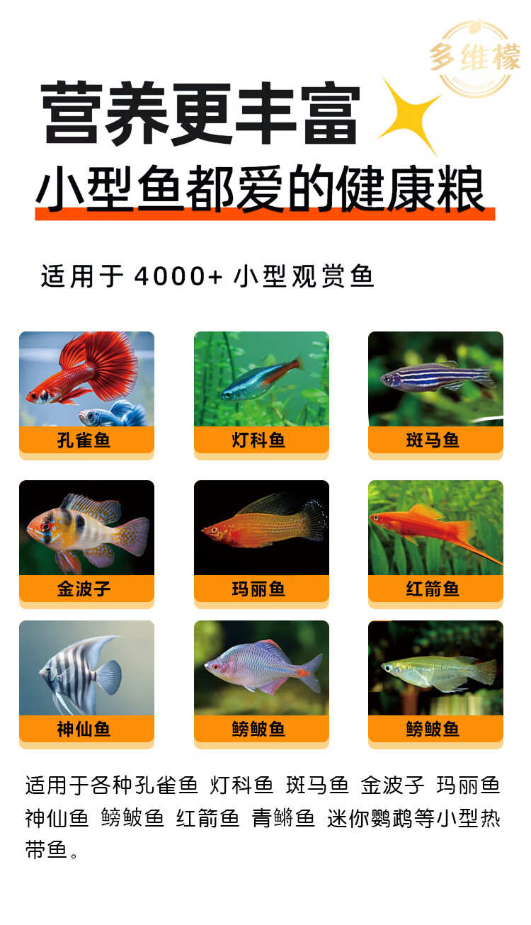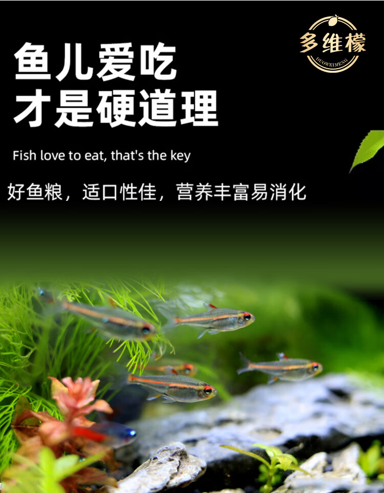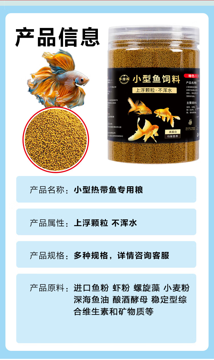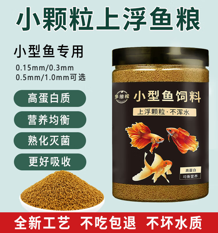 多维檬鱼食观赏鱼饲料颗粒型高蛋白上浮鱼粮孔雀鱼黑尾大勾鱼饲料小型鱼 1.0mm【6-18鱼体】促长增艳 【600mL瓶装】易吸收 送喂鱼勺