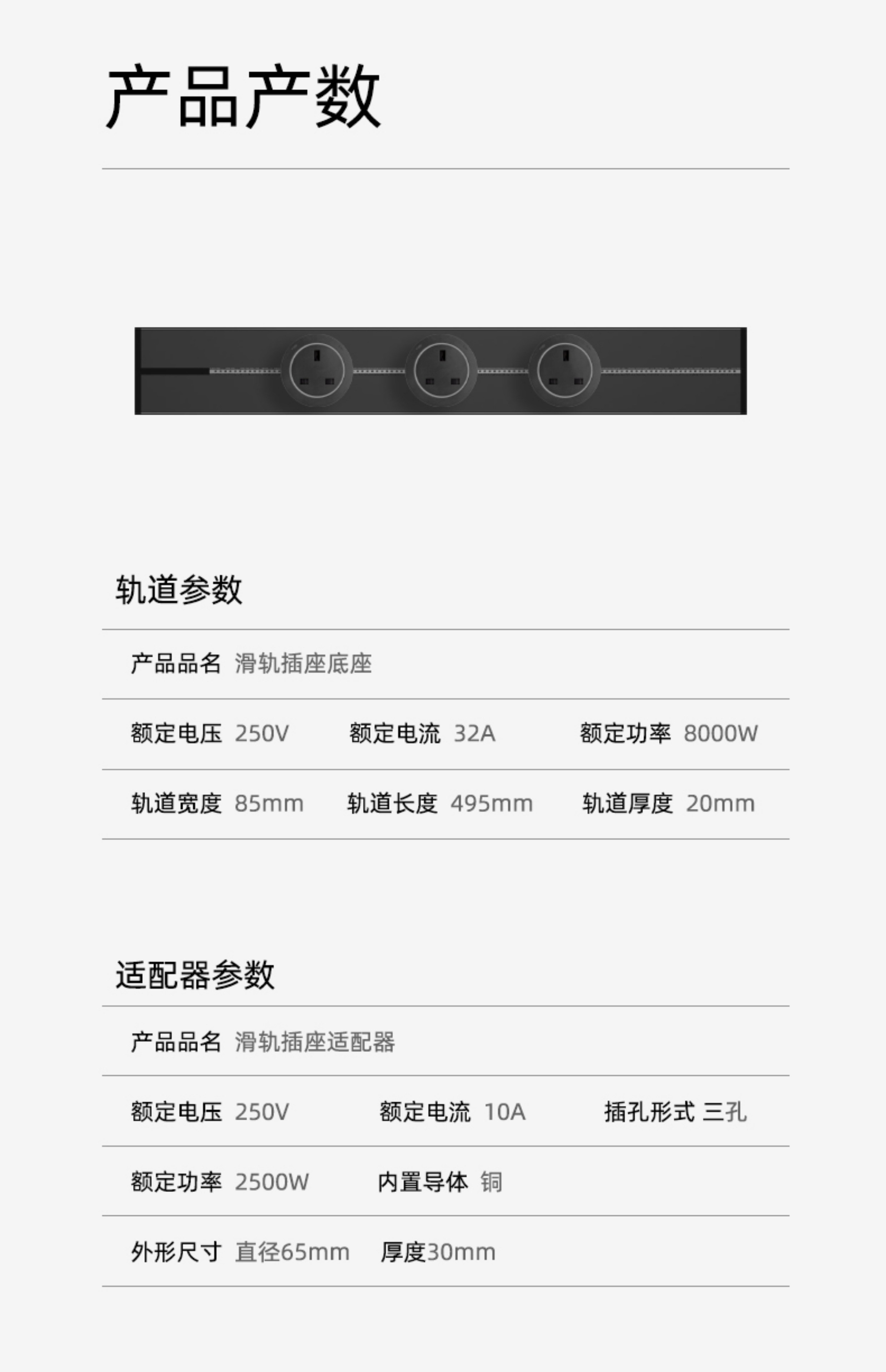 电工英标轨道插座移动多功能排插英式13A香港新加坡 英标白色轨道25cm+2个氛围灯插