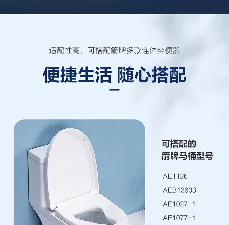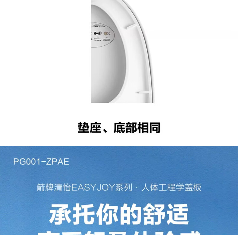 箭牌马桶盖通用家用抽水马桶圈配件蹲便器盖板加厚缓降蹲厕盖座 【V型】PP缓降盖板AB1177-B【匹配多种型号】
