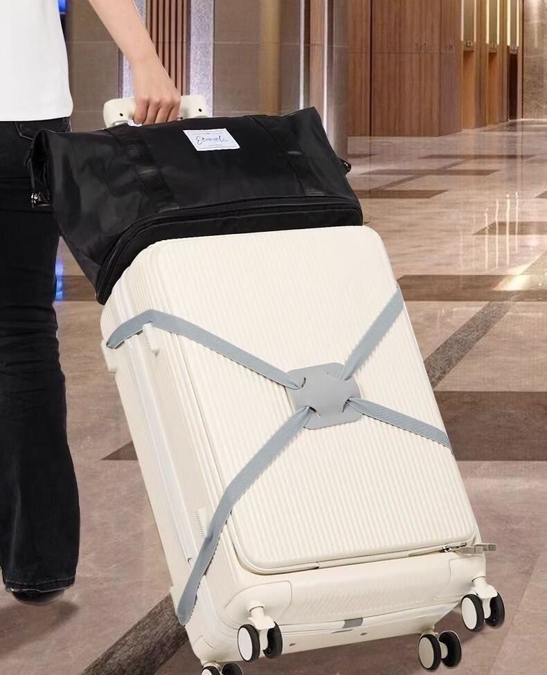 常为者旅行箱包安全固定绑带十字打包带行李箱捆绑带加固弹力托运防开箱 行李捆绑带-黑色款(卡扣调节+加粗尼绳] 2条装