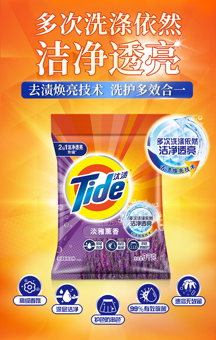 汰渍洁净透亮洗衣粉淡雅薰香6斤装 强效去渍 大袋批发非皂粉家庭装