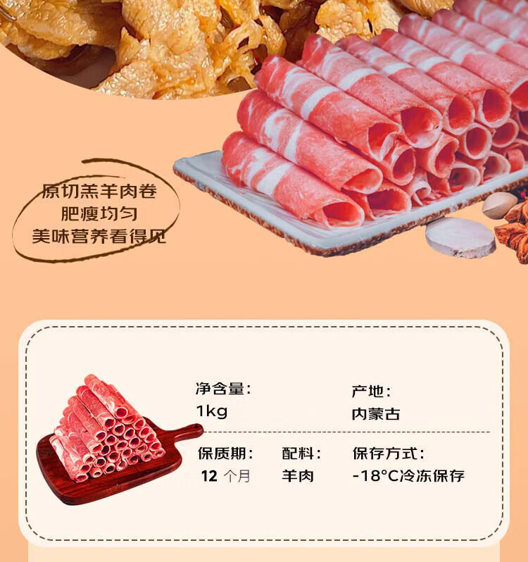 鲜京采内蒙古原切羔羊肉卷2斤 火锅食材 京东自有品牌