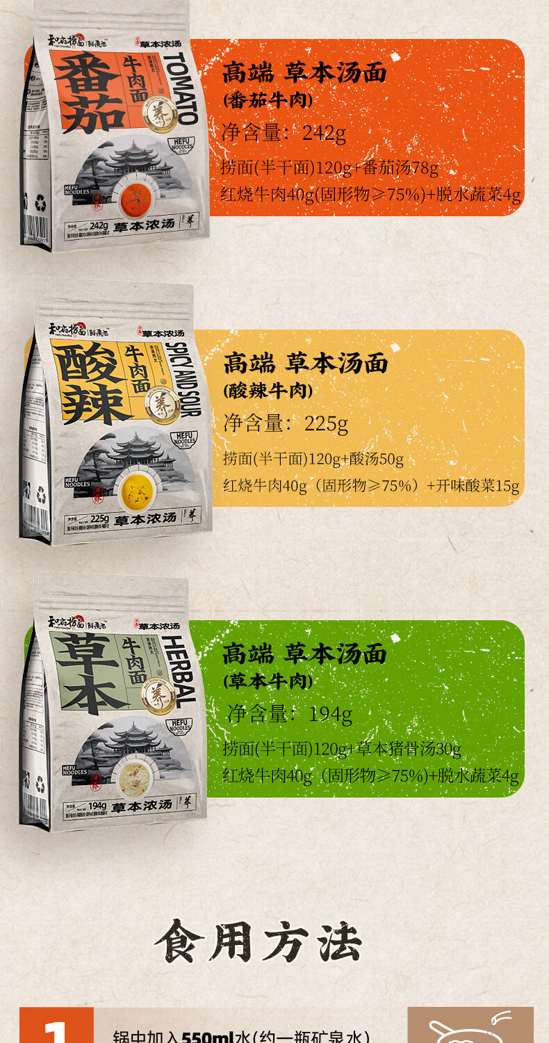 和府捞面番茄牛肉面242克 拉面有料煮面半干面 年货囤货速食面