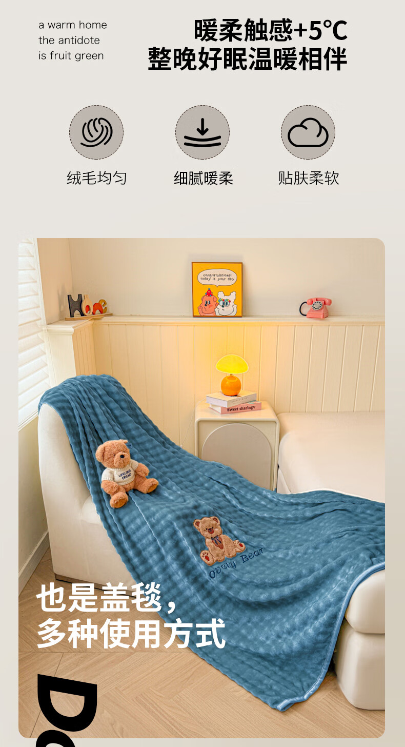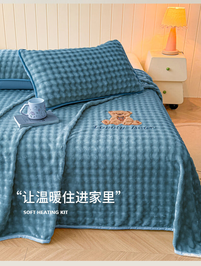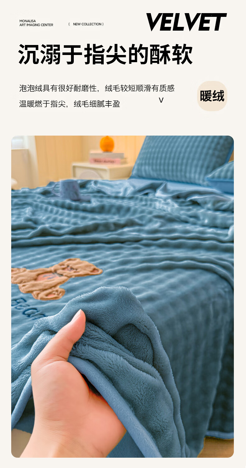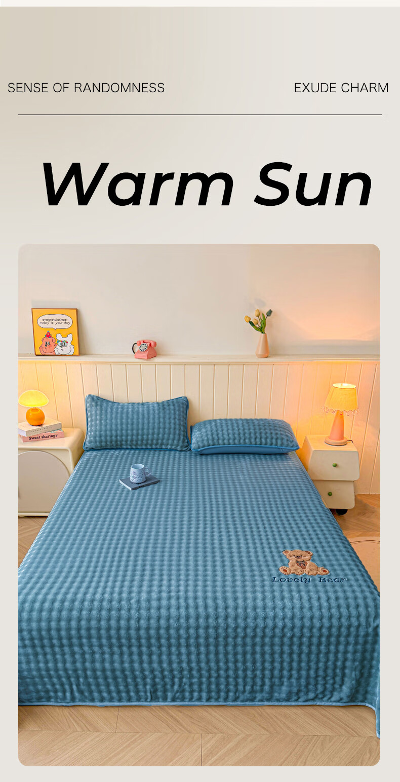 VJE高级感兔兔毛绒床单单件冬季加绒毛毯牛奶绒枕套三件套加厚珊瑚绒 松饼熊床单-卡其 单床单120*230cm【0.9m床适用】