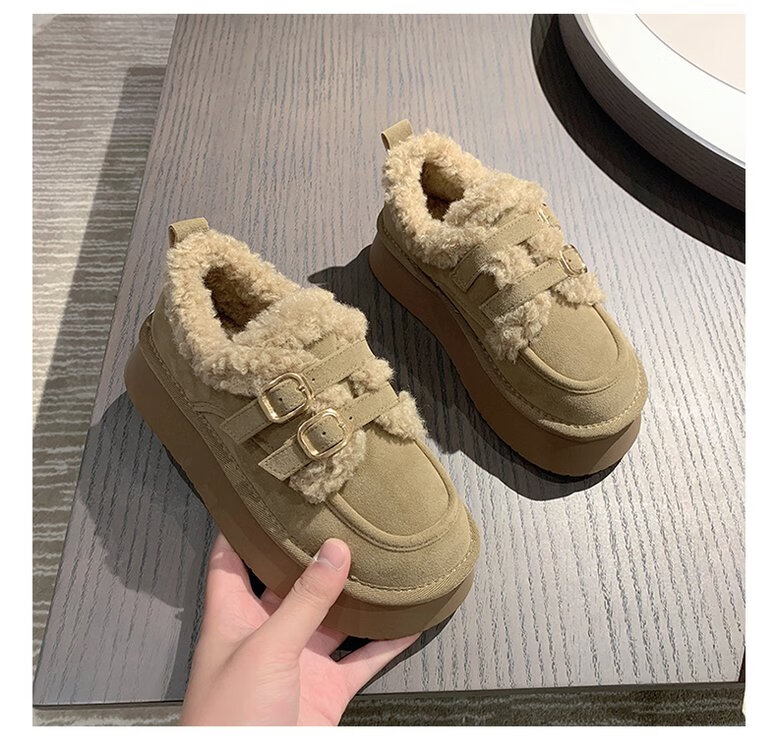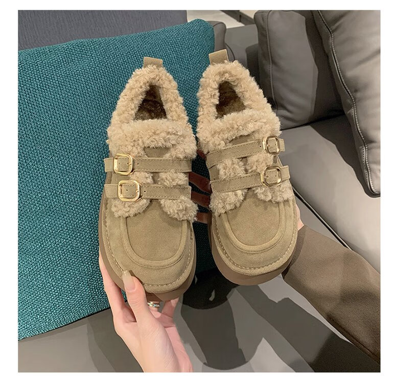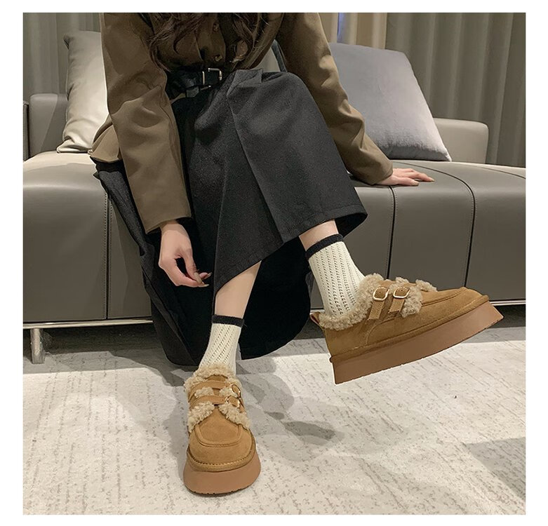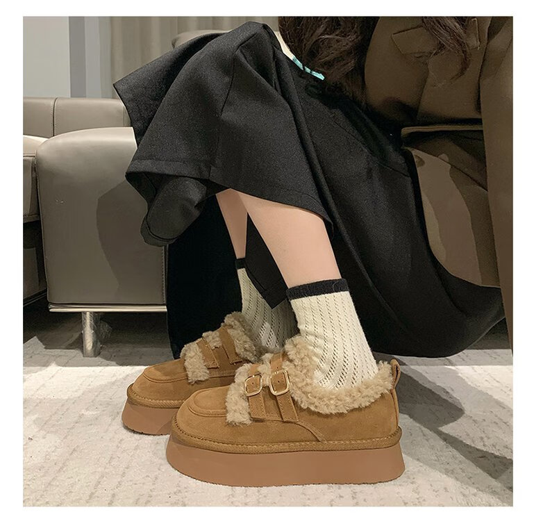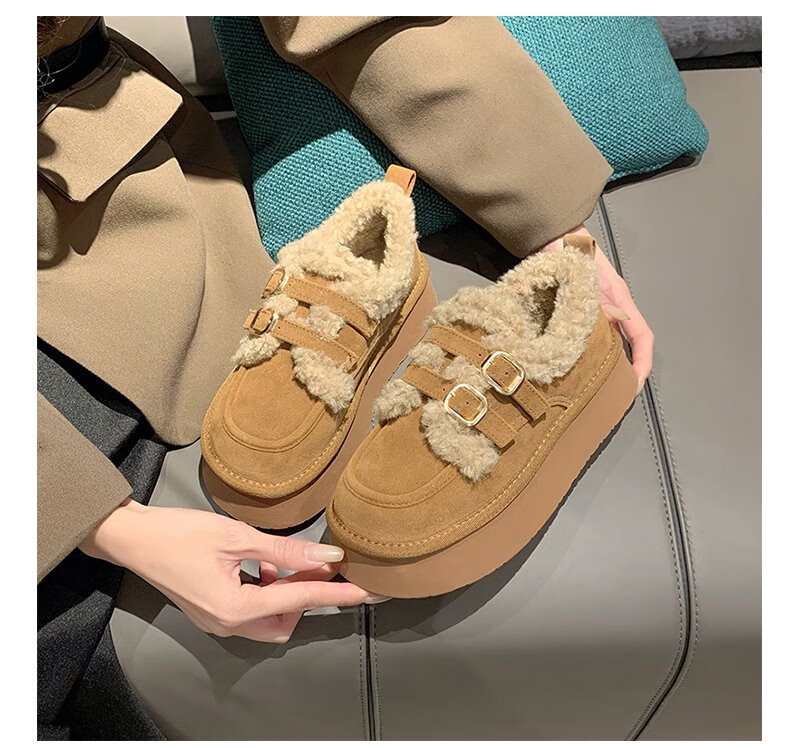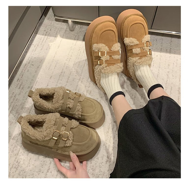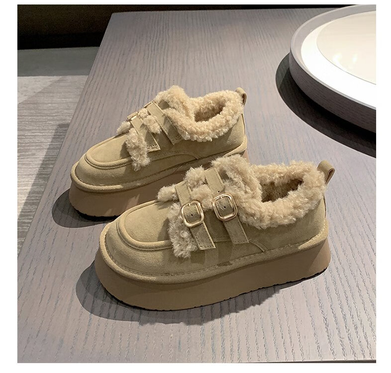 星期六毛绒雪地靴女款冬季加绒2025新款女鞋东北短筒棉鞋厚底保暖面包鞋 卡其色 【冬季保暖】跟高3cm 38