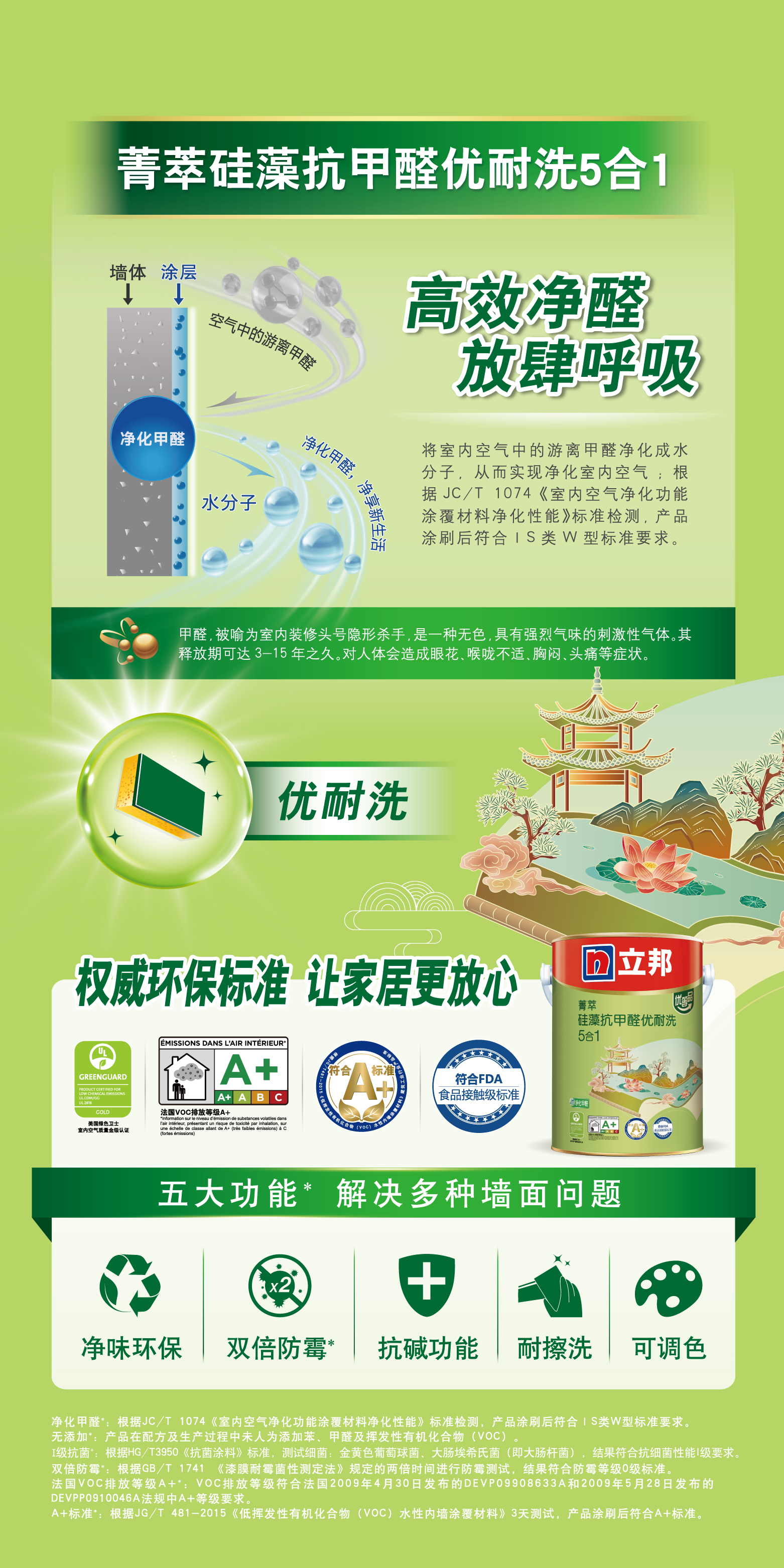 立邦【同城购】菁萃硅藻抗甲醛优耐洗5合1内墙乳胶漆 5L【单桶装】