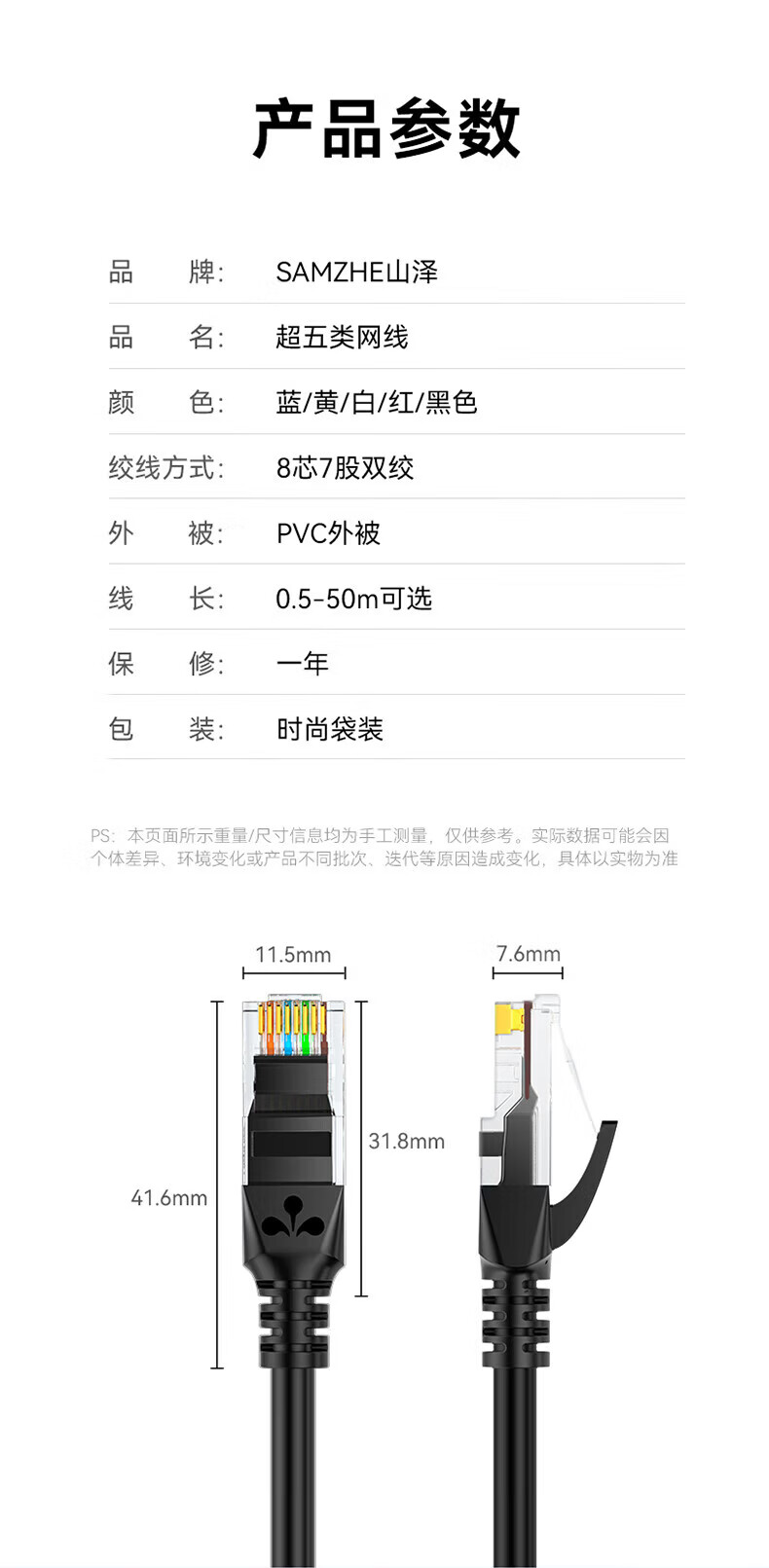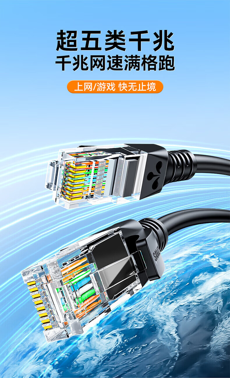 山泽 超五类网线 CAT5e类高速千兆网线 家用工程电脑宽带连接跳线 成品网线 超五类-黑色 2米
