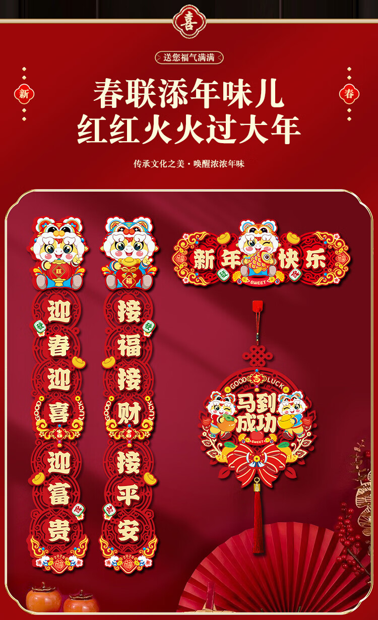 【88件】磁吸对联冰箱贴磁吸车贴福字门贴入户门新年装饰春节对联 醒狮磁吸对联88件套【1套】 无规格