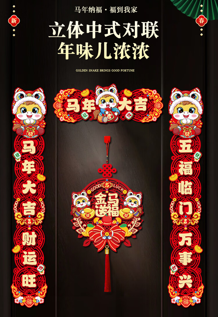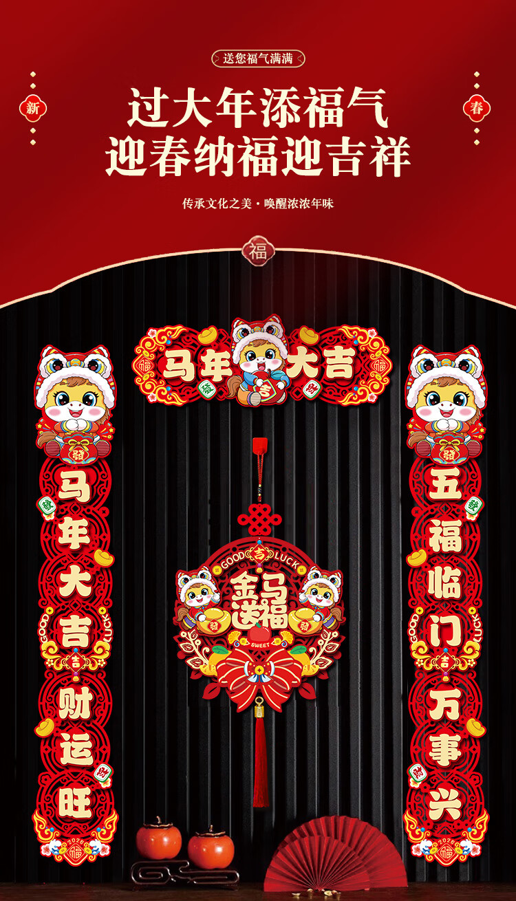 对联2026马年新年春联家用春节过年福字门贴元旦布置装饰用品 爆款套装-马年大吉+金马送福 成品发货【送磁吸+点胶+挂钩】大门通用