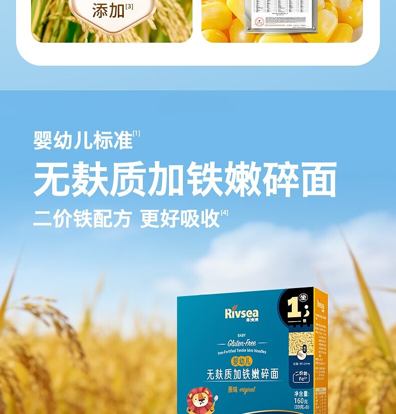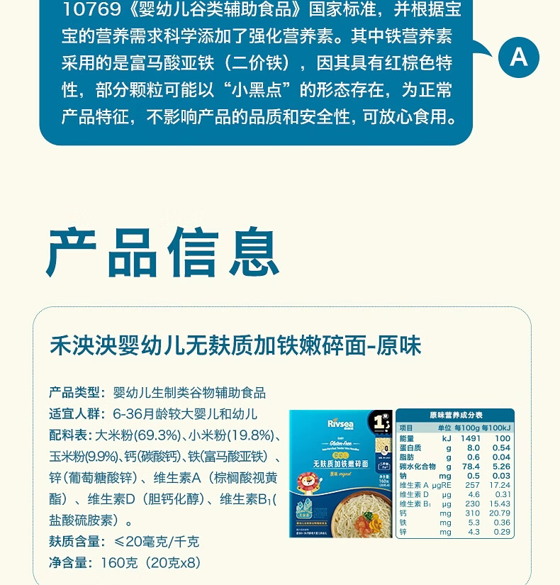 禾泱泱婴幼儿低敏配方无麸质面条宝宝儿童无添加食用盐辅食面 【低敏二价铁配方】无麸质加铁嫩碎面160g