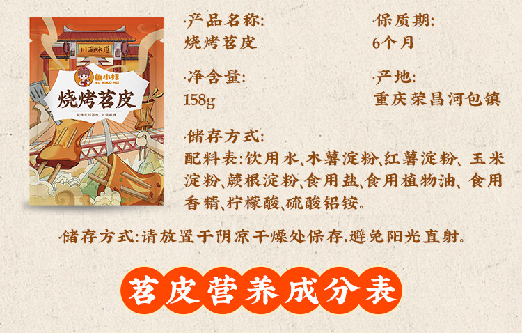鱼小妹烧烤苕皮158g*5袋 火锅烧烤食材大张红薯粉皮宽粉 重庆四川特产