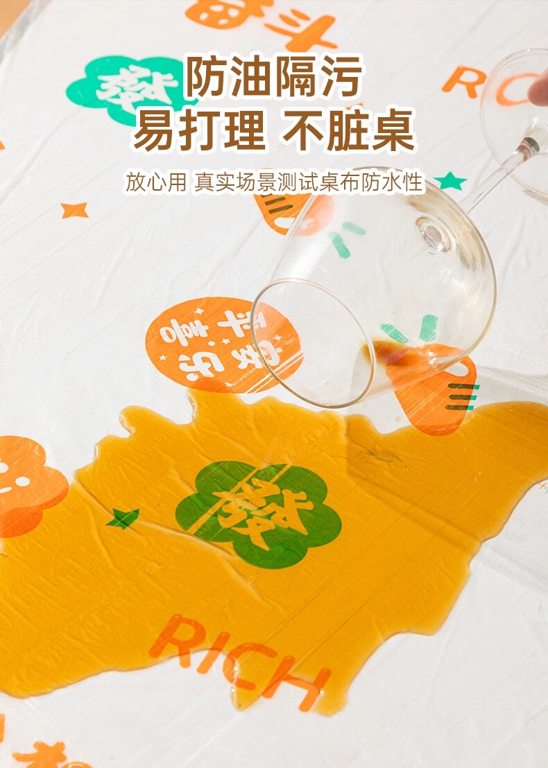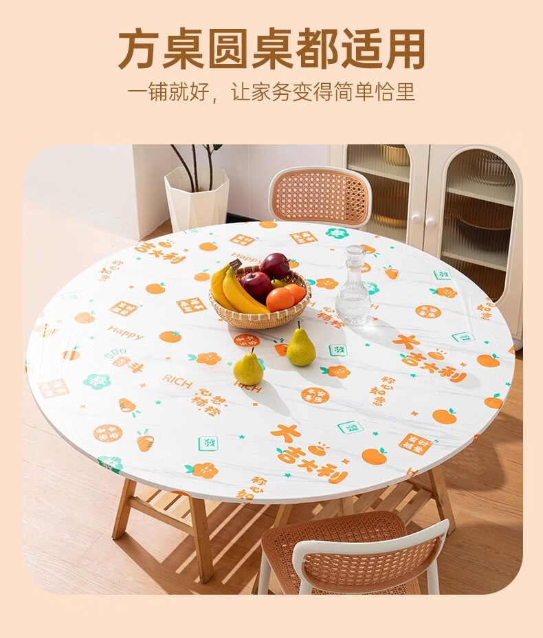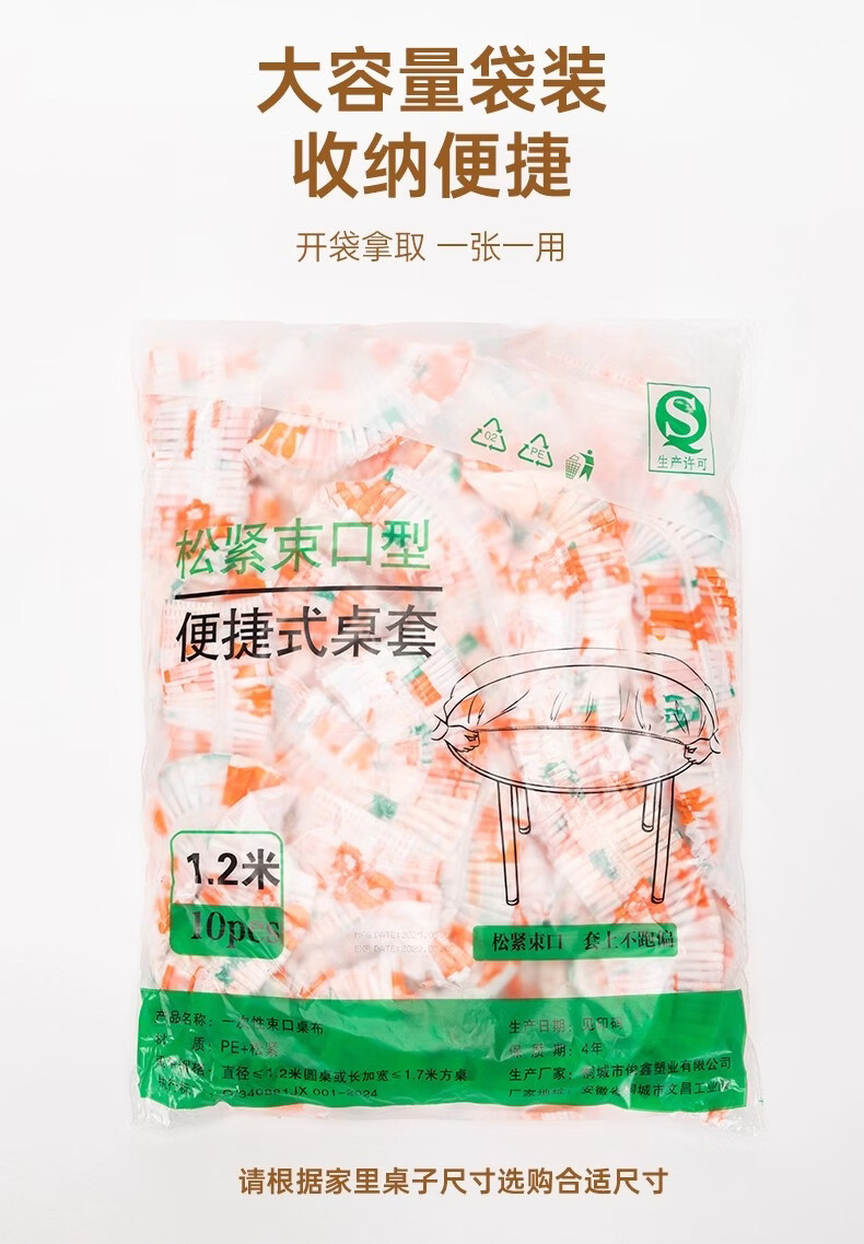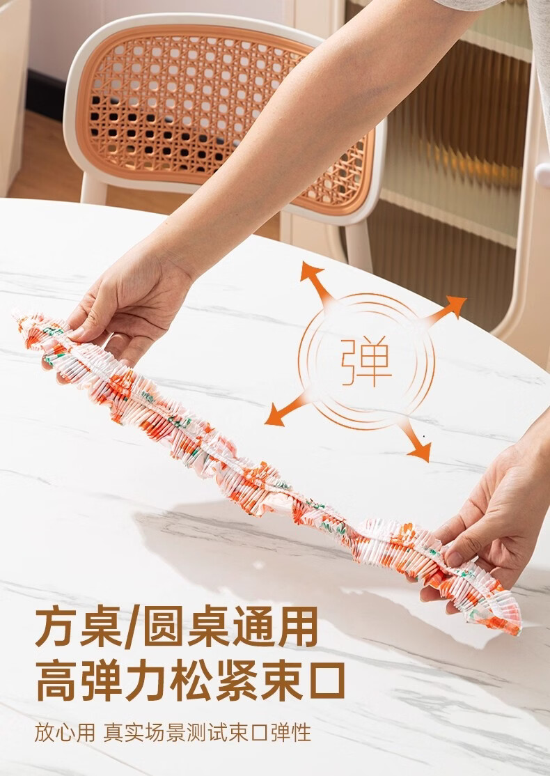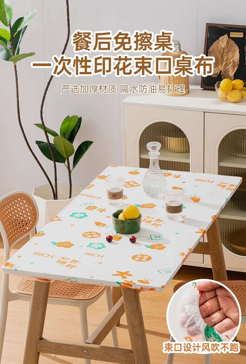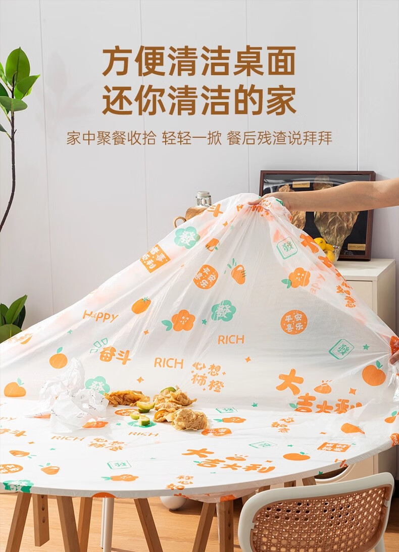 首力一次性桌布束口松紧带加厚防油长方形餐桌布圆形台布印花塑料薄膜 适用于【圆桌直径1.4米内】 10只装-印花束口桌布
