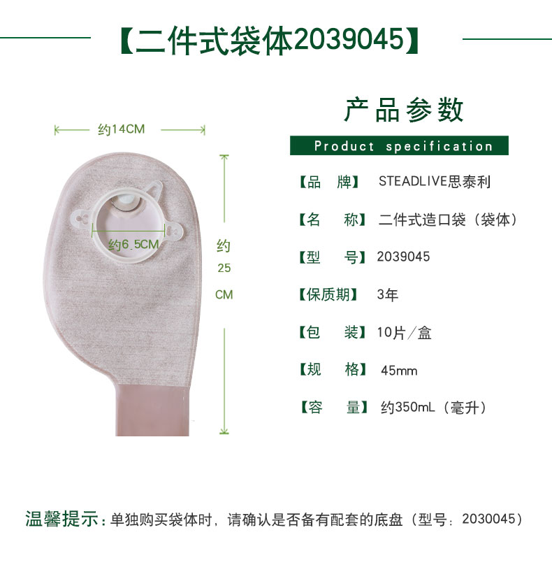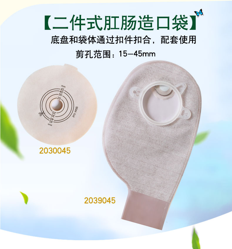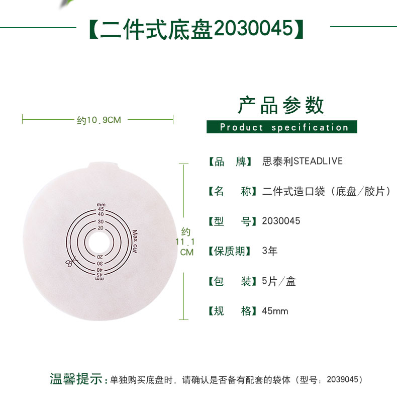 思泰利(STEADLIVE) 二件式造口袋底盘剪孔15-45mm肠道开口造瘘袋大便袋肛门袋 肠造口套装:1盒2130045+1盒2039045