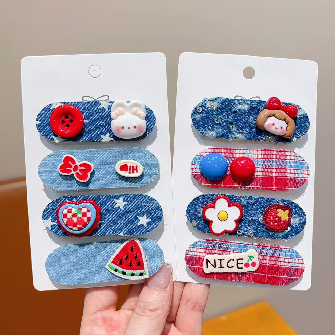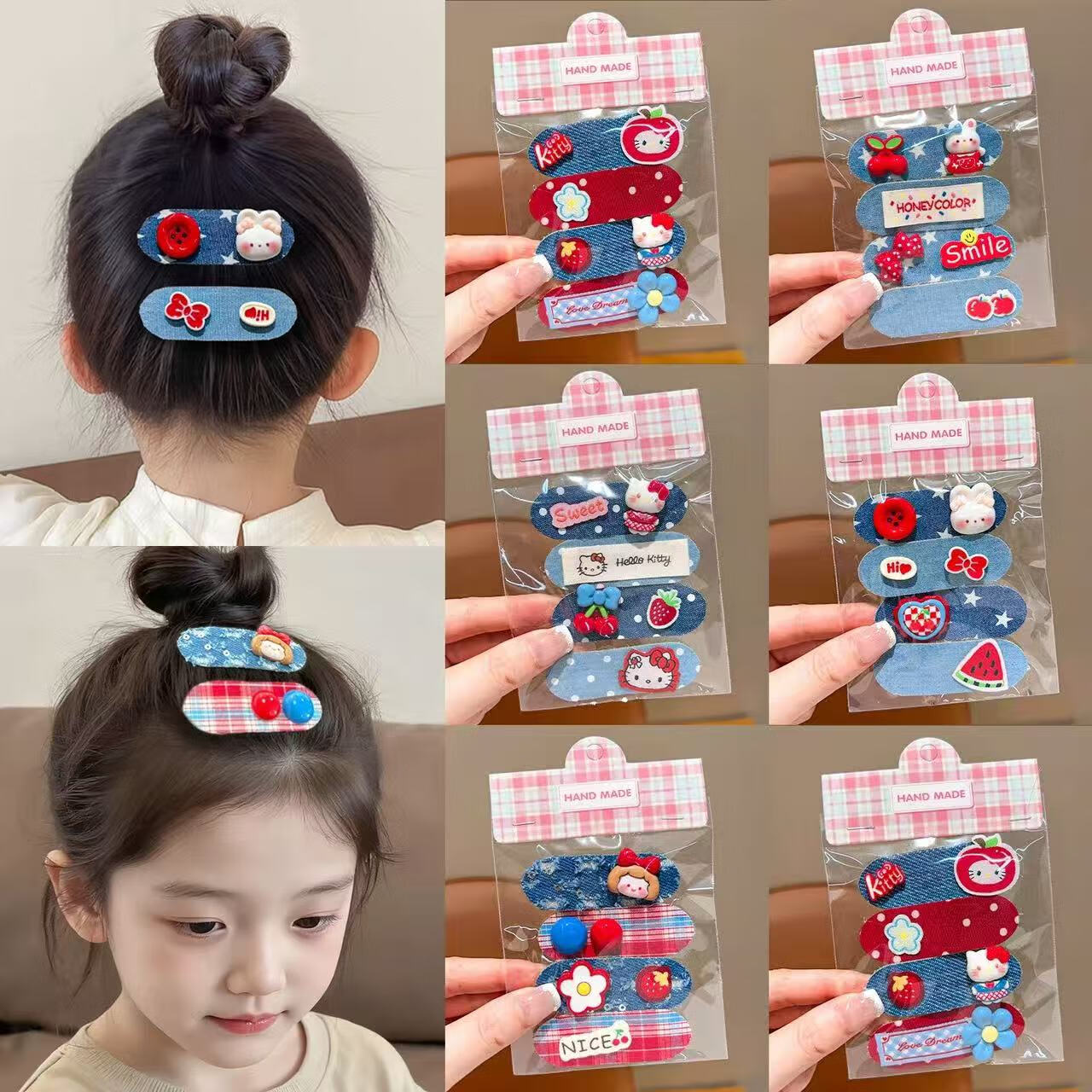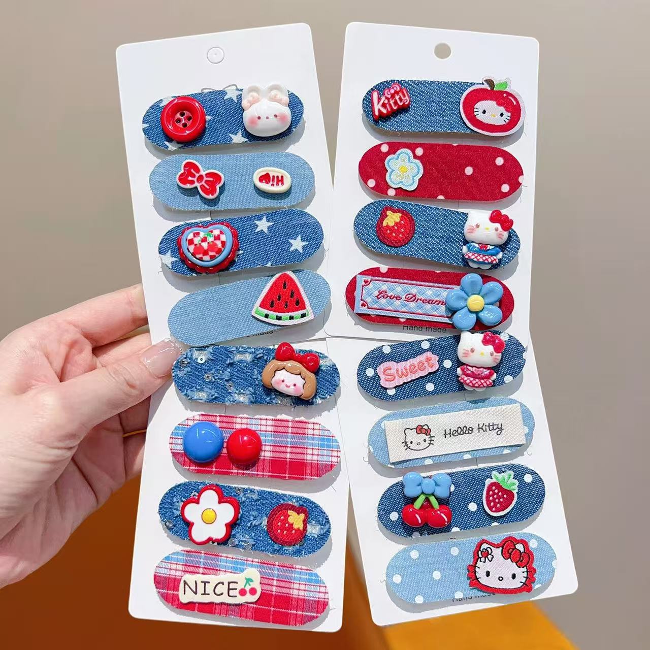 【好物优选】新款韩系儿童秋冬短款魔术贴女童卡通碎发整理发饰红 05#小女孩