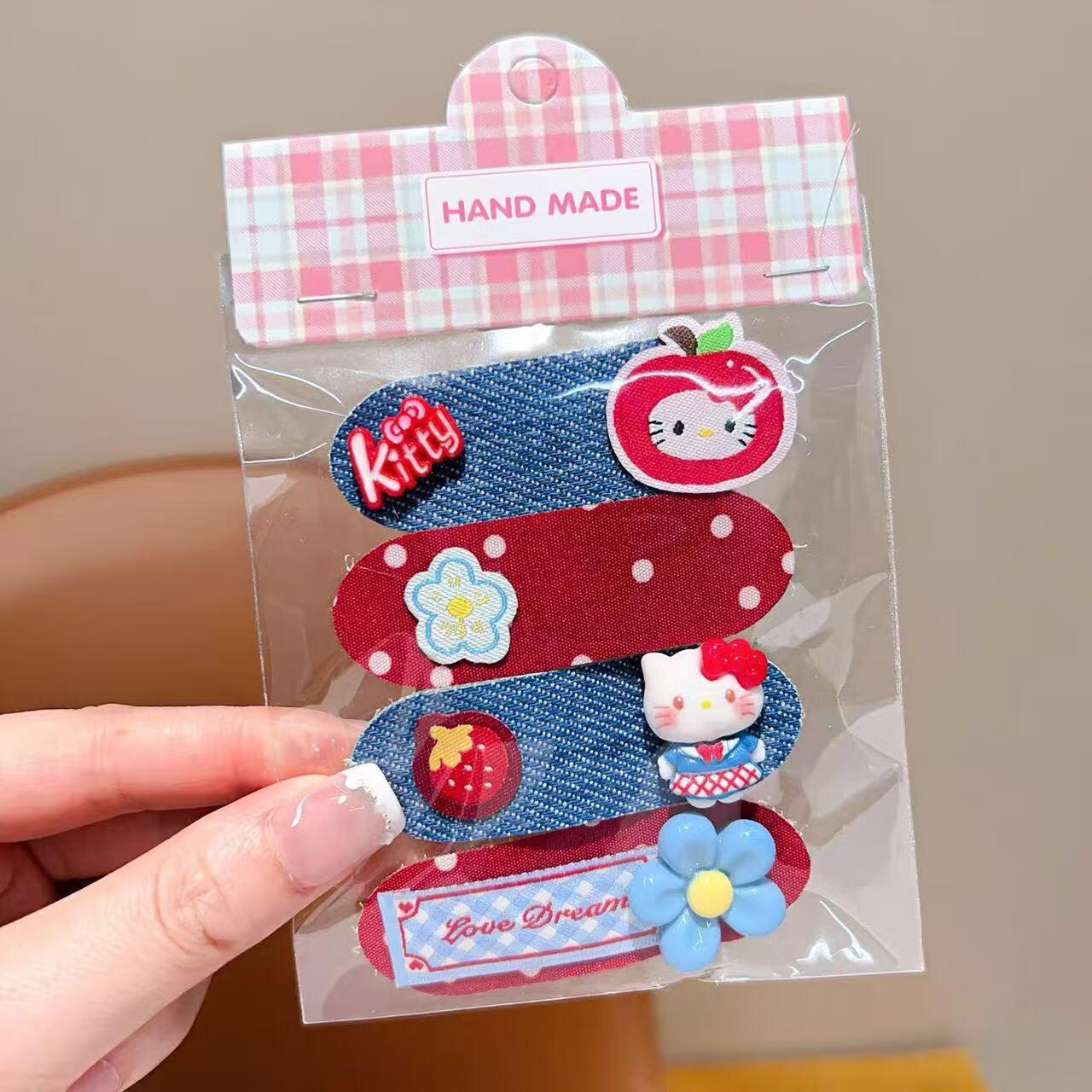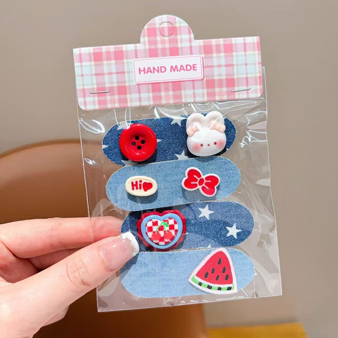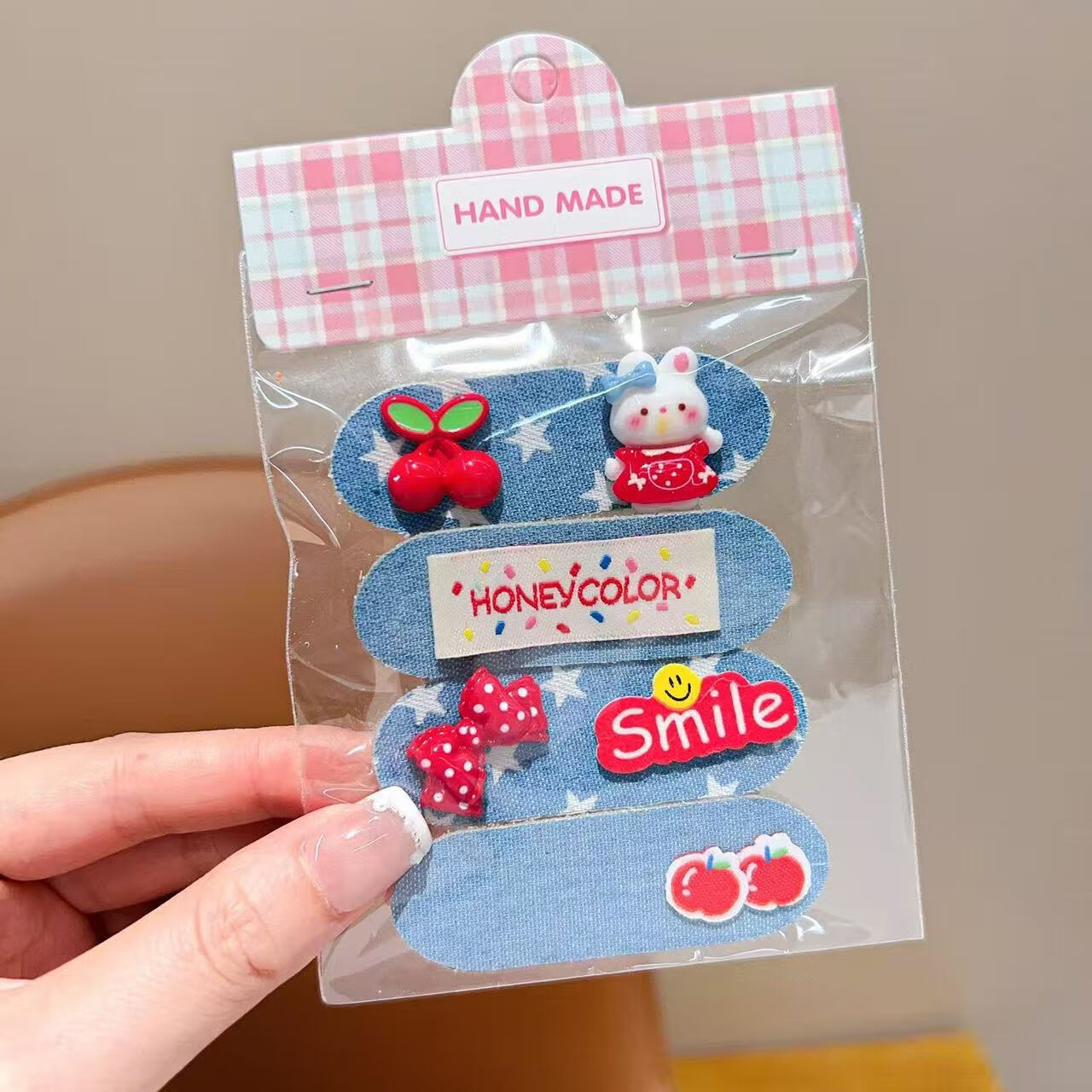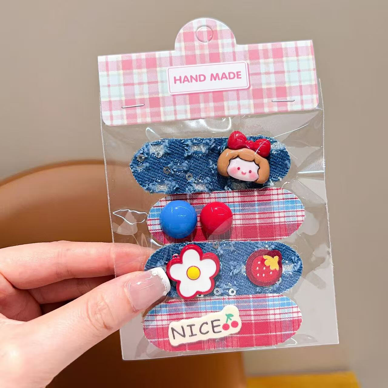 【好物优选】新款韩系儿童秋冬短款魔术贴女童卡通碎发整理发饰红 05#小女孩