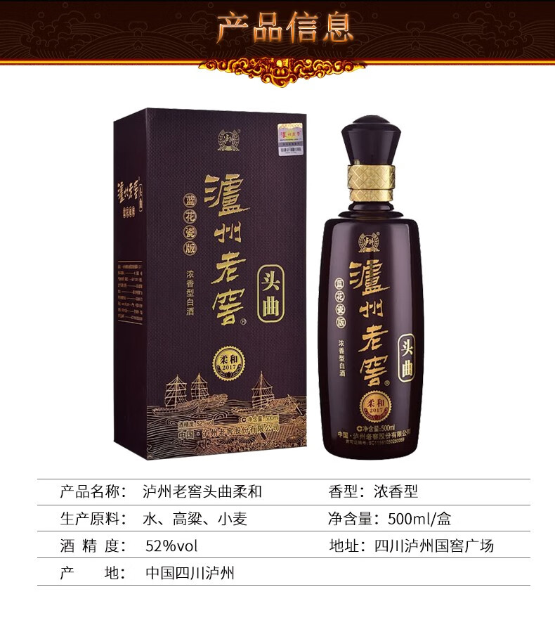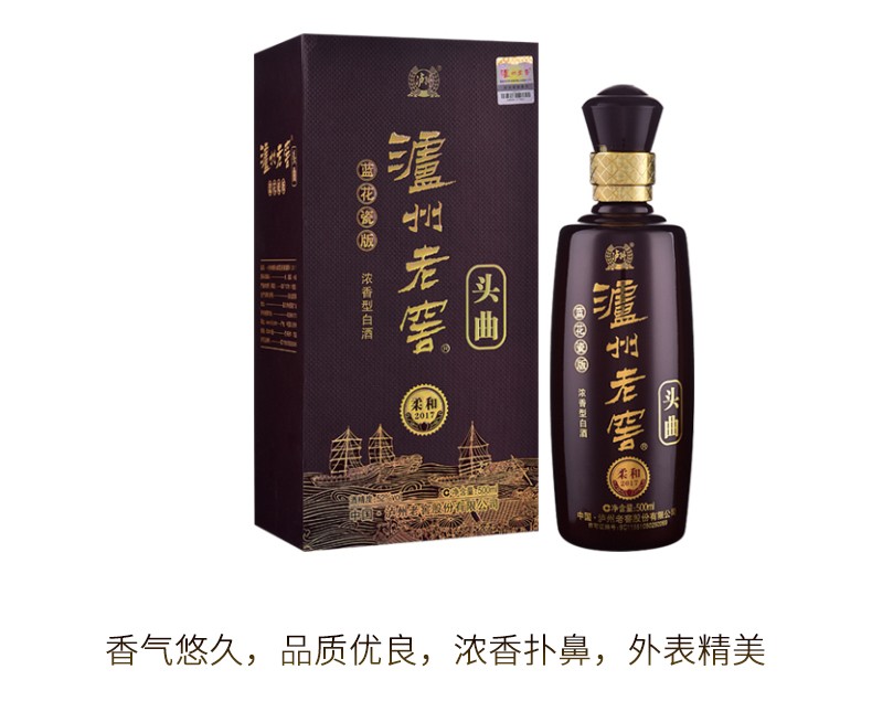 泸州老窖头曲 蓝花瓷版柔和 52度浓香型 高度白酒 送礼佳品 52度 500mL 2瓶