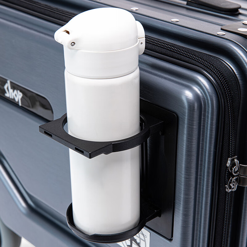 Walker Shop行李箱2026新款前开盖登机拉杆箱结实耐用多功能旅行箱 黑色 【前开盖+杯架+刹车轮】 20英寸 【现货直发/登机箱】
