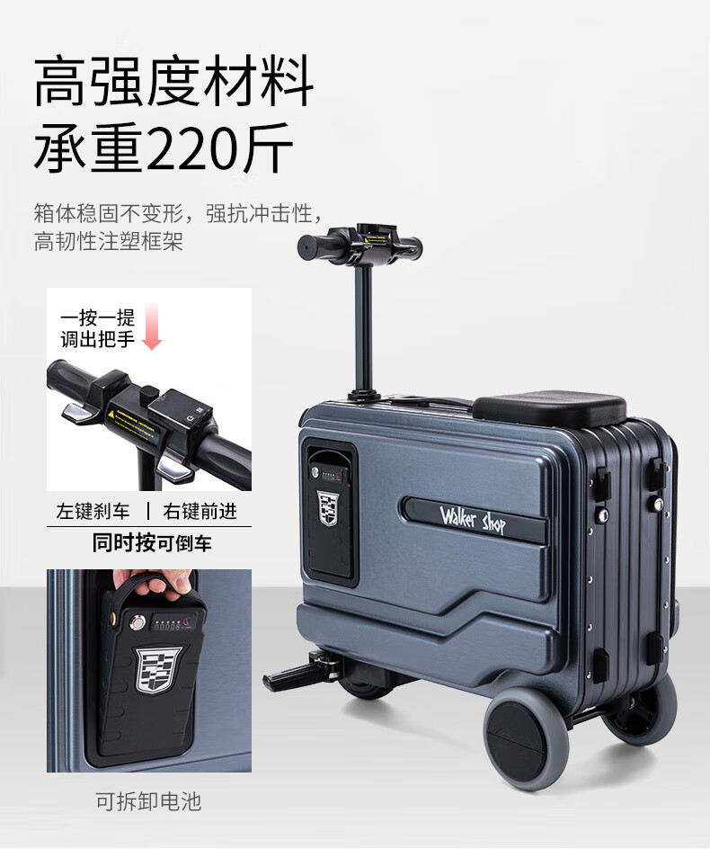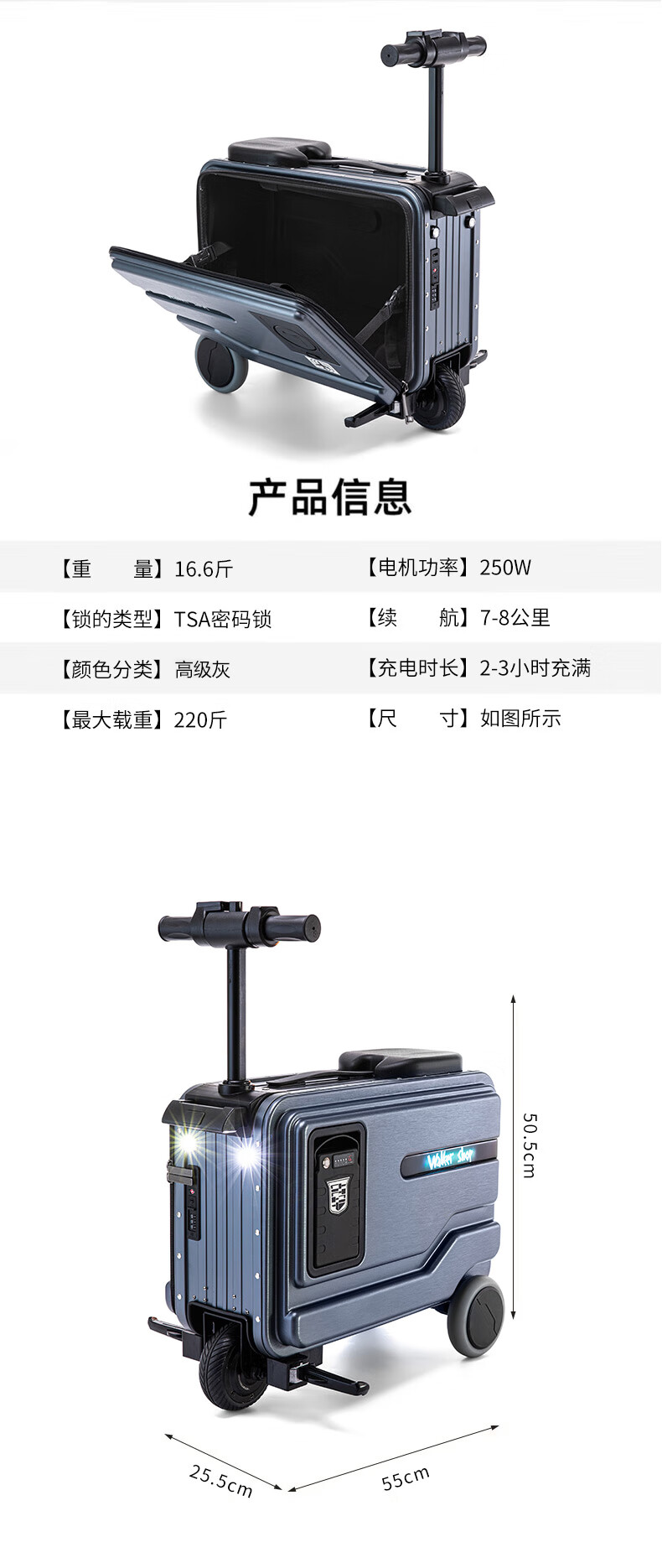 Walker Shop【2026年新款】电动行李箱可骑行可登机智能代步出差旅行拉杆箱 高级灰 20英寸 登机箱(直接带上飞机座舱)