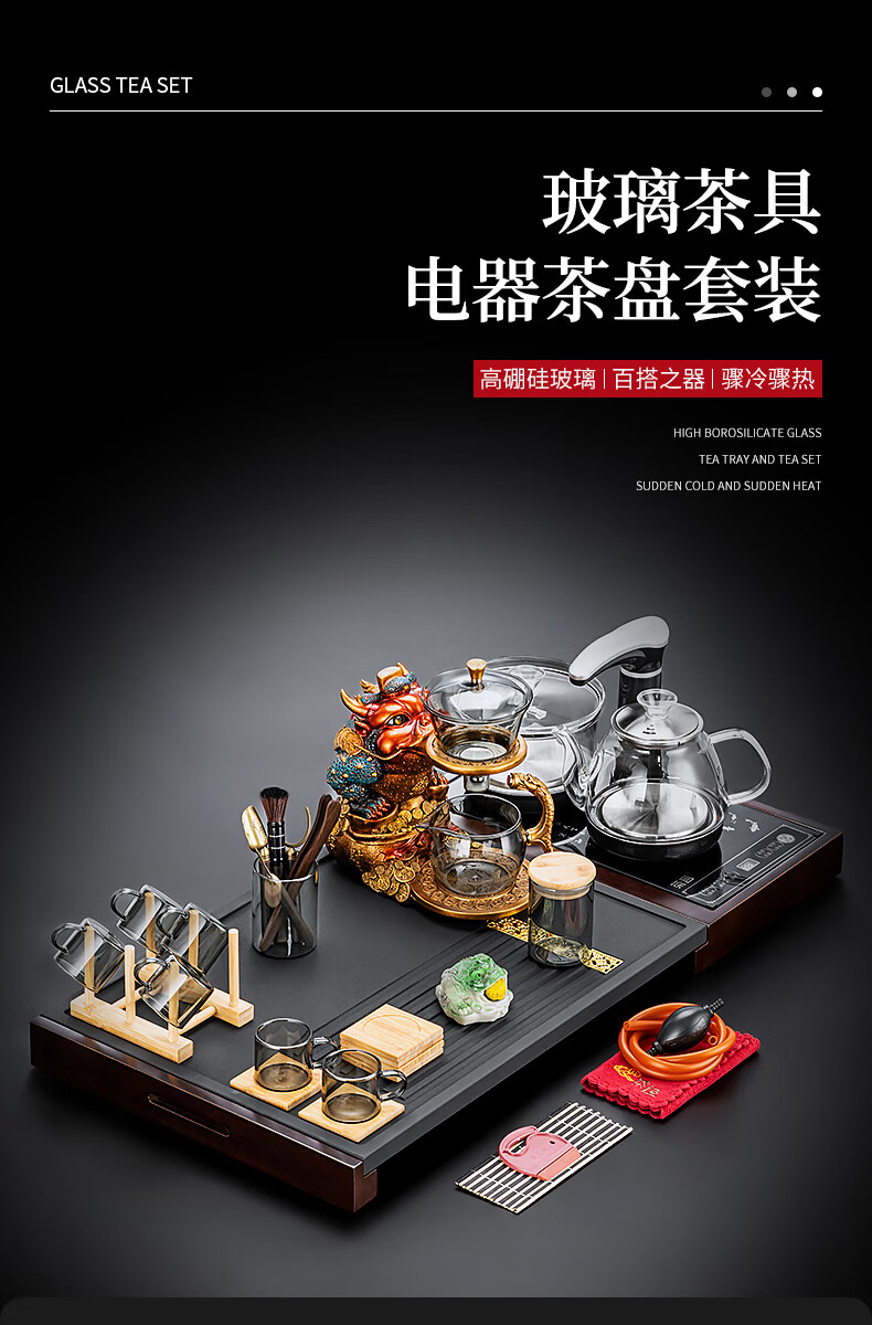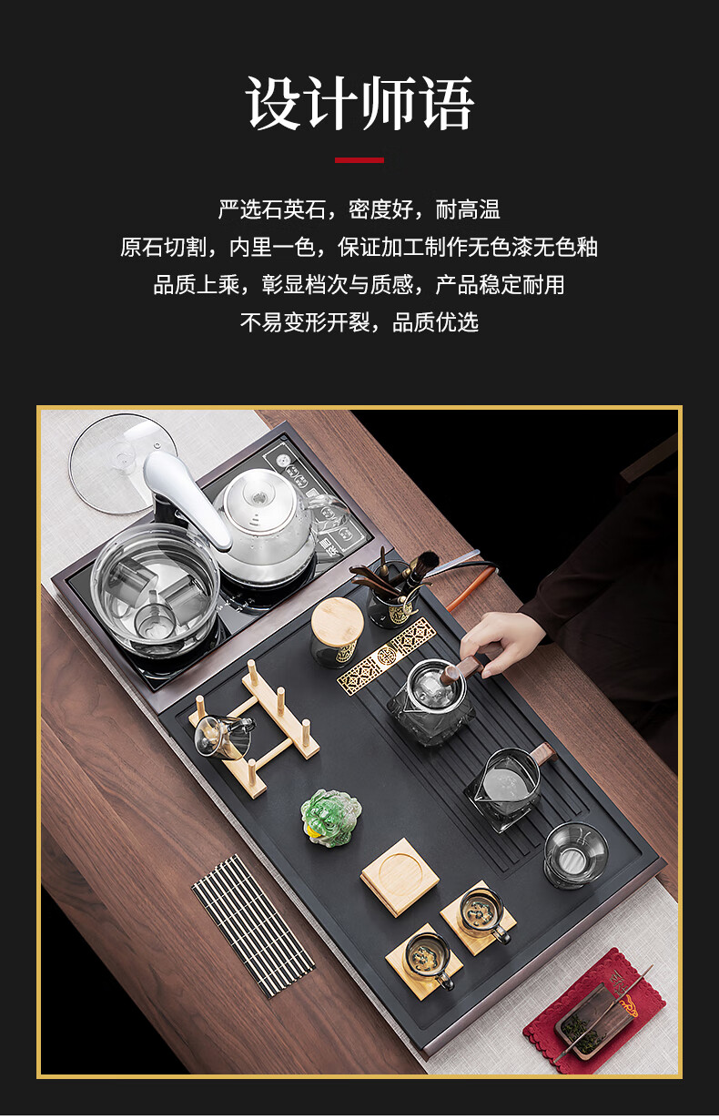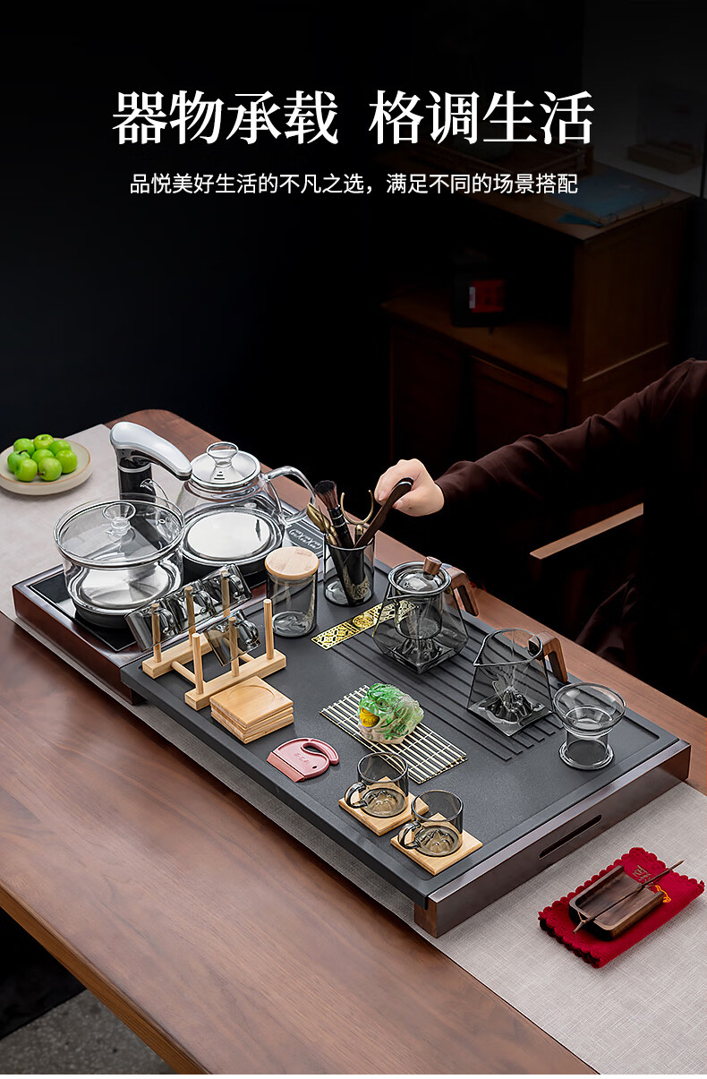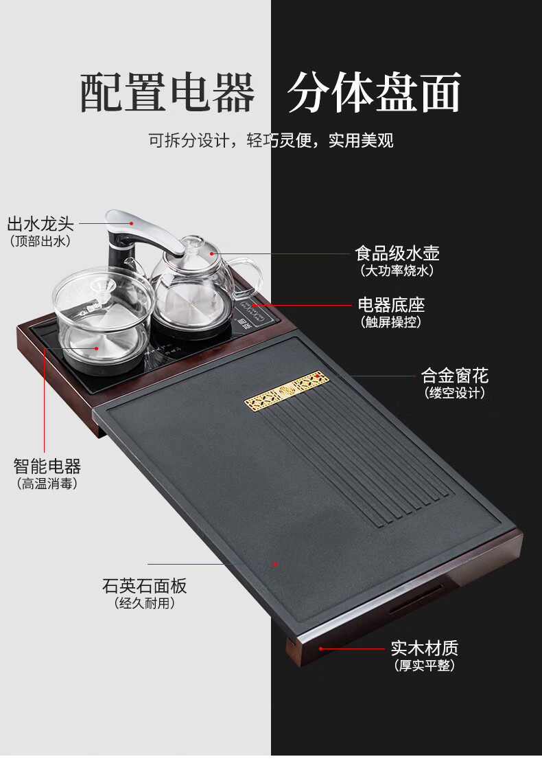 心茧玻璃茶具整套茶盘四合一体全自动高档功夫茶台烧水家庭用排水托盘 石英石(四合一茶盘+电器)窗花
