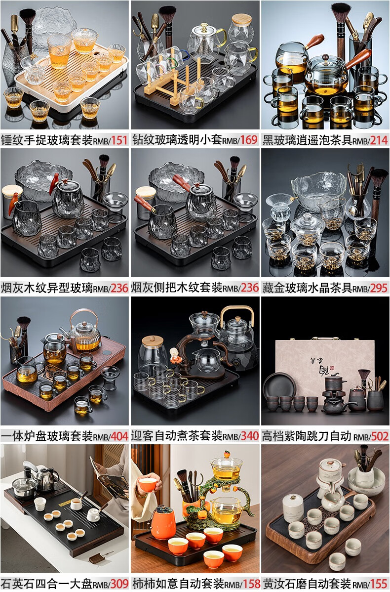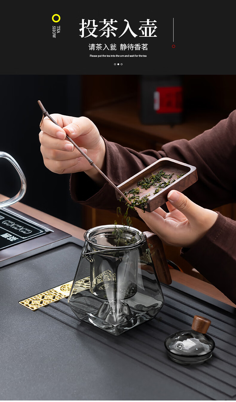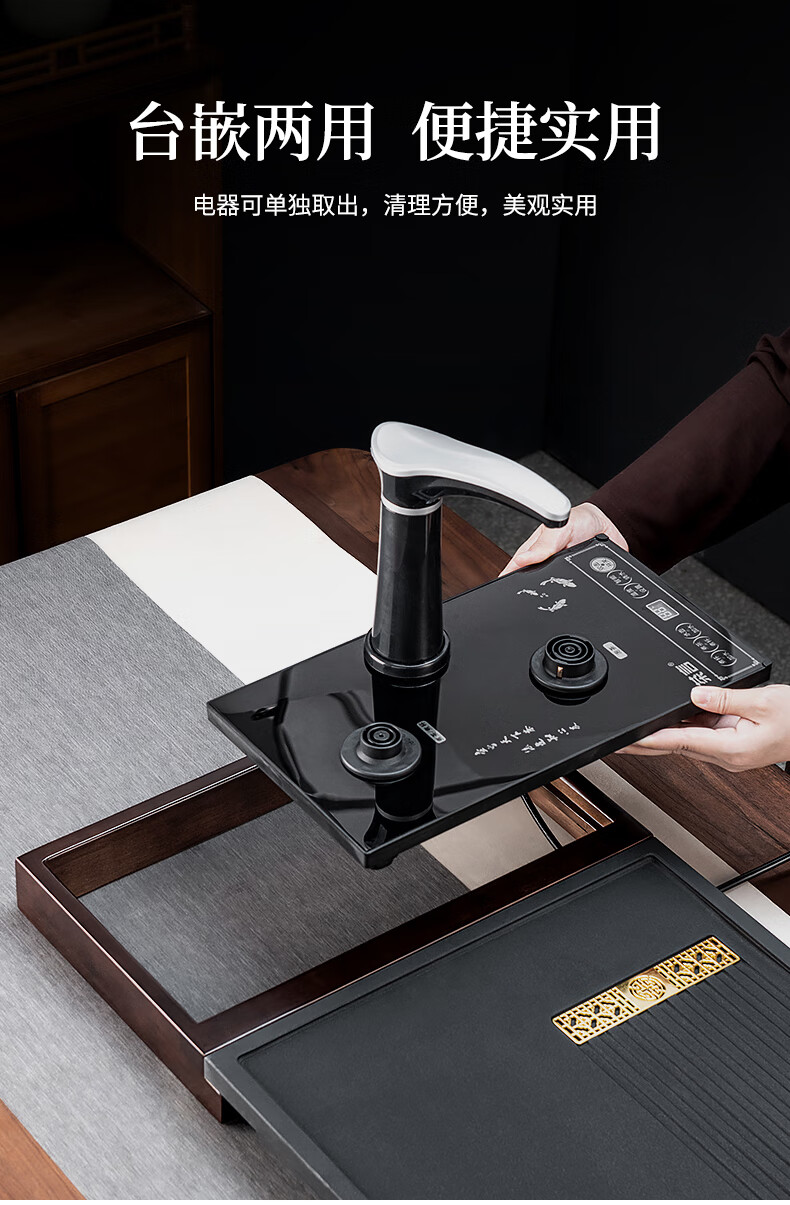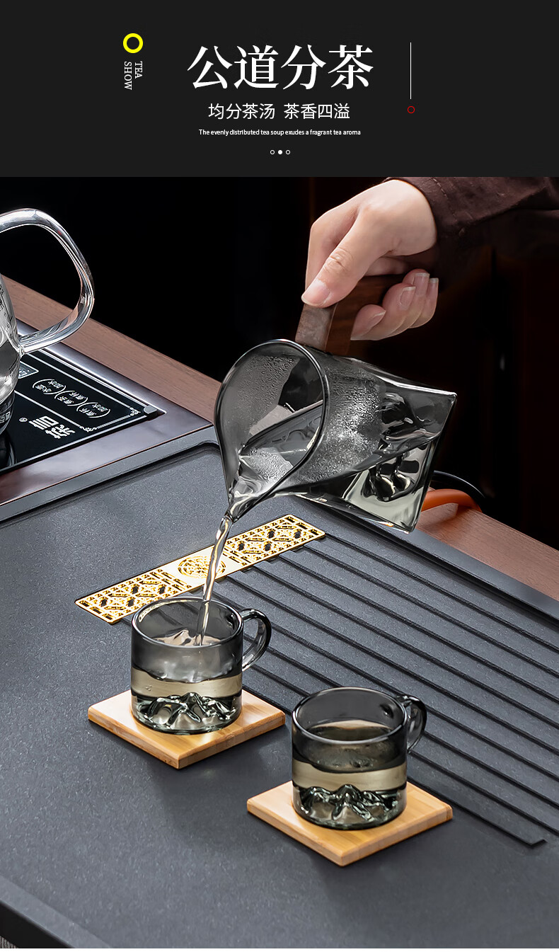 心茧玻璃茶具整套茶盘四合一体全自动高档功夫茶台烧水家庭用排水托盘 石英石(四合一茶盘+电器)窗花