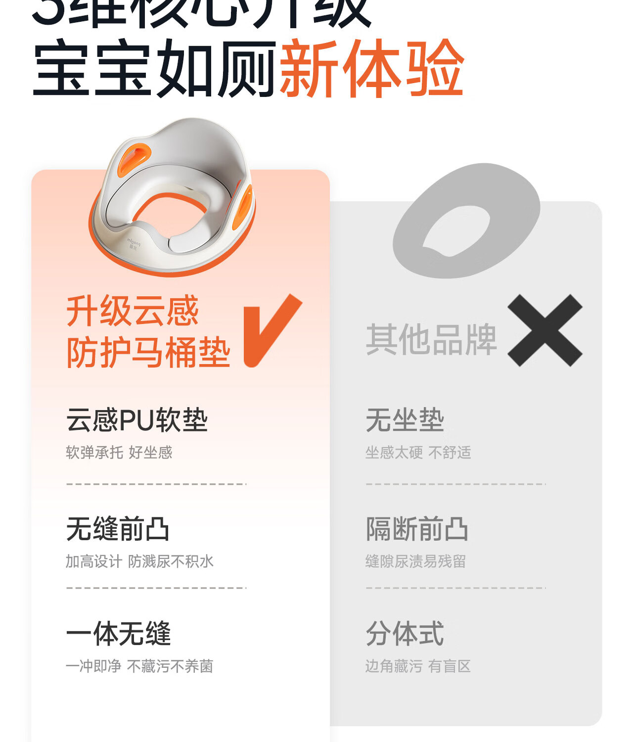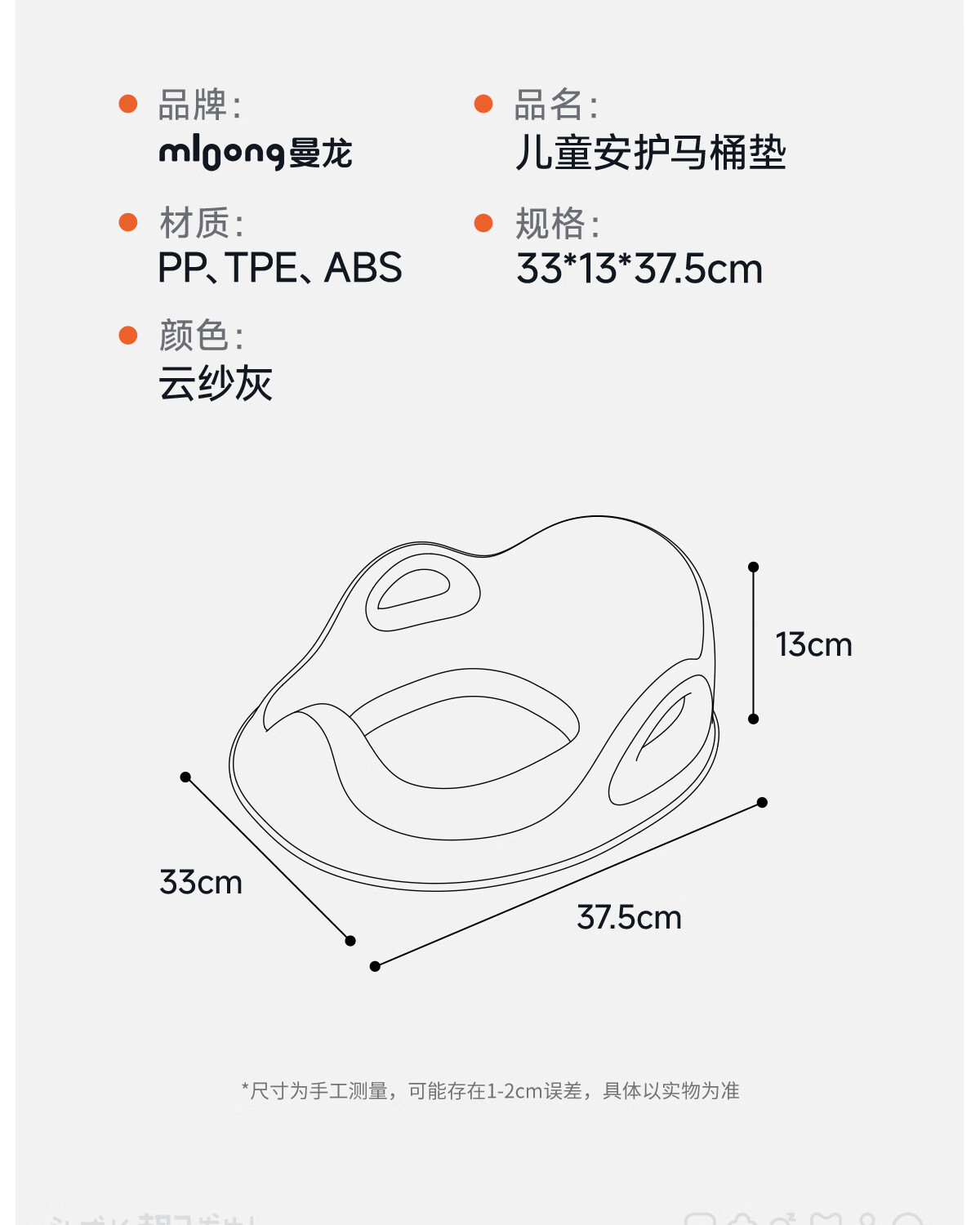 曼龙儿童马桶坐便圈男女孩宝宝马桶圈坐便器小马桶婴儿坐垫圈坐厕 云感马桶圈 云纱灰 【升级PU软垫】