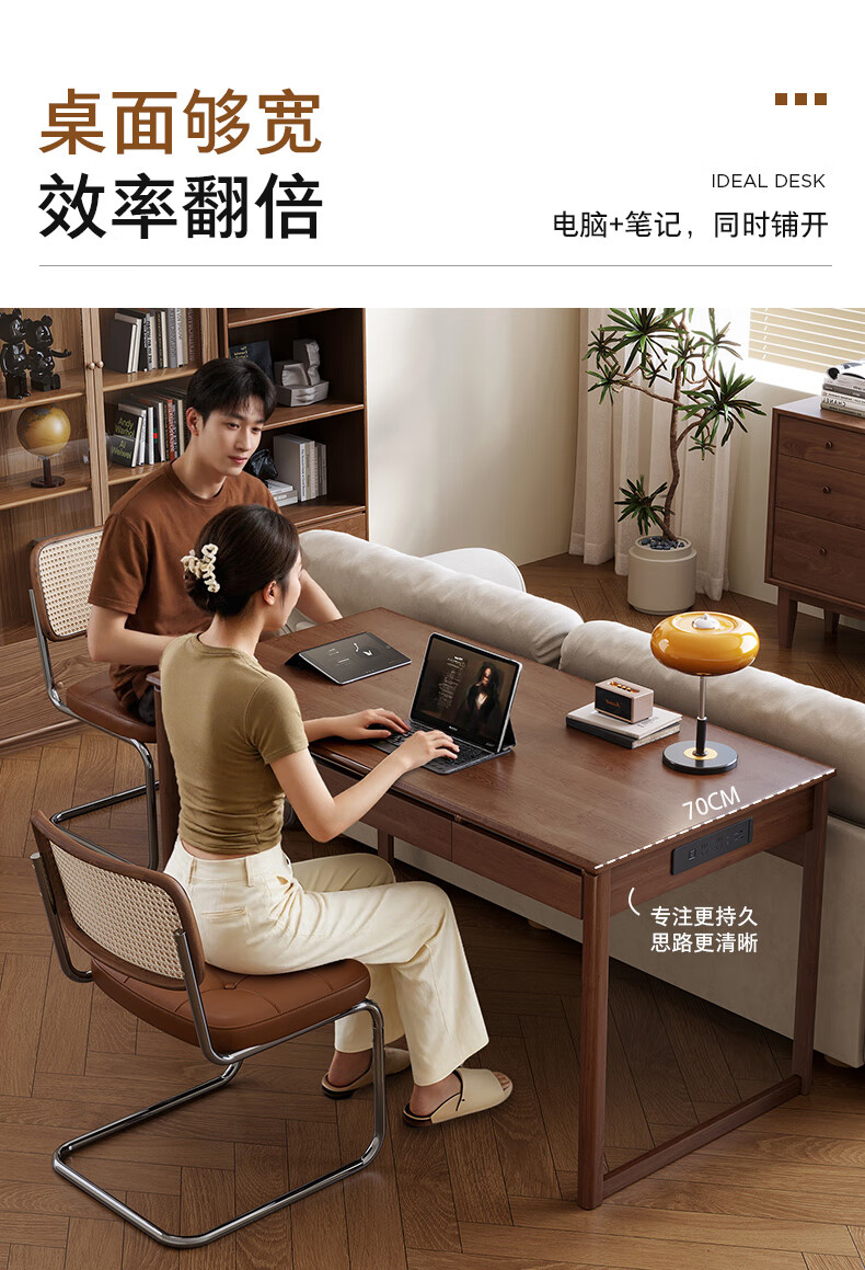顾家家居实木书桌家用电脑桌学习桌书房办公桌书架一体组合写字桌工作台 【精选橡胶木】胡桃木色单桌140CM 【送货上门包安装】