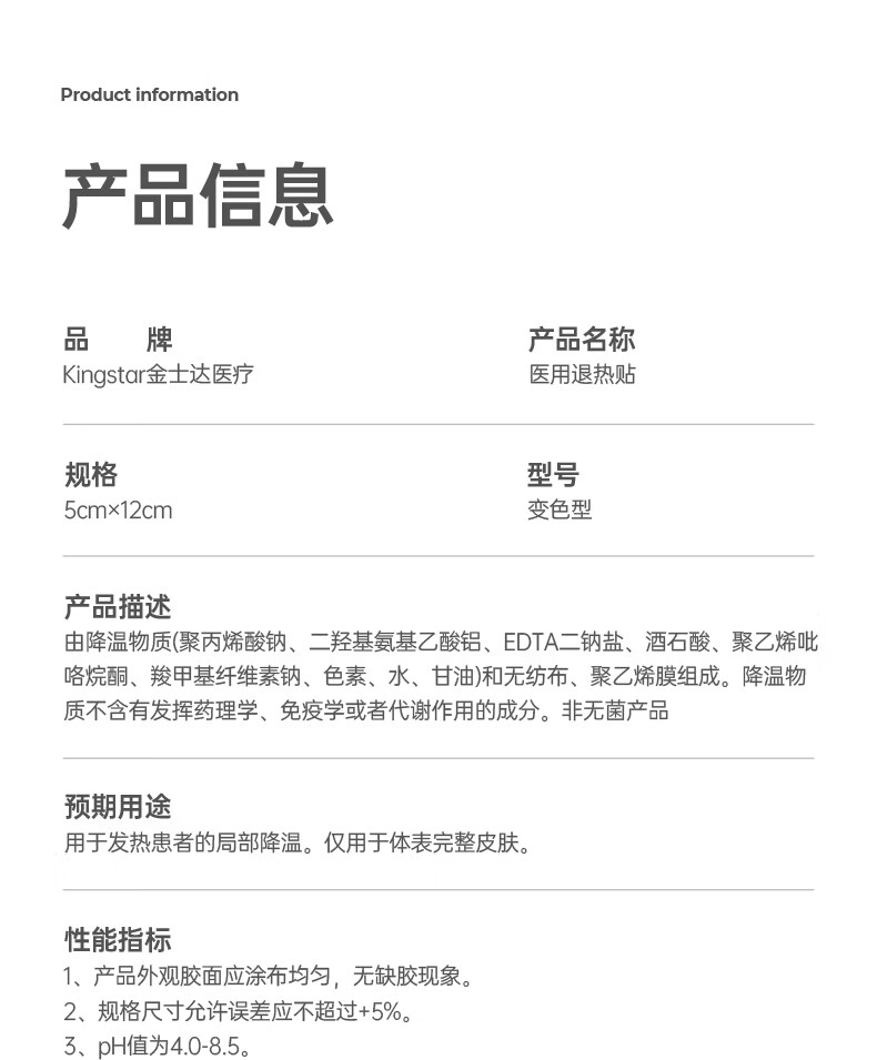金士达感温变色医用退热贴婴幼儿童婴儿退热贴冰敷烧贴宝宝冷敷贴 3个月以上适用【1盒10片】